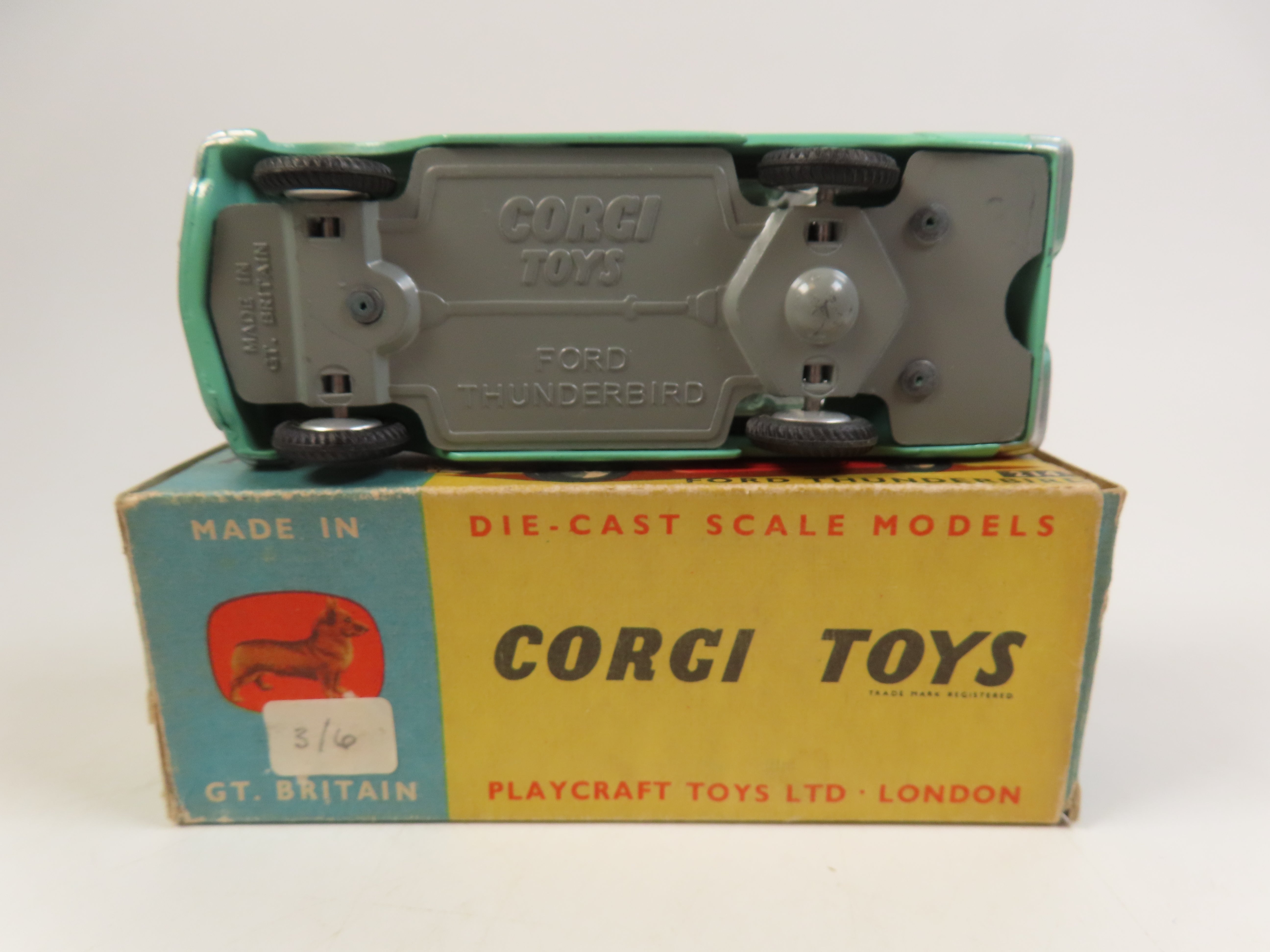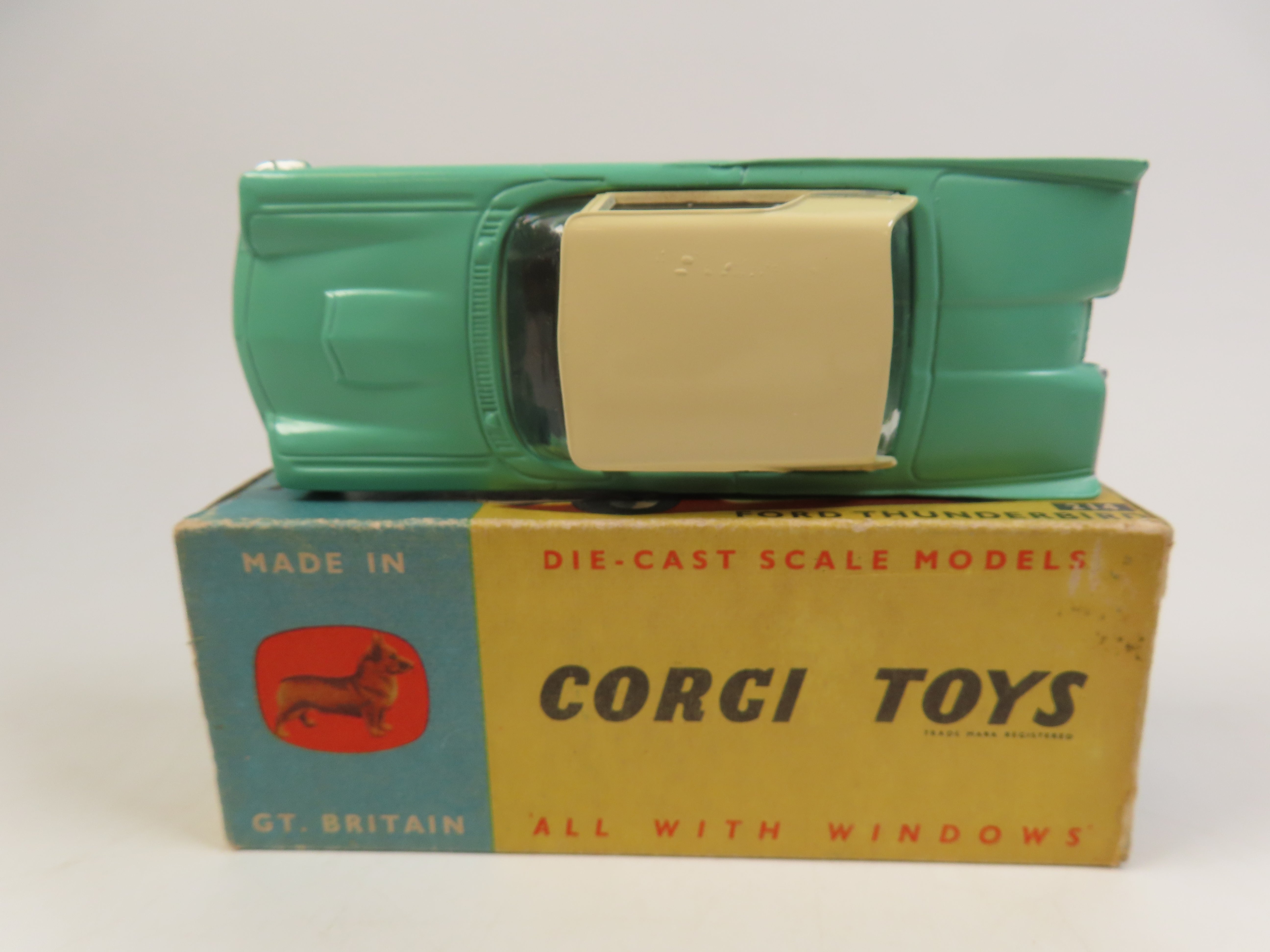 Corgi 214 Ford Thunderbird in turquoise, with cream roof and silver detailing.