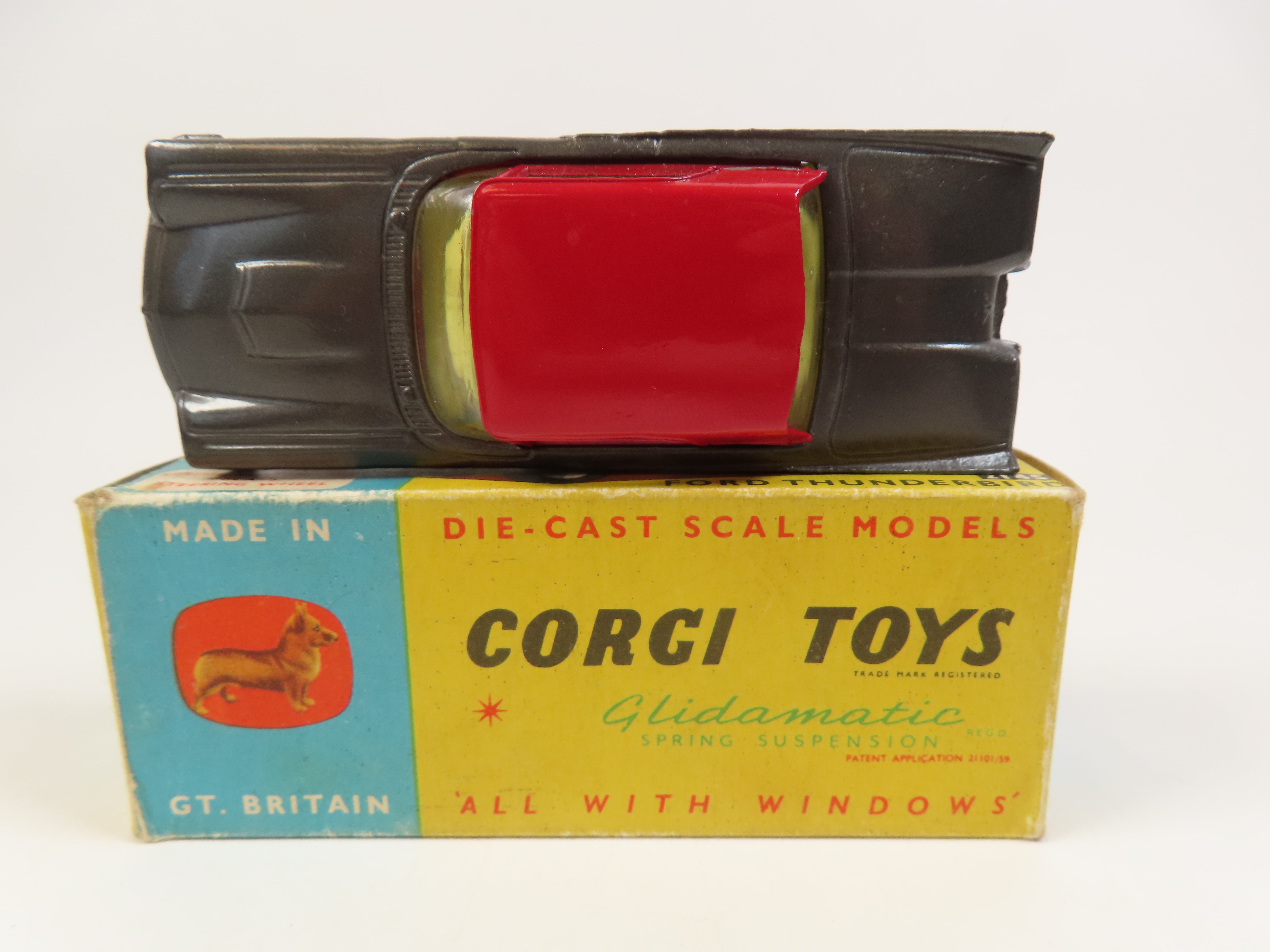 Corgi 214S Ford Thunderbird in charcoal with red roof and yellow interior. Hard model to find!