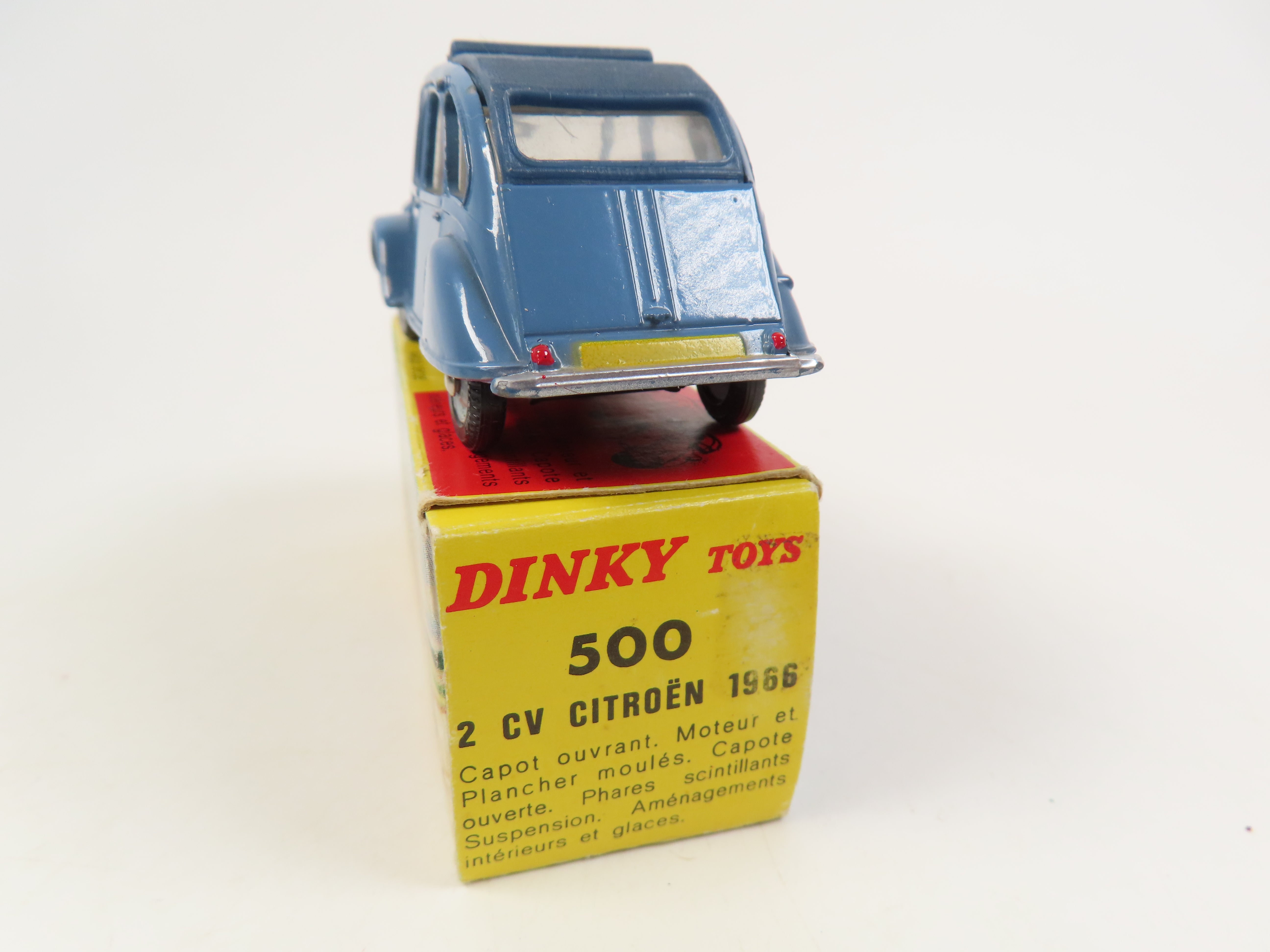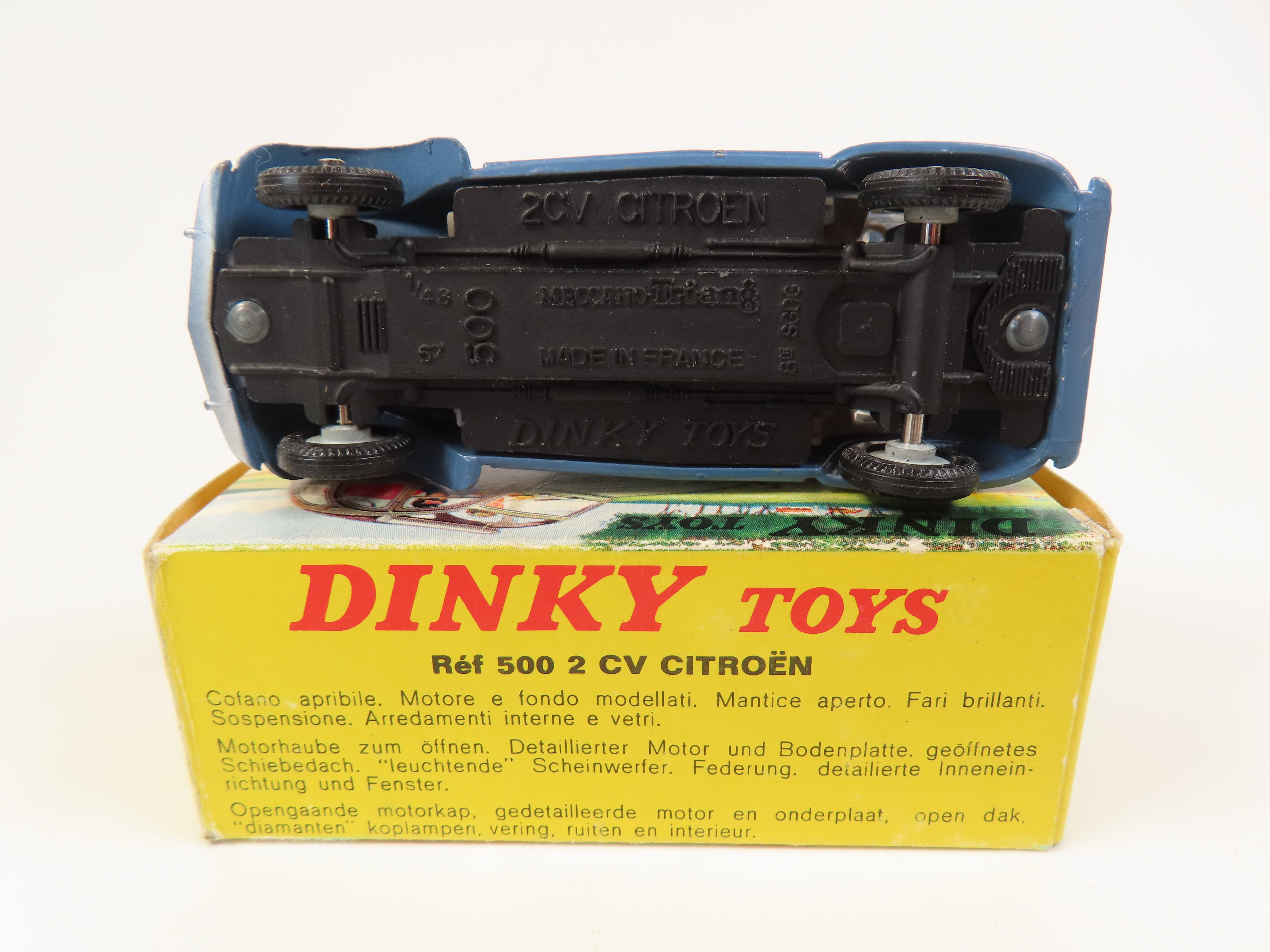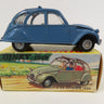 French Dinky 500 2 CV Citroen 1966 in blue with grey hubs.