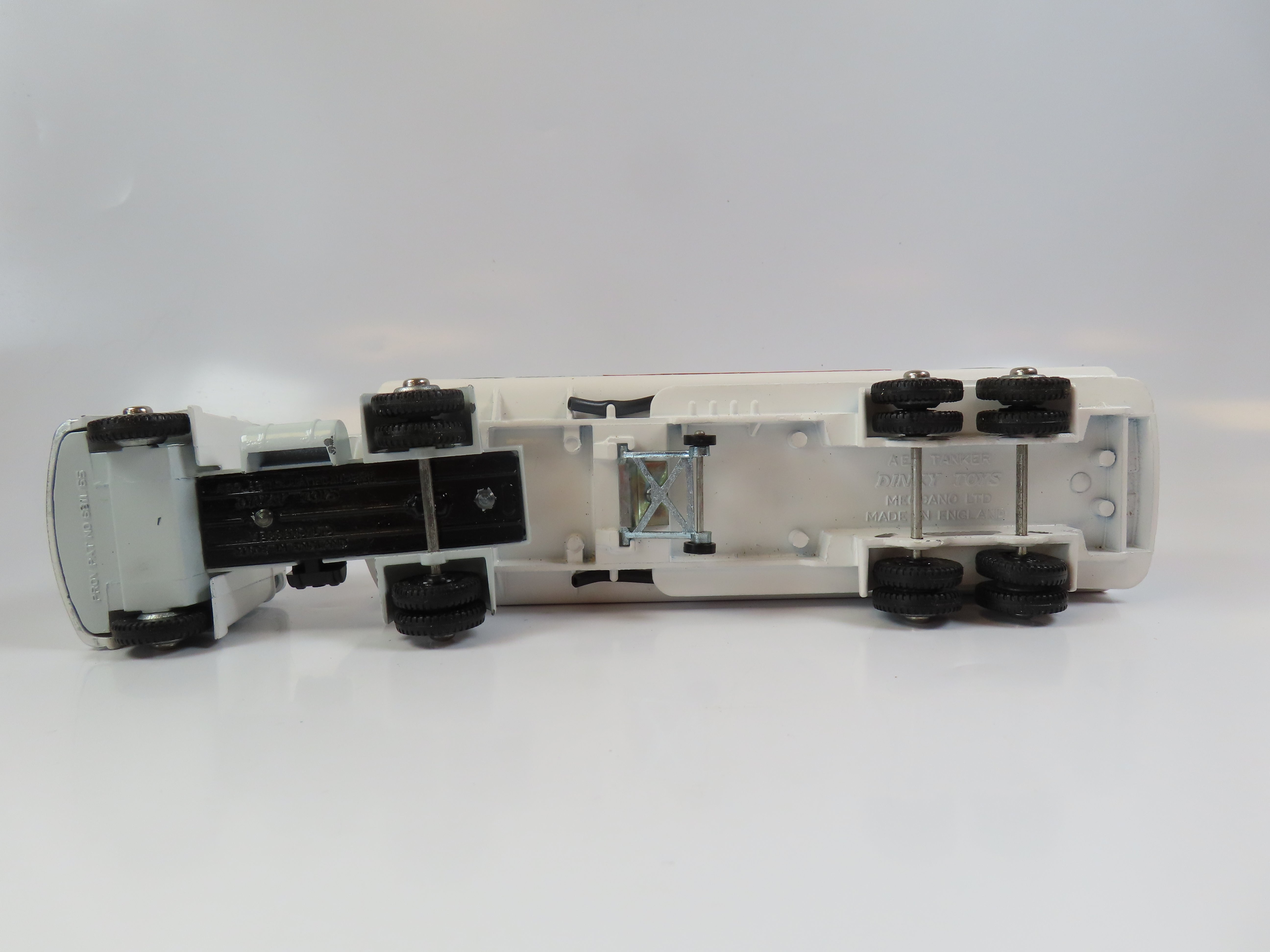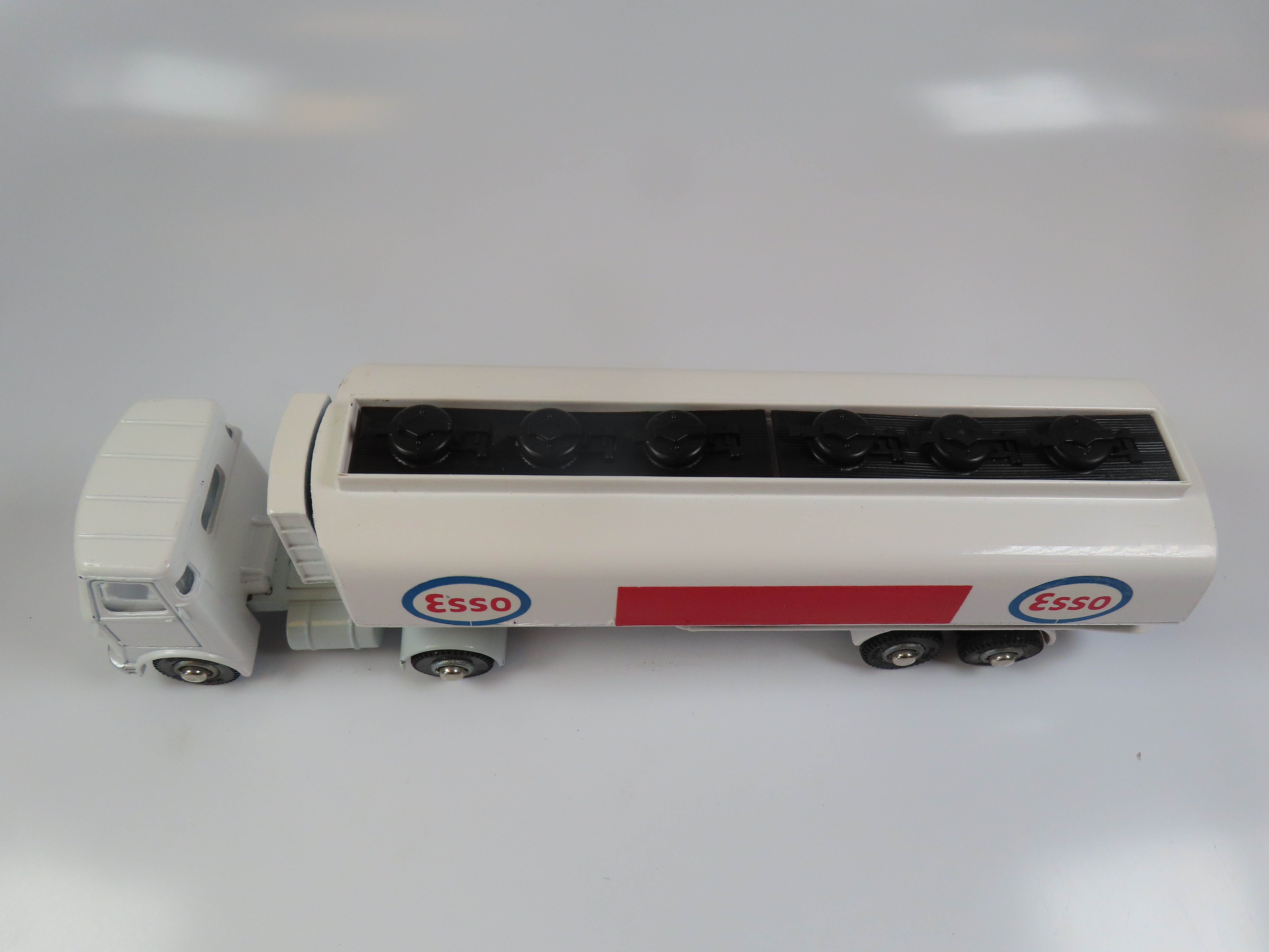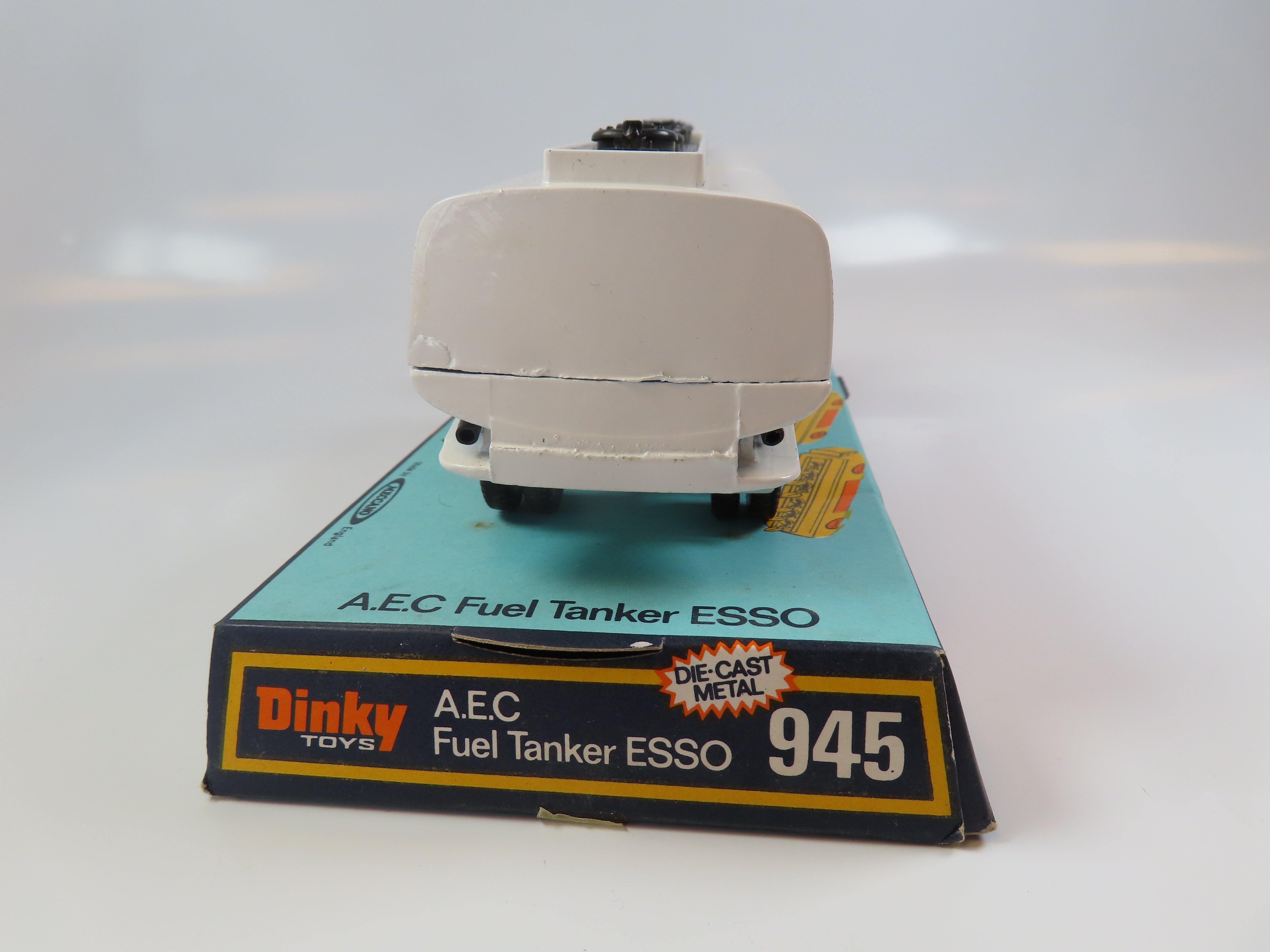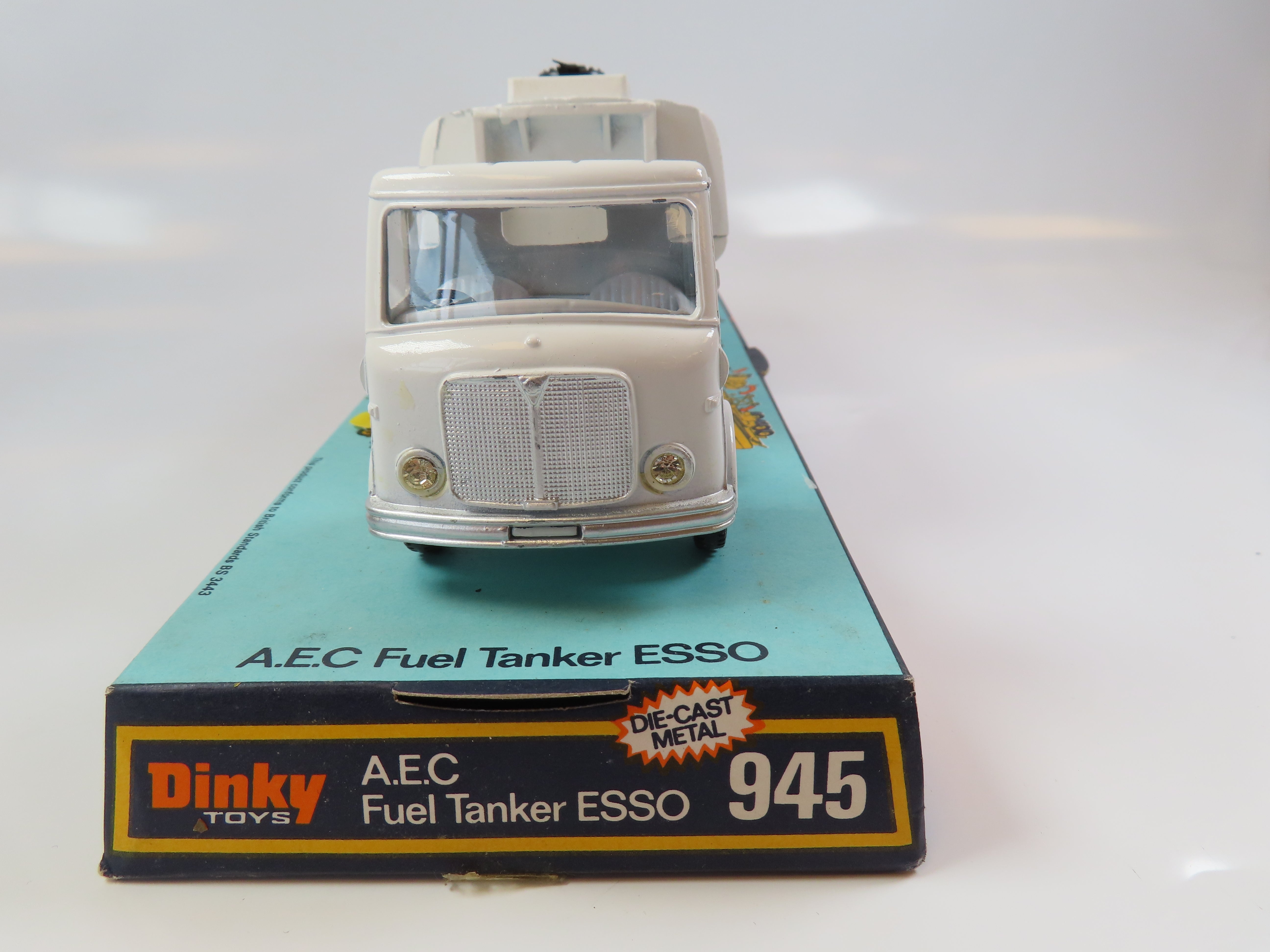 Dinky 945 A.E.C. Fuel Tanker ESSO, in white with red and blue 'ESSO' decals to each side.