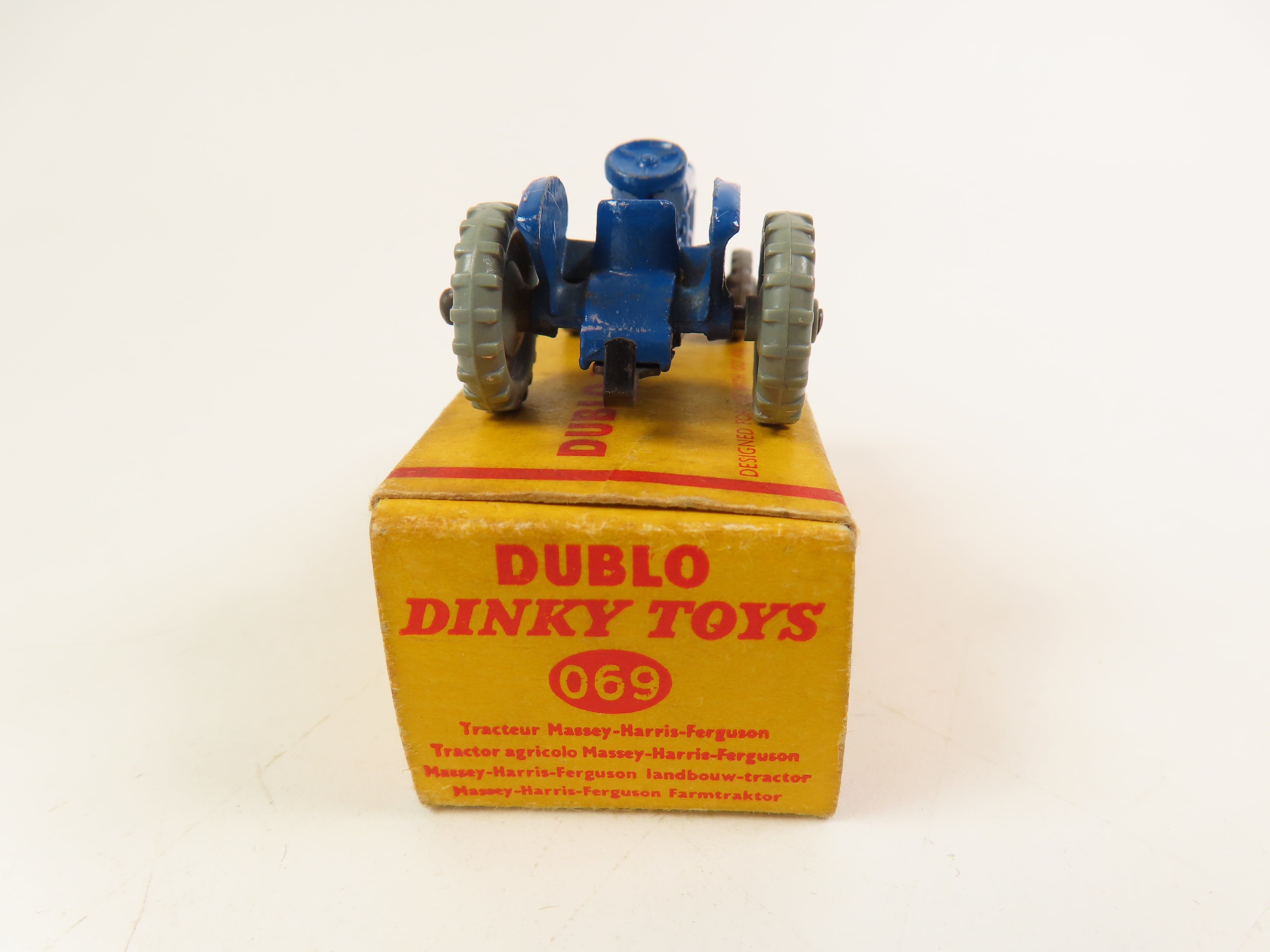 Dinky Dublo 069 Massey-Harris Ferguson Tractor in blue with grey plastic wheels.