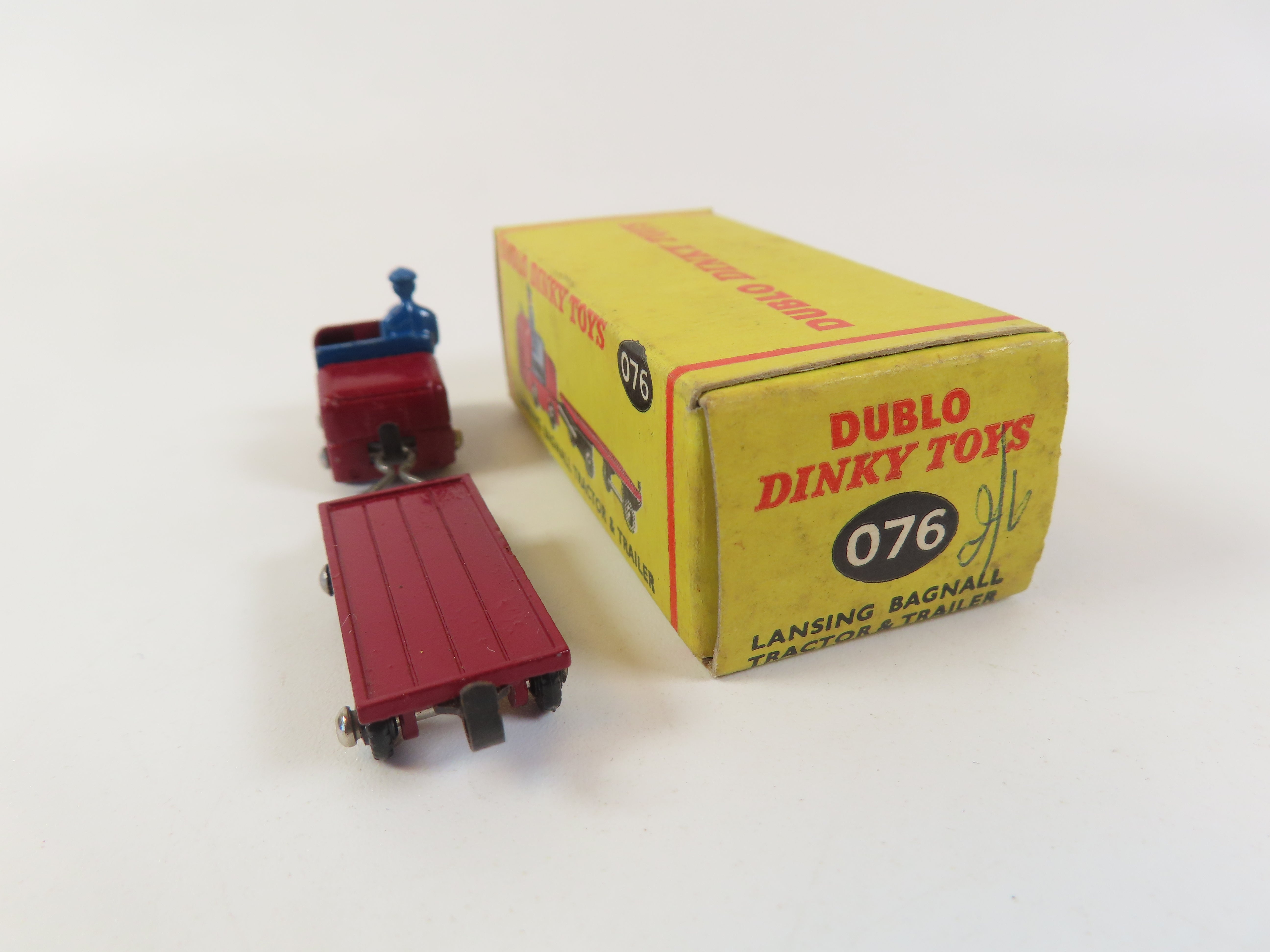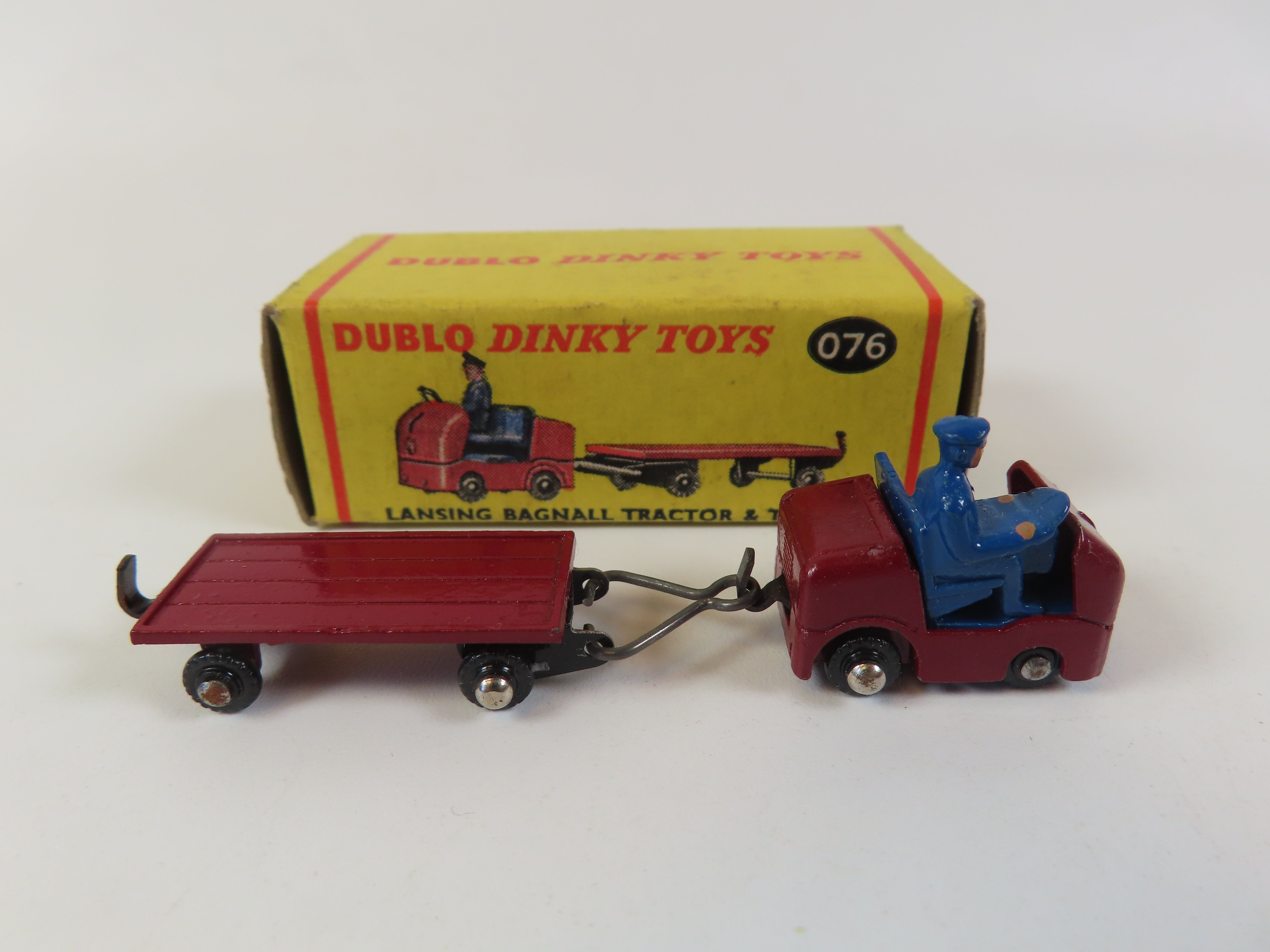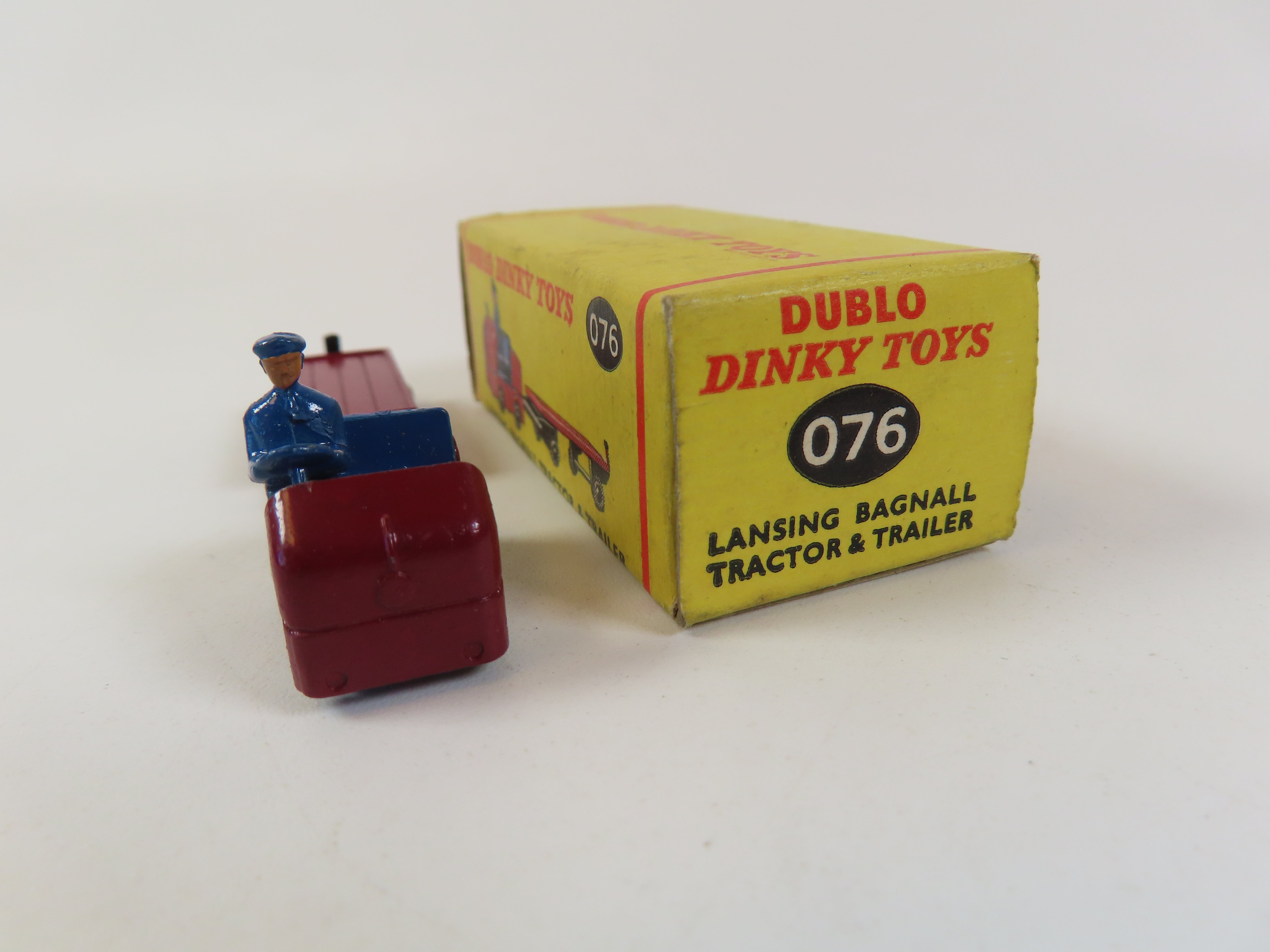 Dinky Dublo 076 Lansing Bagnall Tractor & Trailer in maroon with blue driver figure .