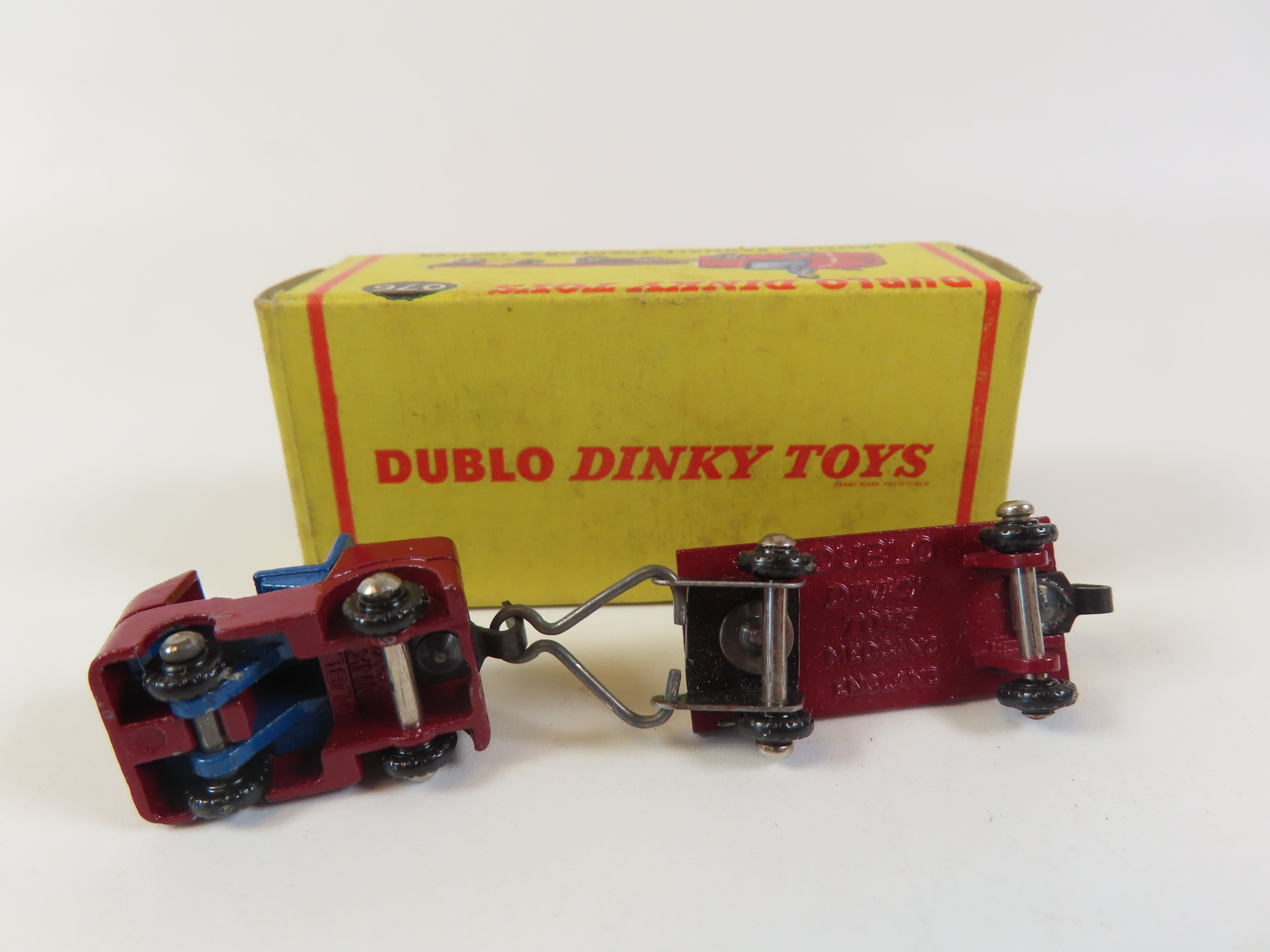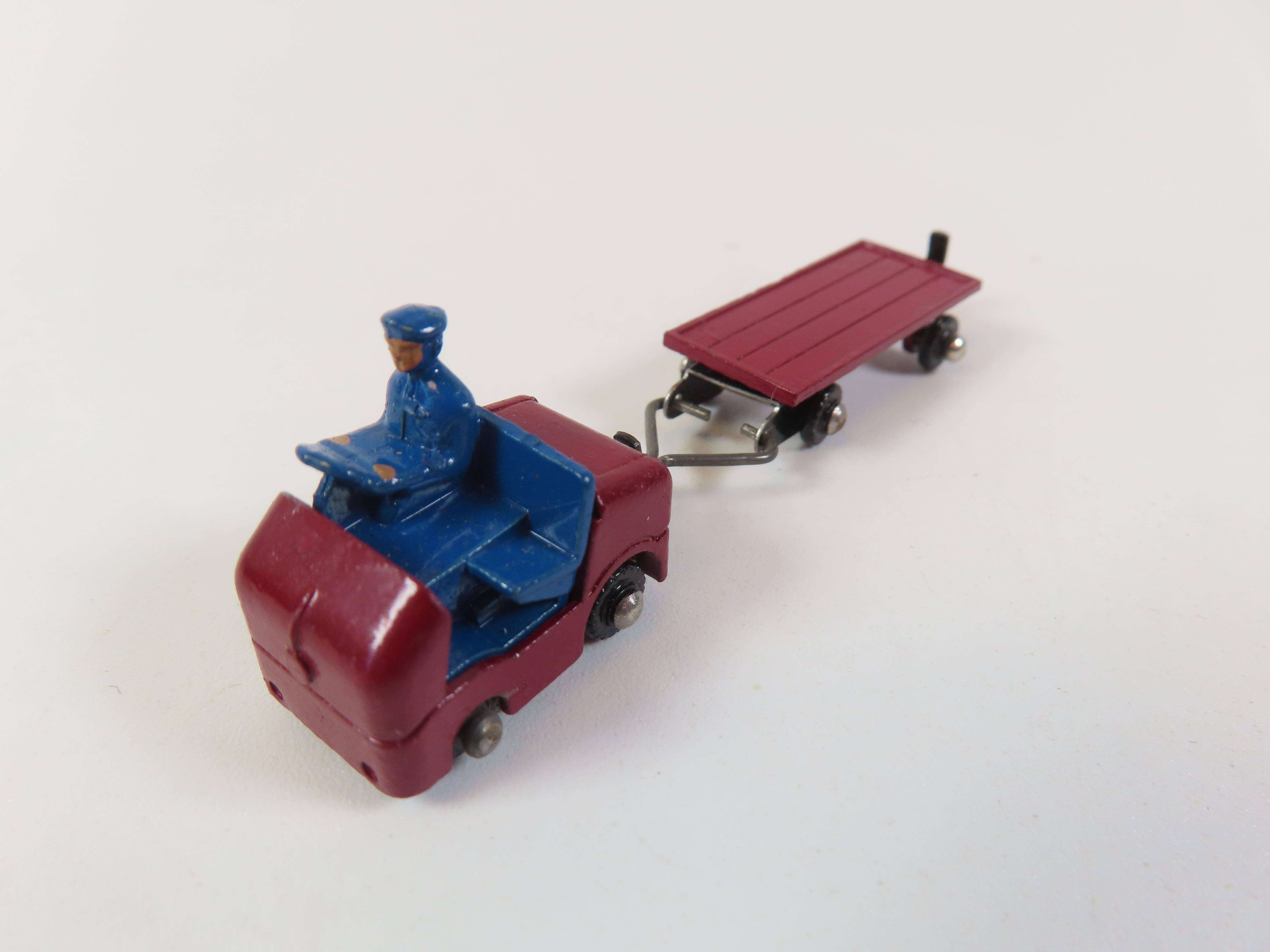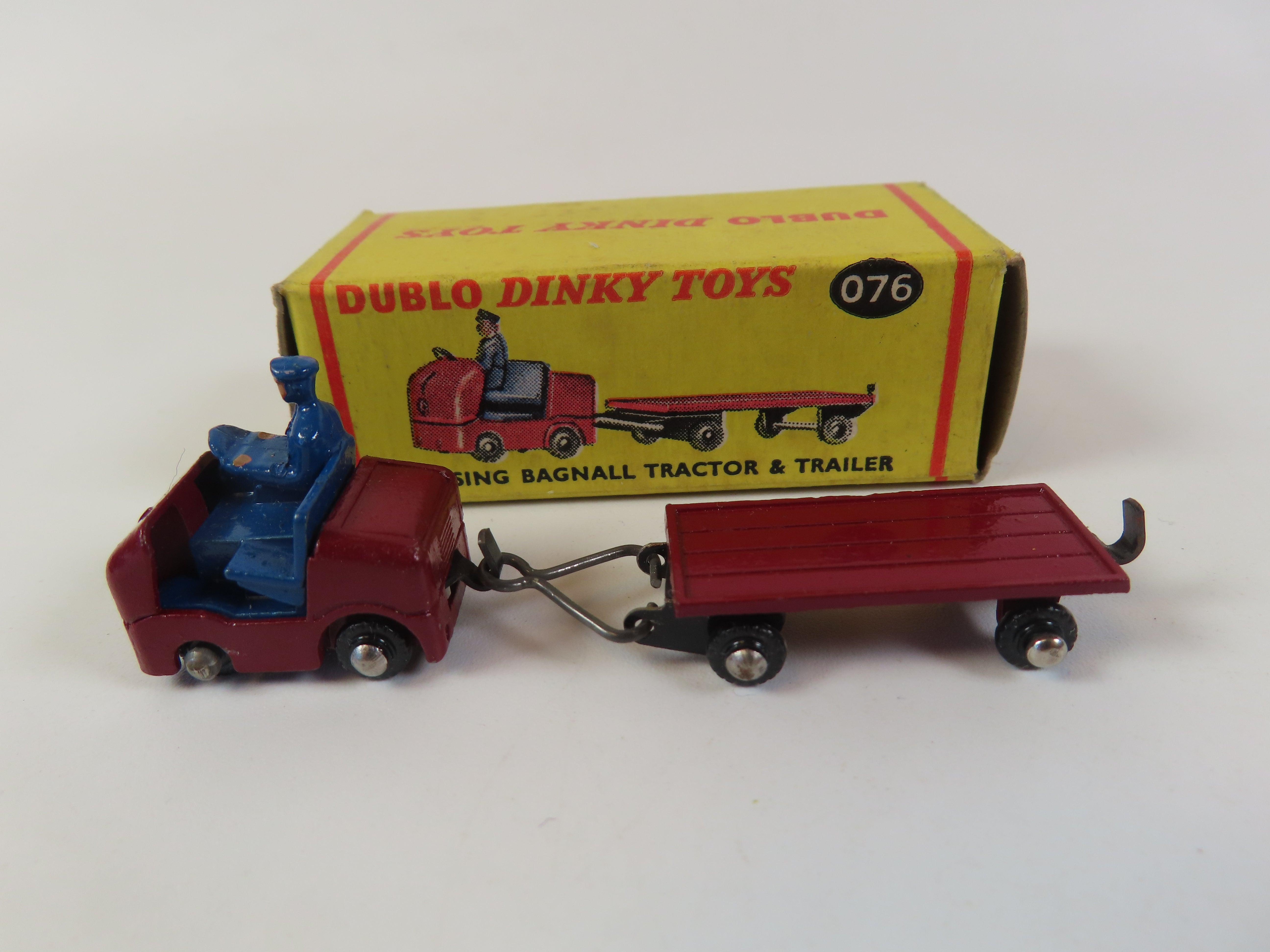 Dinky Dublo 076 Lansing Bagnall Tractor & Trailer in maroon with blue driver figure .