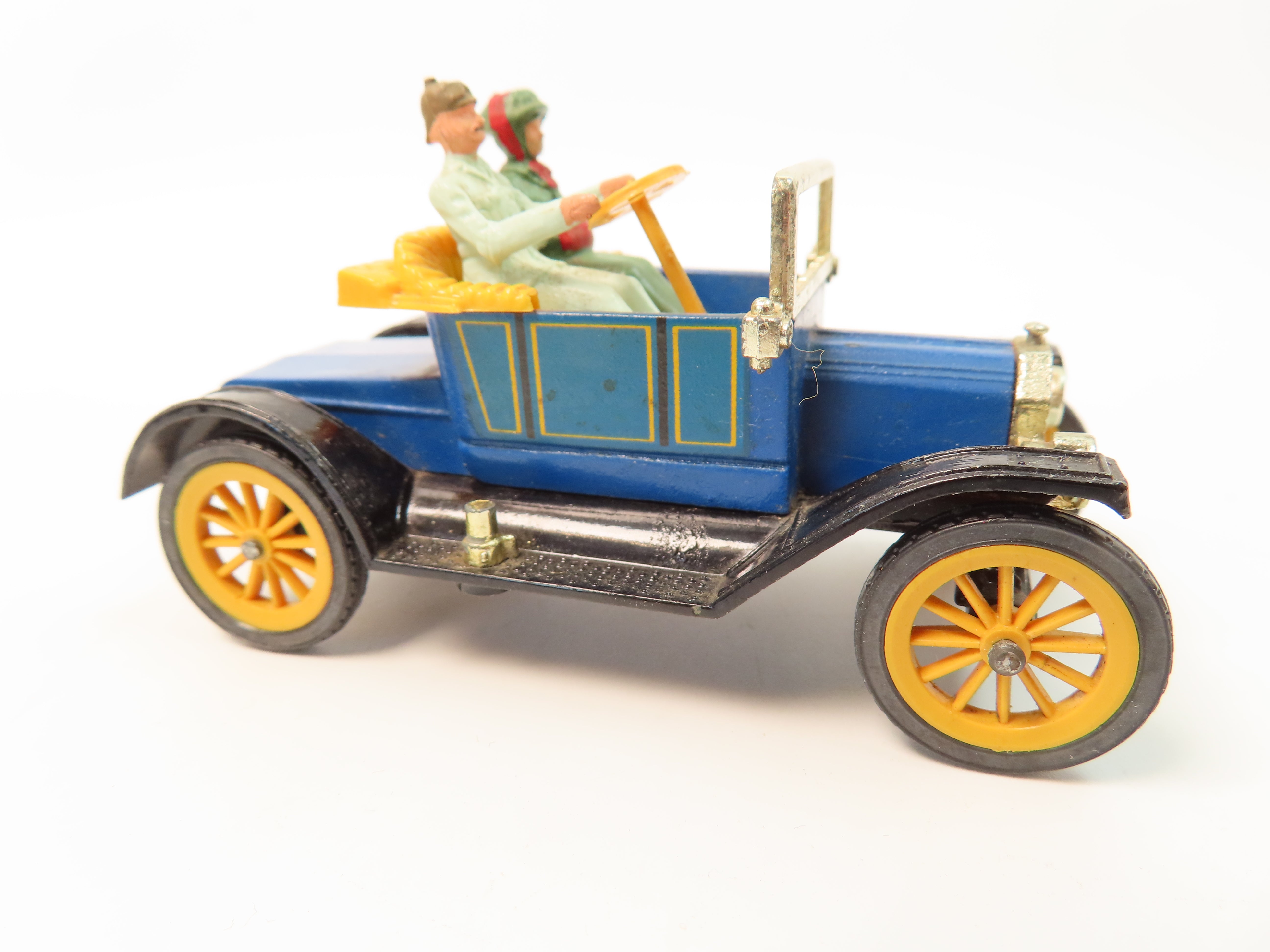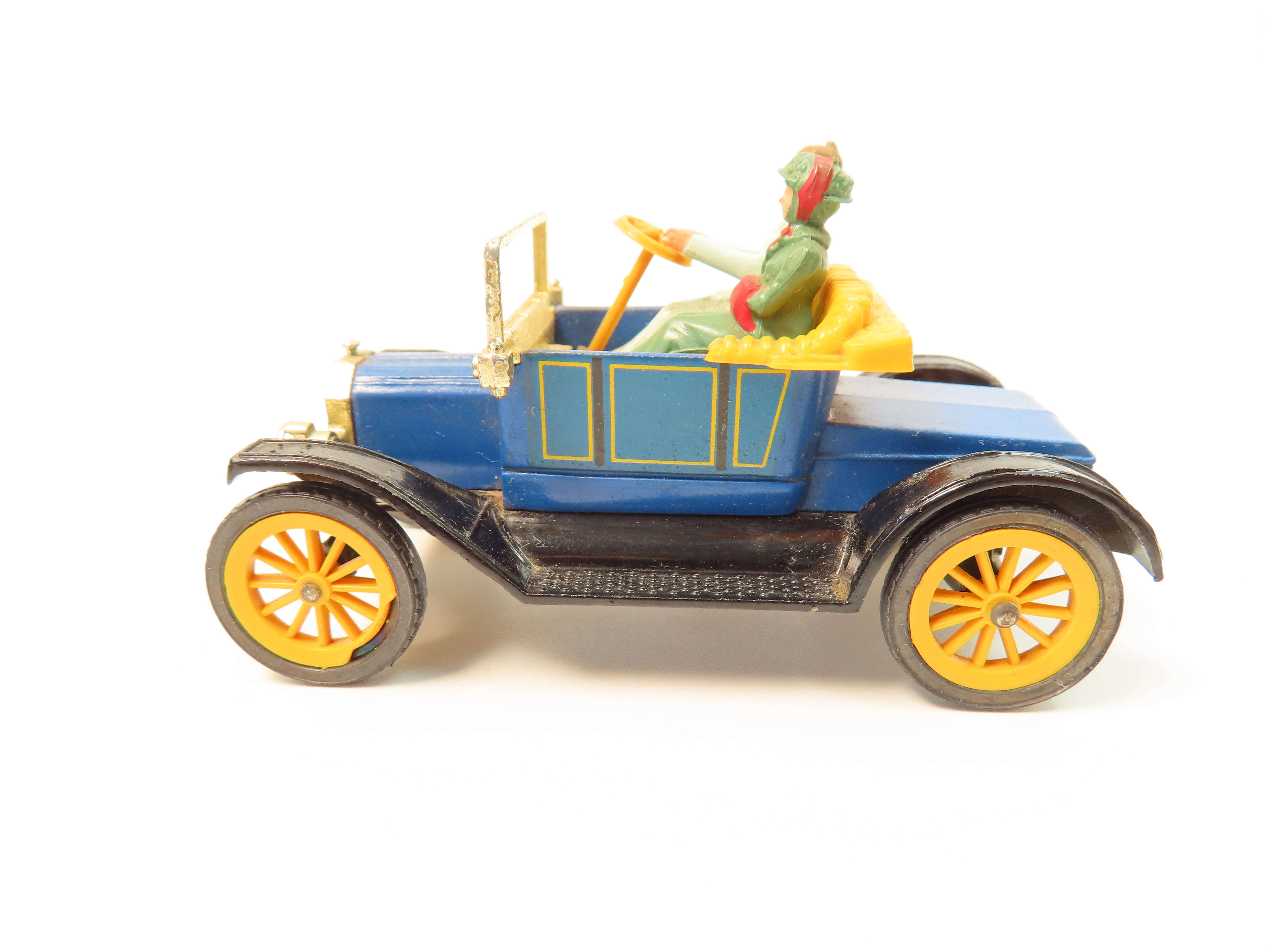 Dinky Toys - Model T Ford in blue and black with yellow seats and wheels. From the 1960's.
