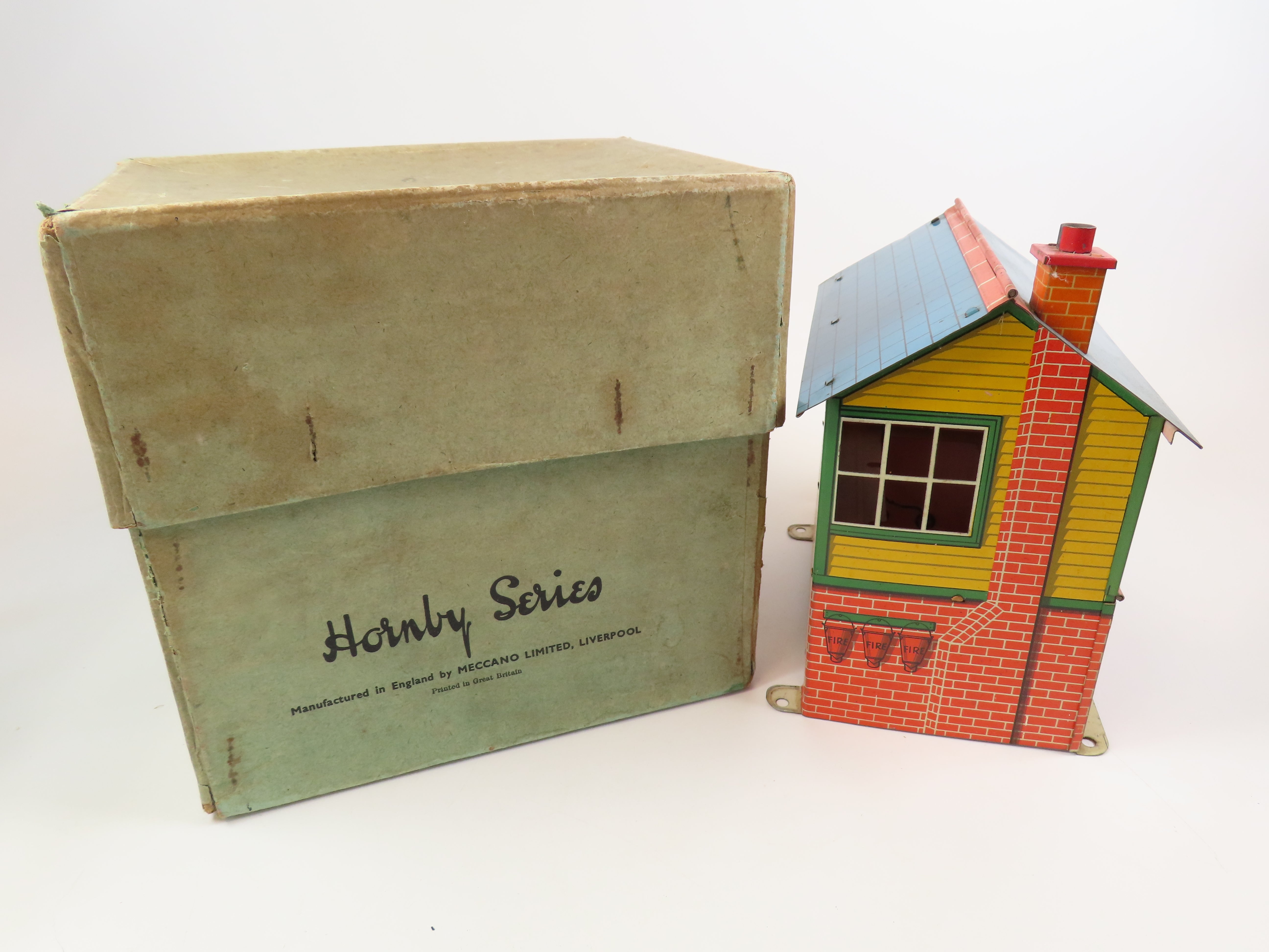 Hornby No.2E Signal Cabin fitted for electric lighting. Very nice, pre-war issue! Offered at a very fair price.
