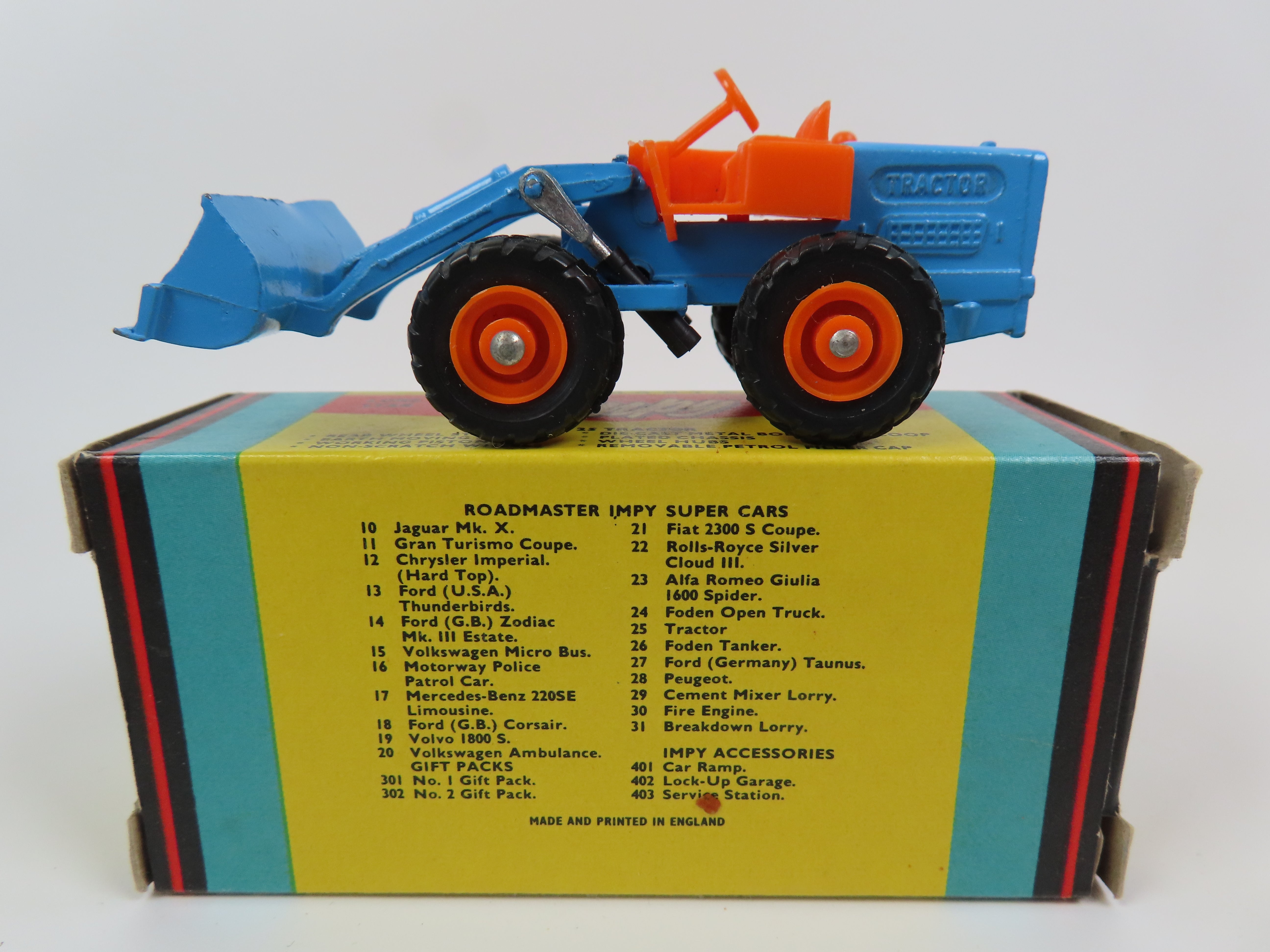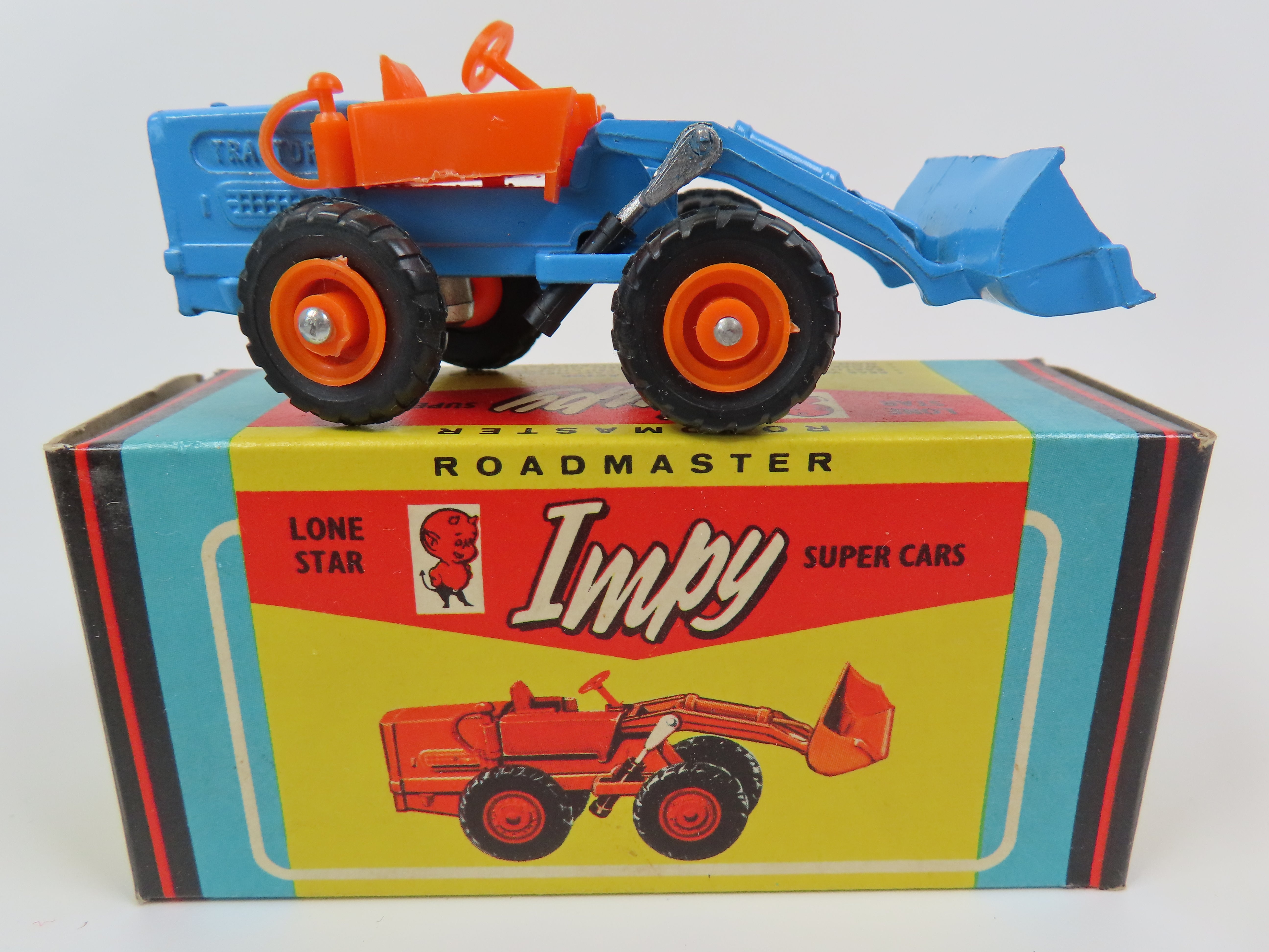 Lone Star - Impy 25 Tractor - Blue engine and shovel, orange plastic body.