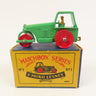 Matchbox 1b Road Roller in light green with red metal rollers, tan driver and gold detailing.