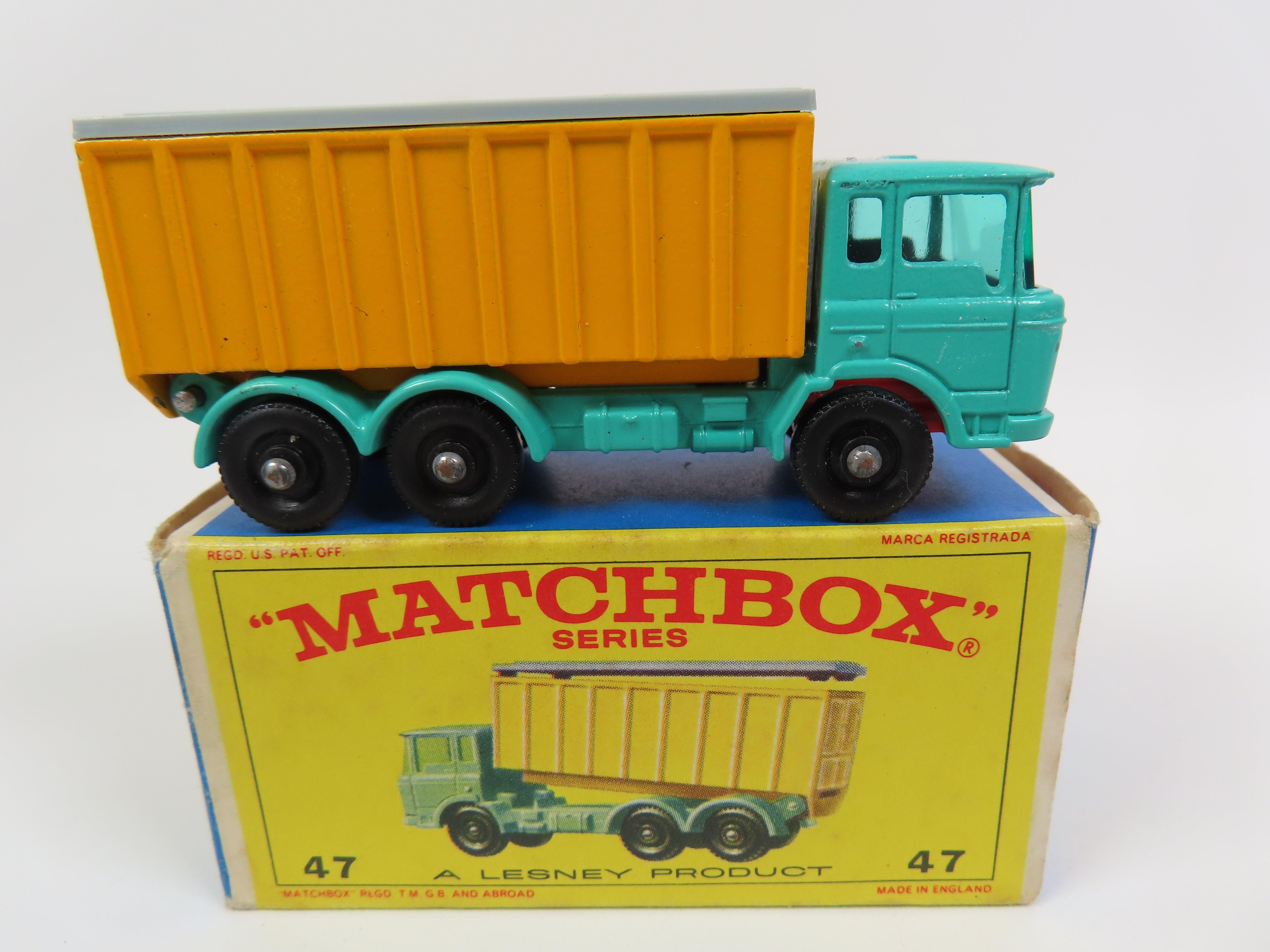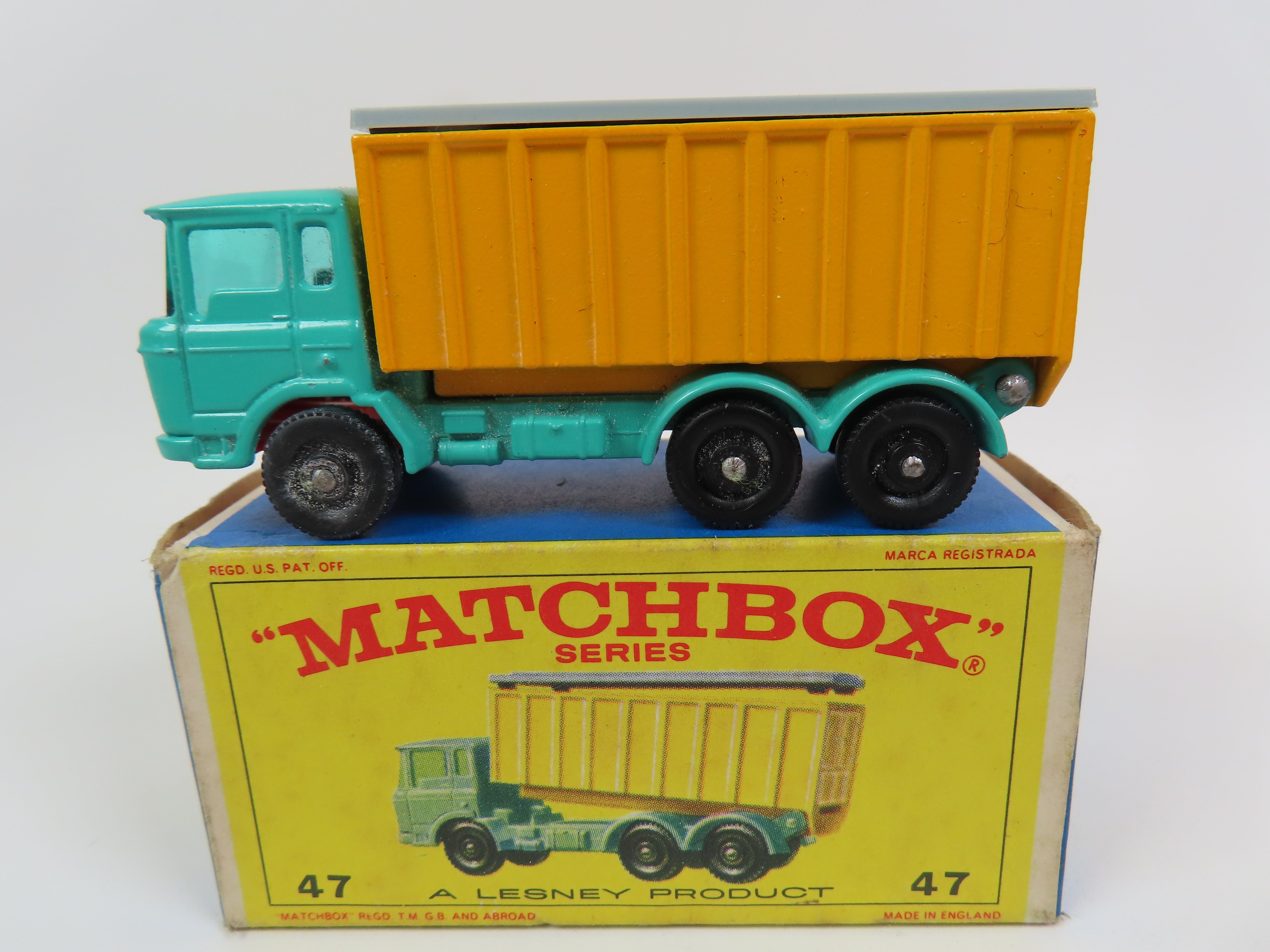 Matchbox 47 DAF Tipper Container Truck - Turquoise/yellow - Mint Boxed!