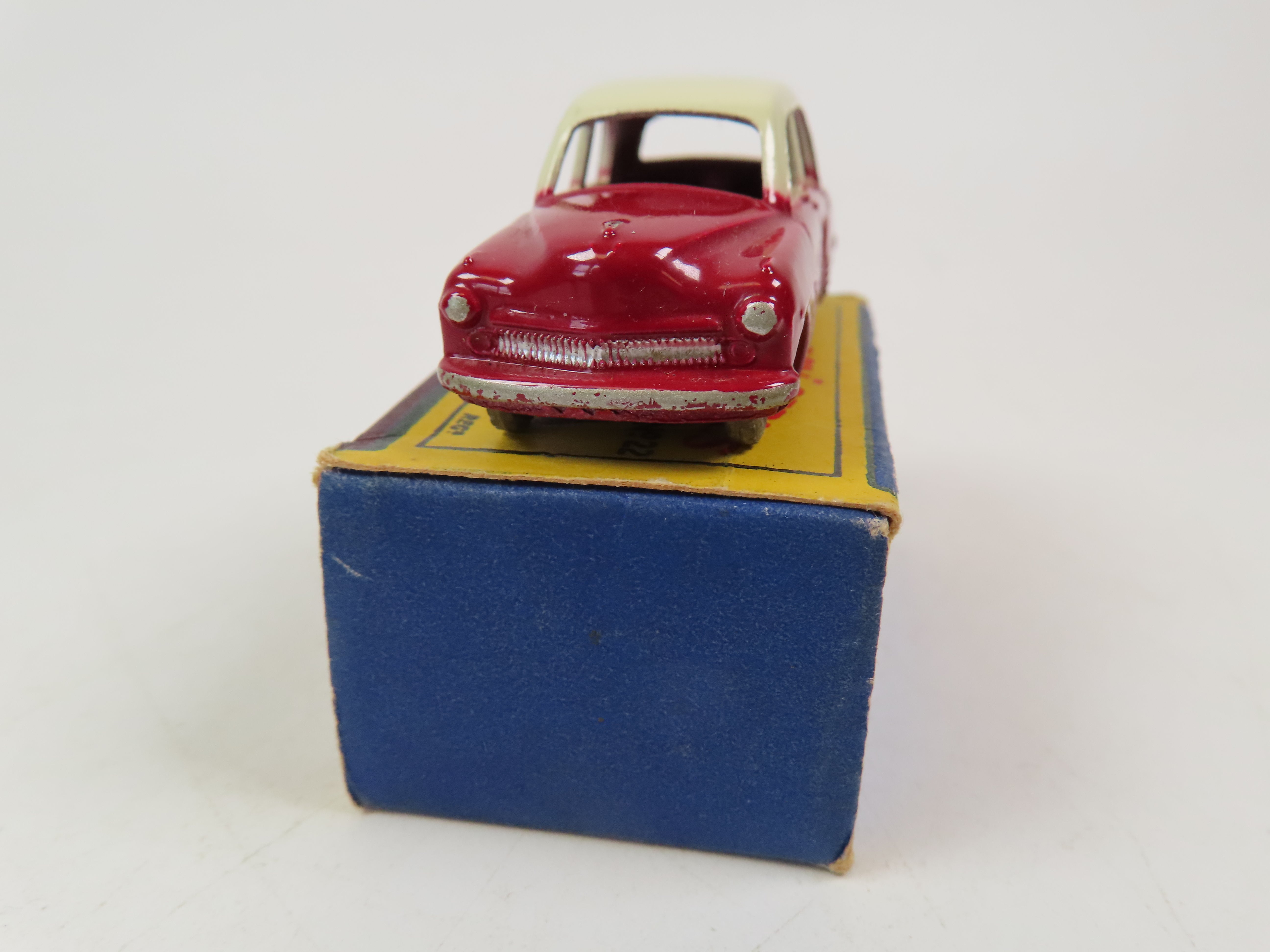 Matchbox No.22 Vauxhall Cresta in dark red, with a cream roof, silver painted trim to front and rear, and metal wheels and tow hook.