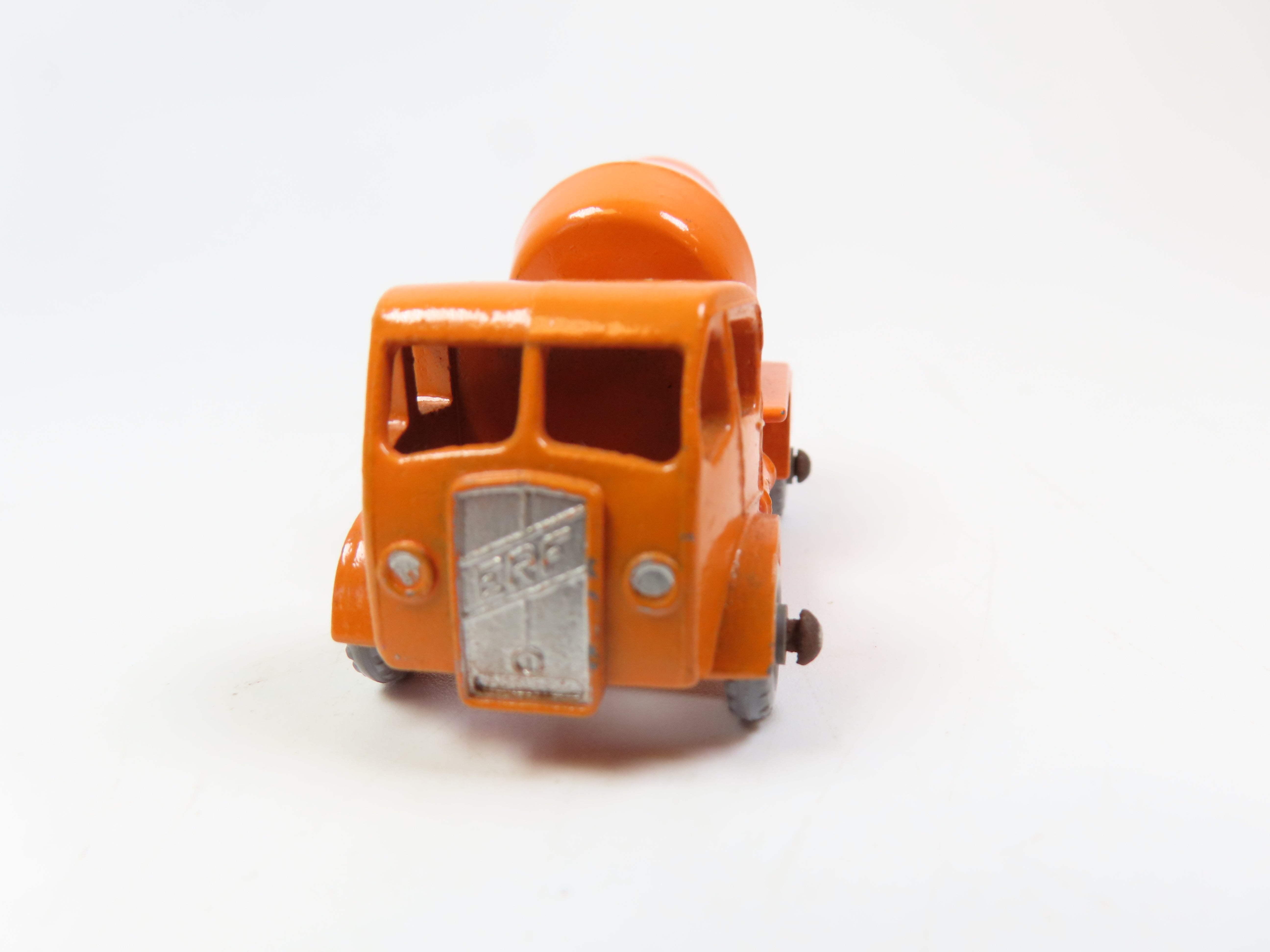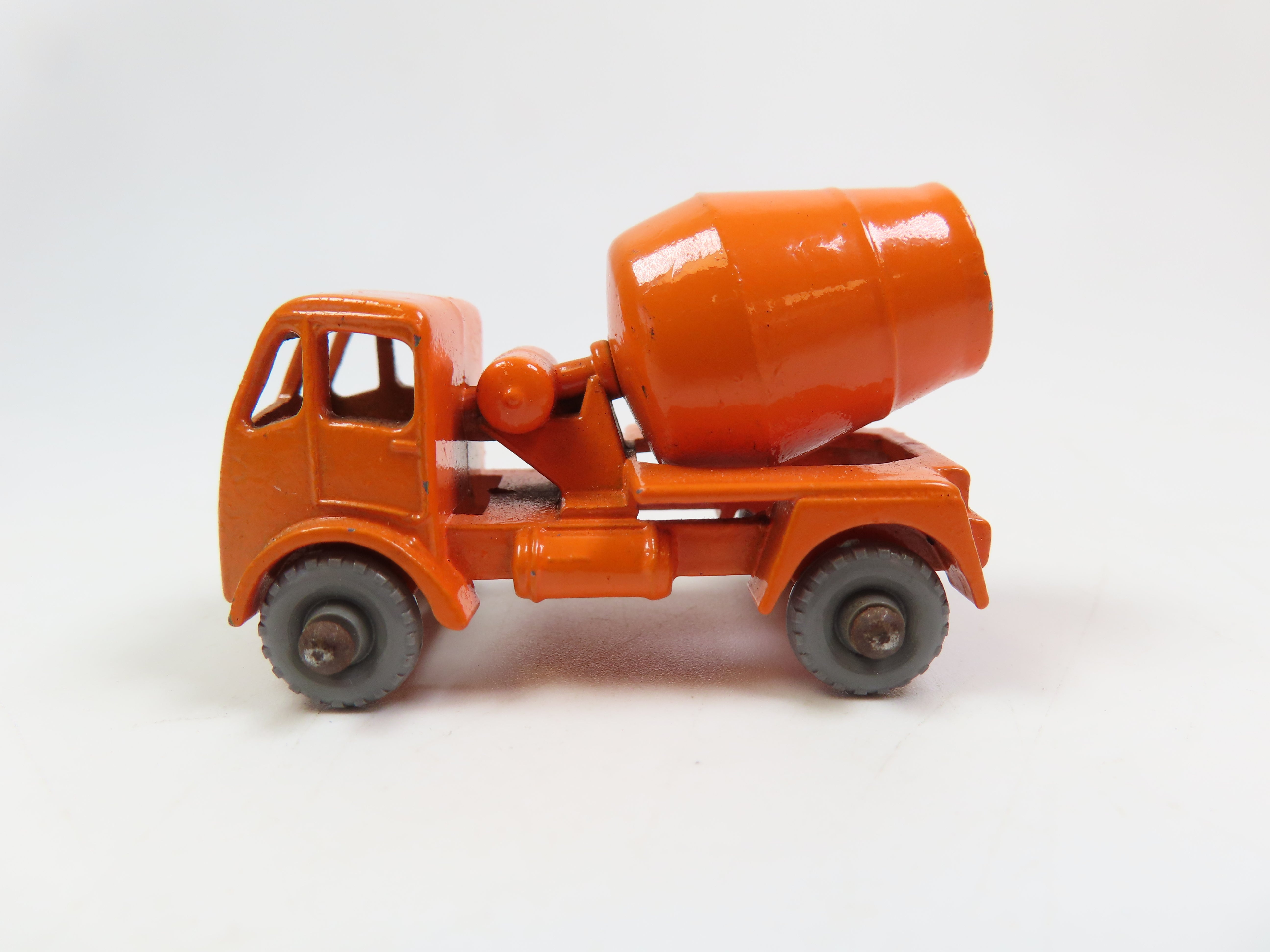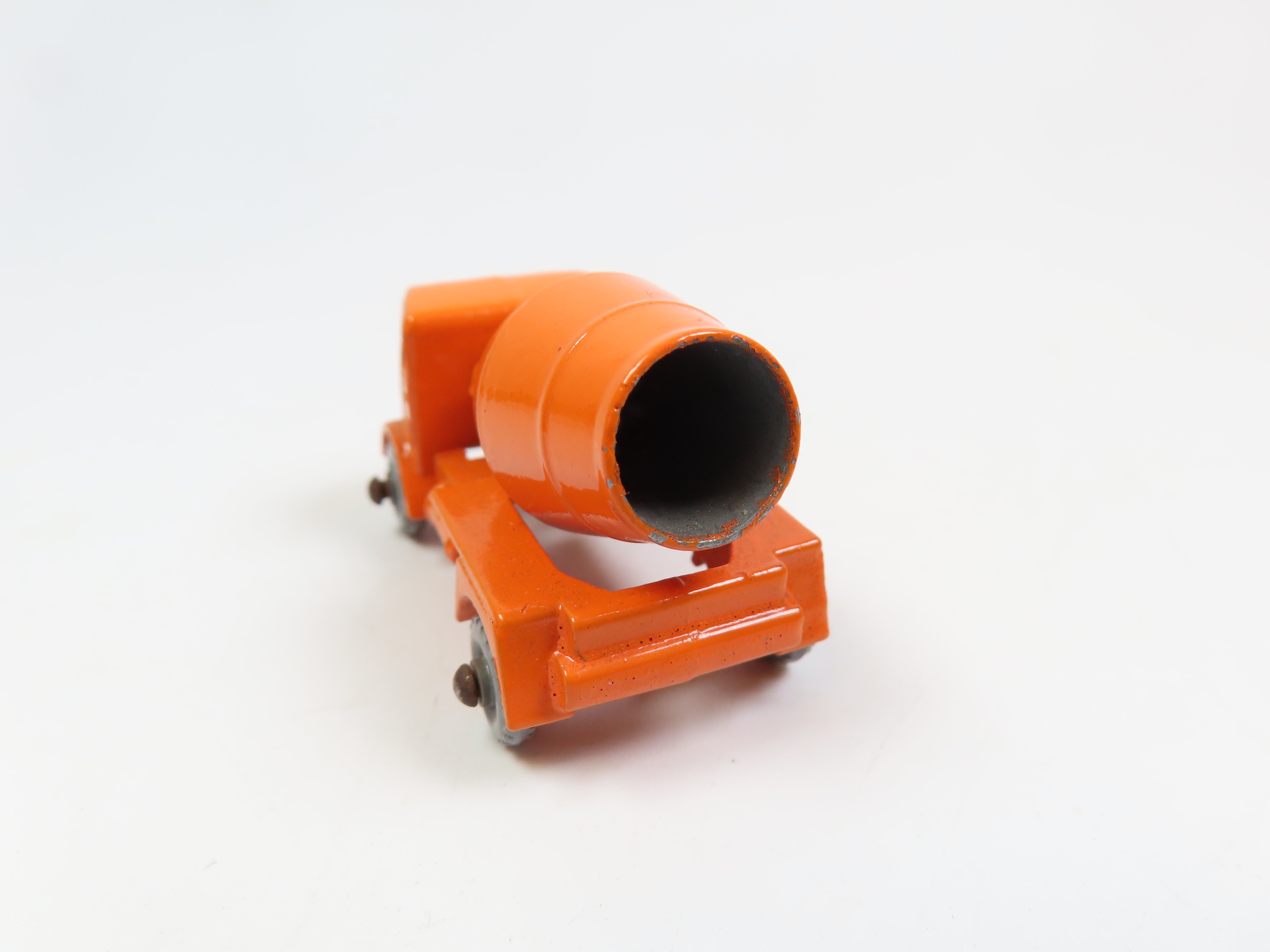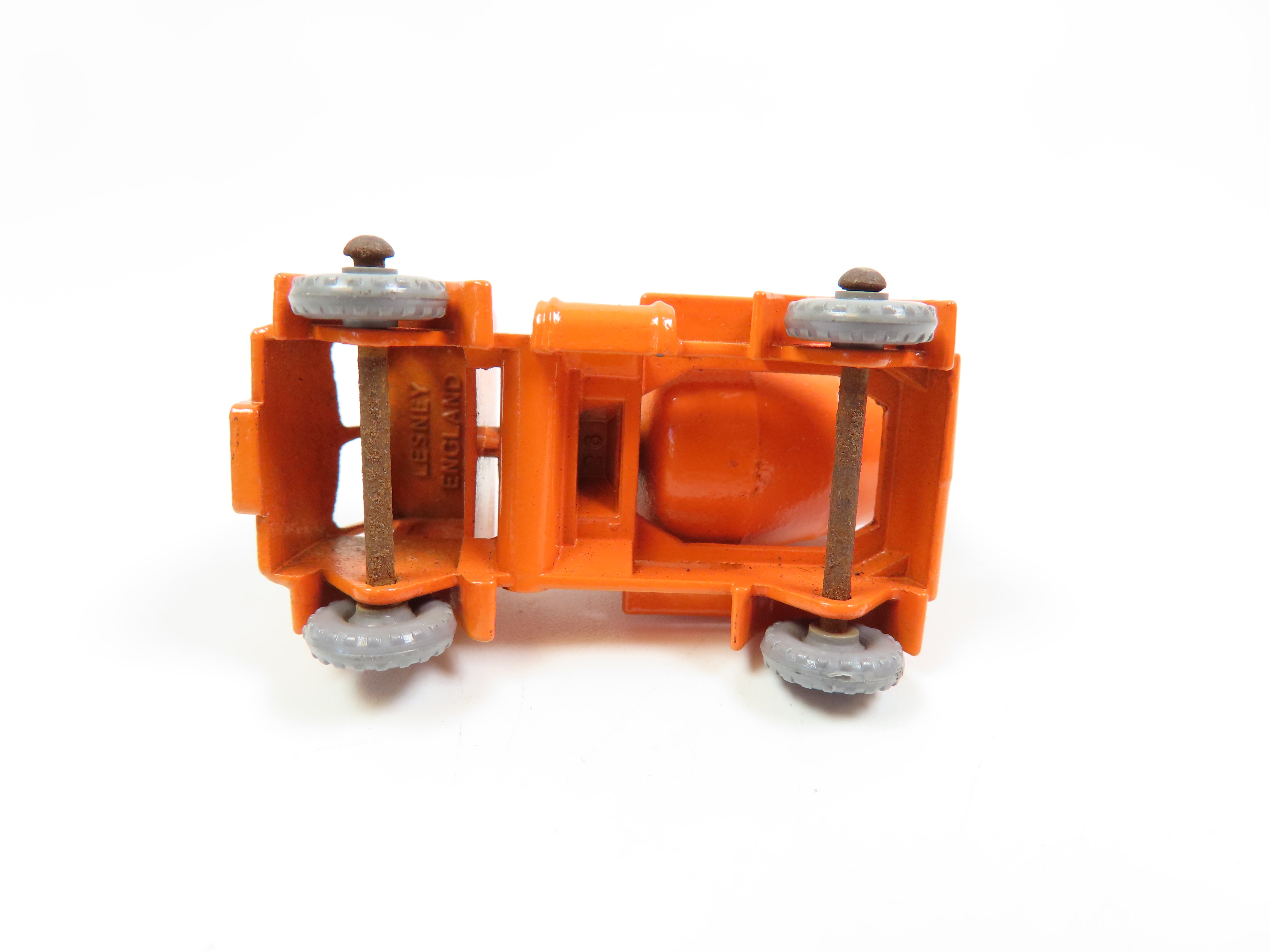 Matchbox No.26 ERF Cement Mixer in orange, with grey plastic wheels and silver painted grille. Scarce with grey plastic wheels.