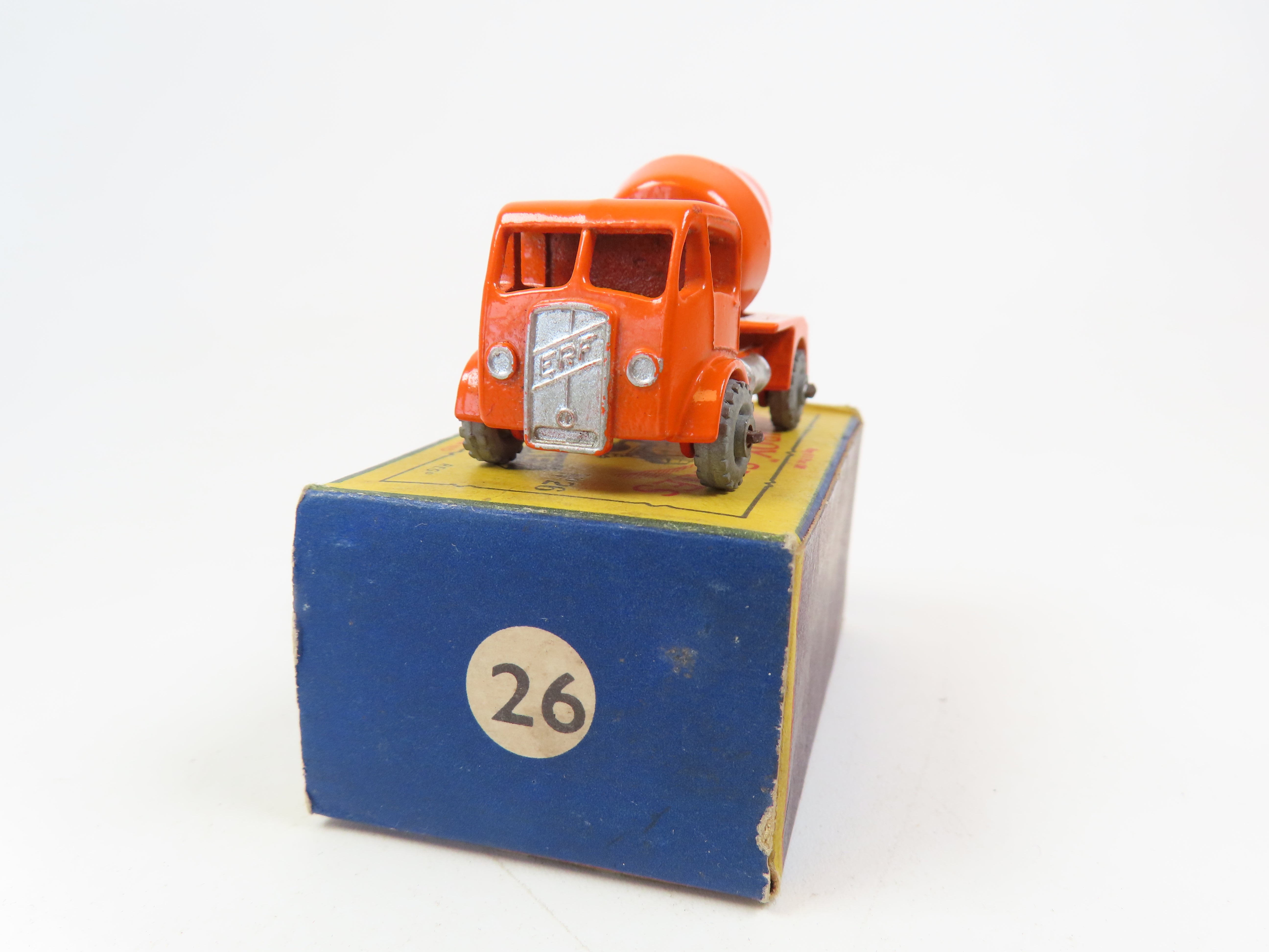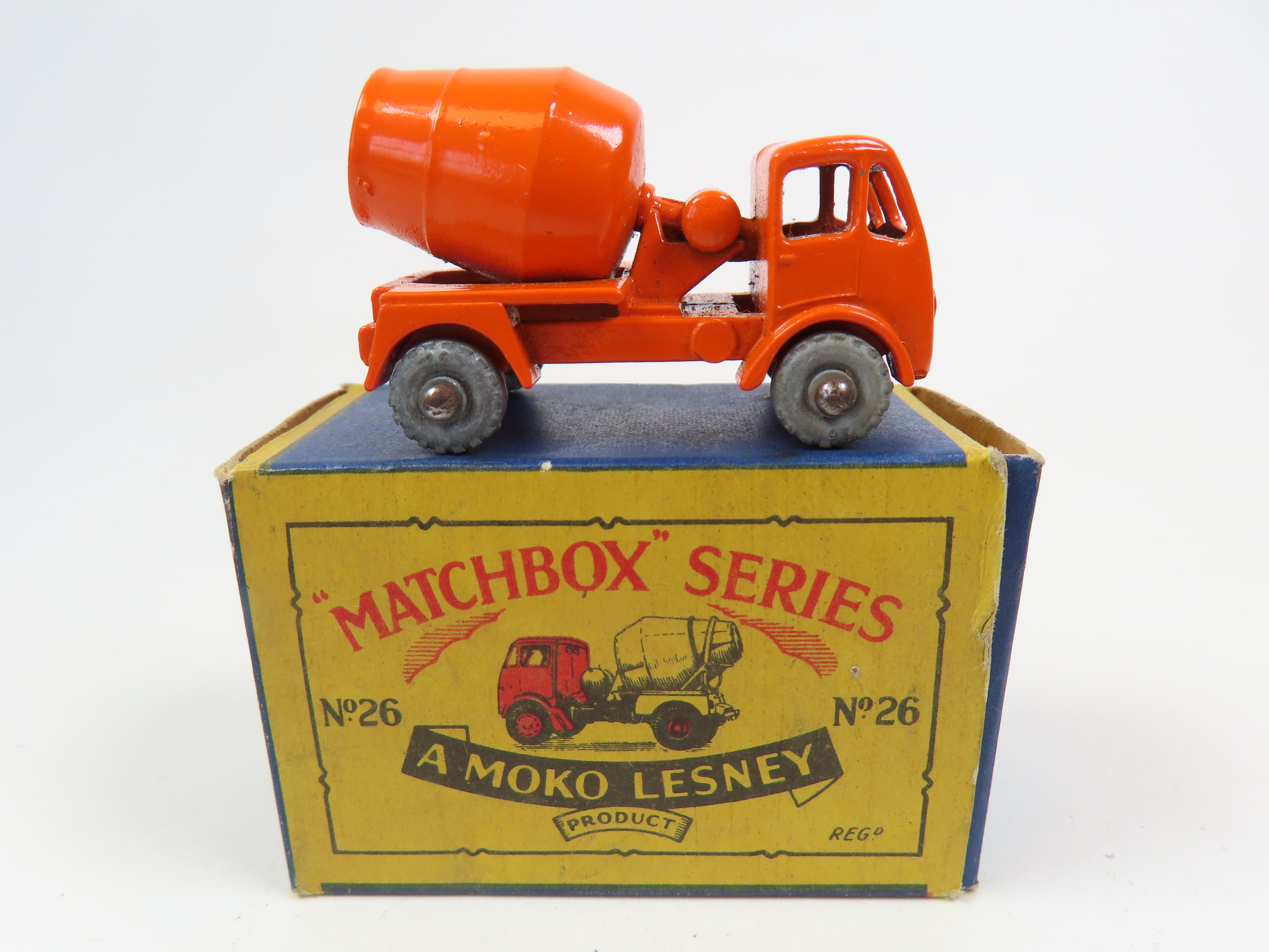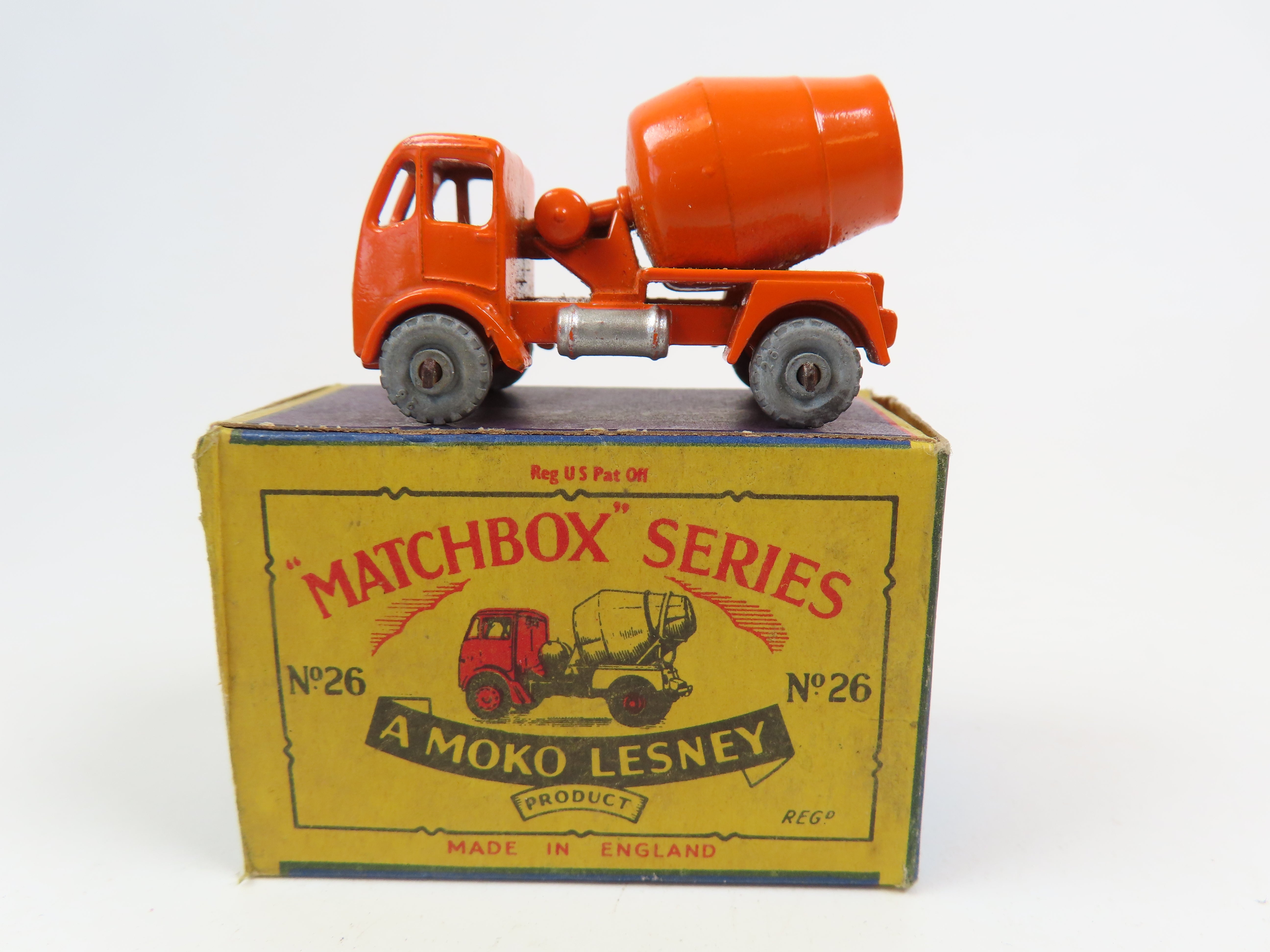 Matchbox No.26 Foden Ready Mix Concrete Truck in orange, with silver grille and detailing and metal wheels.