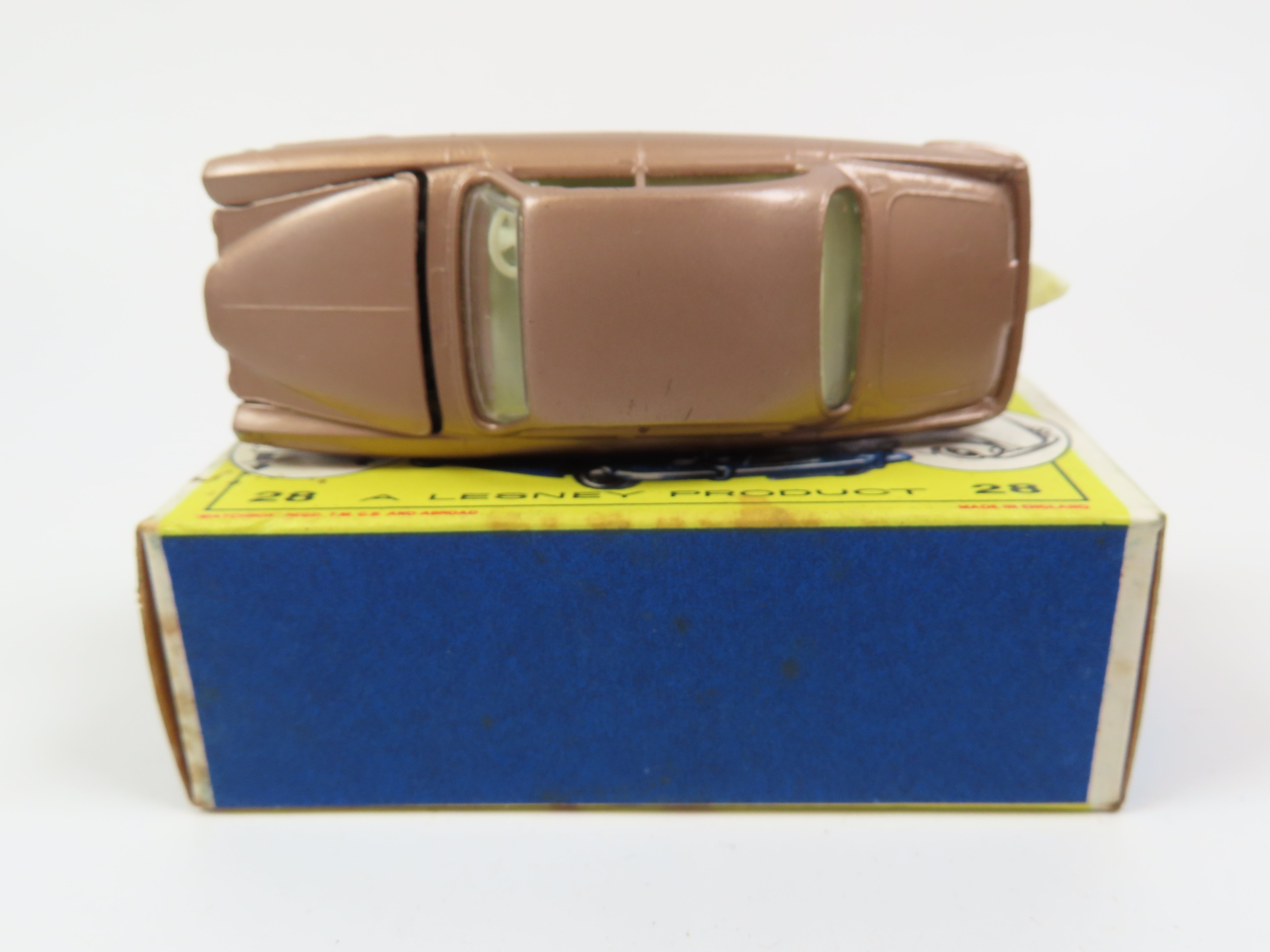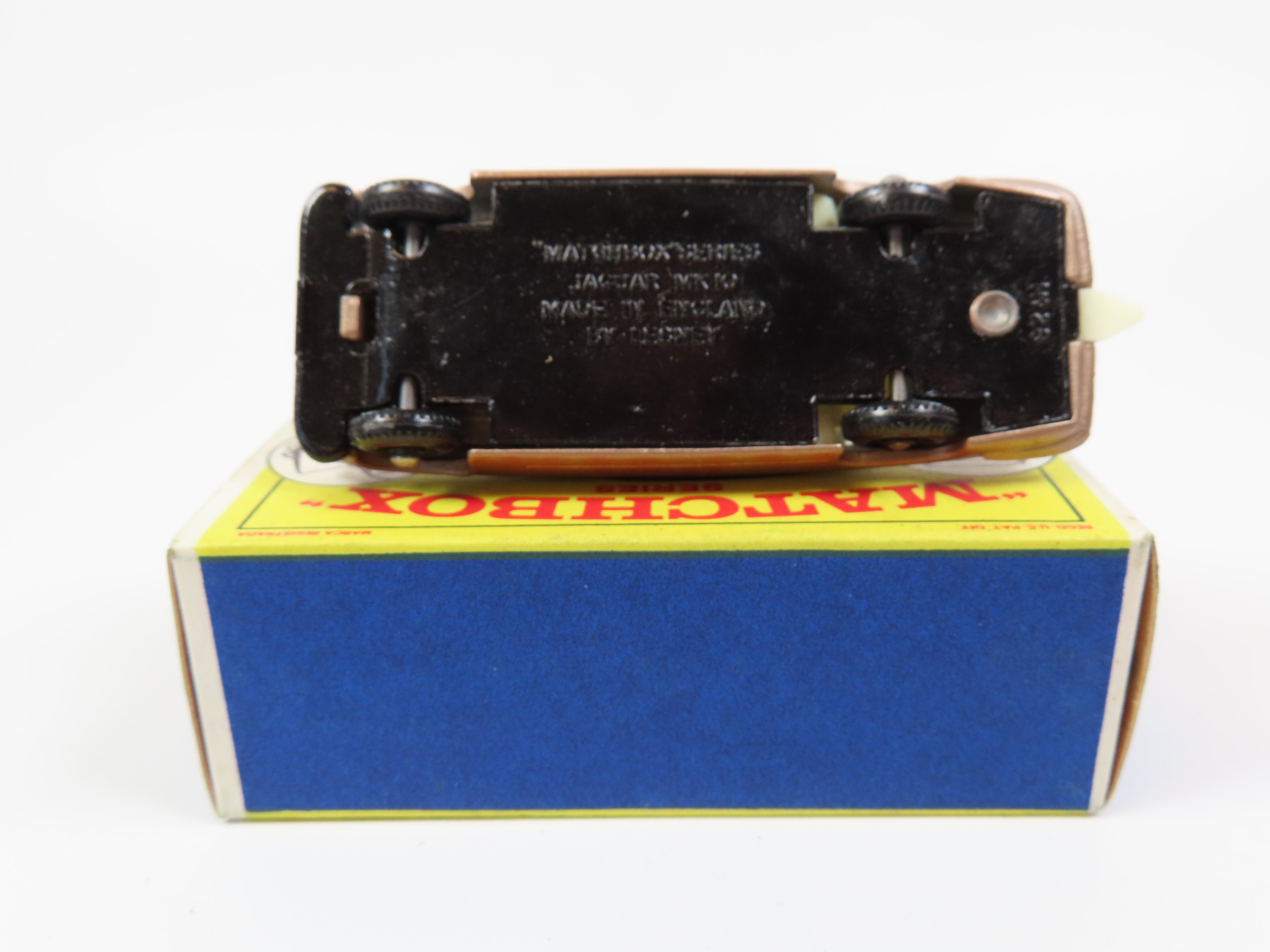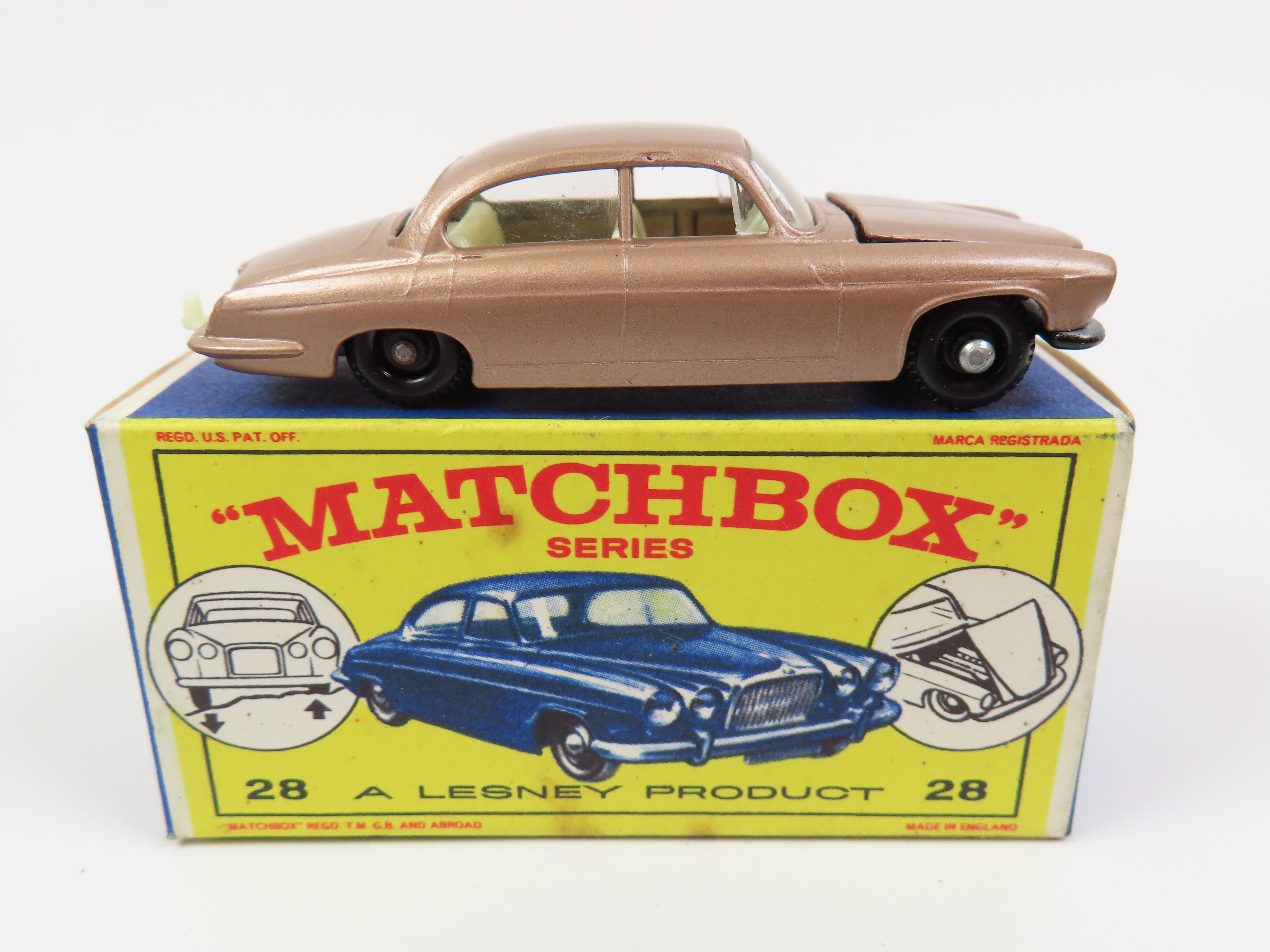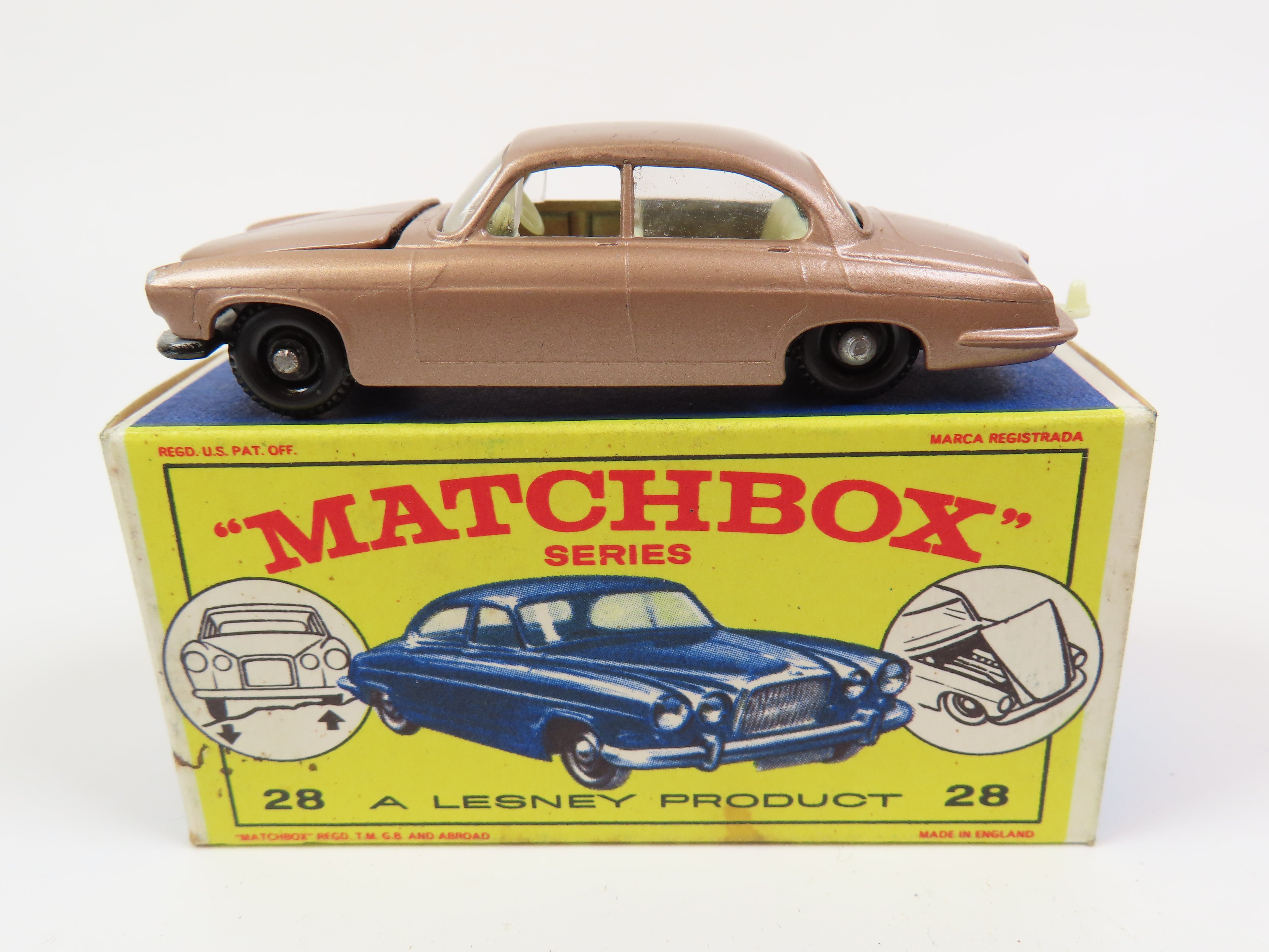 Matchbox No.28 Mark Ten Jaguar in a lovely metallic light brown colour, with black painted baseplate and black plastic wheels.