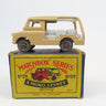 Matchbox No.29 Bedford Milk Delivery Van in tan, with white bottle load to the rear and grey metal wheels.