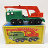 Matchbox No.30 8-Wheel Crane in green with orange crane arm and yellow plastic hook.