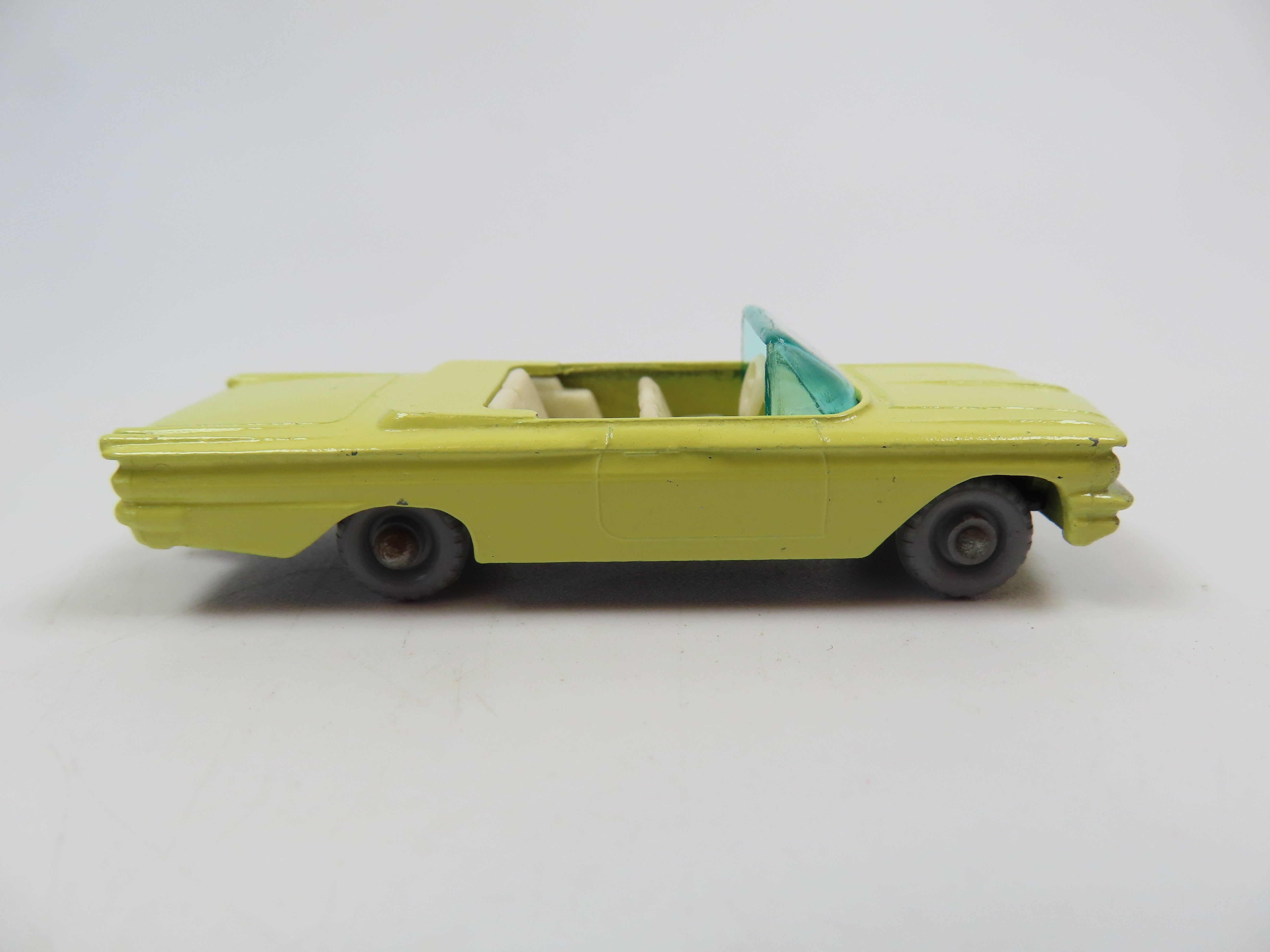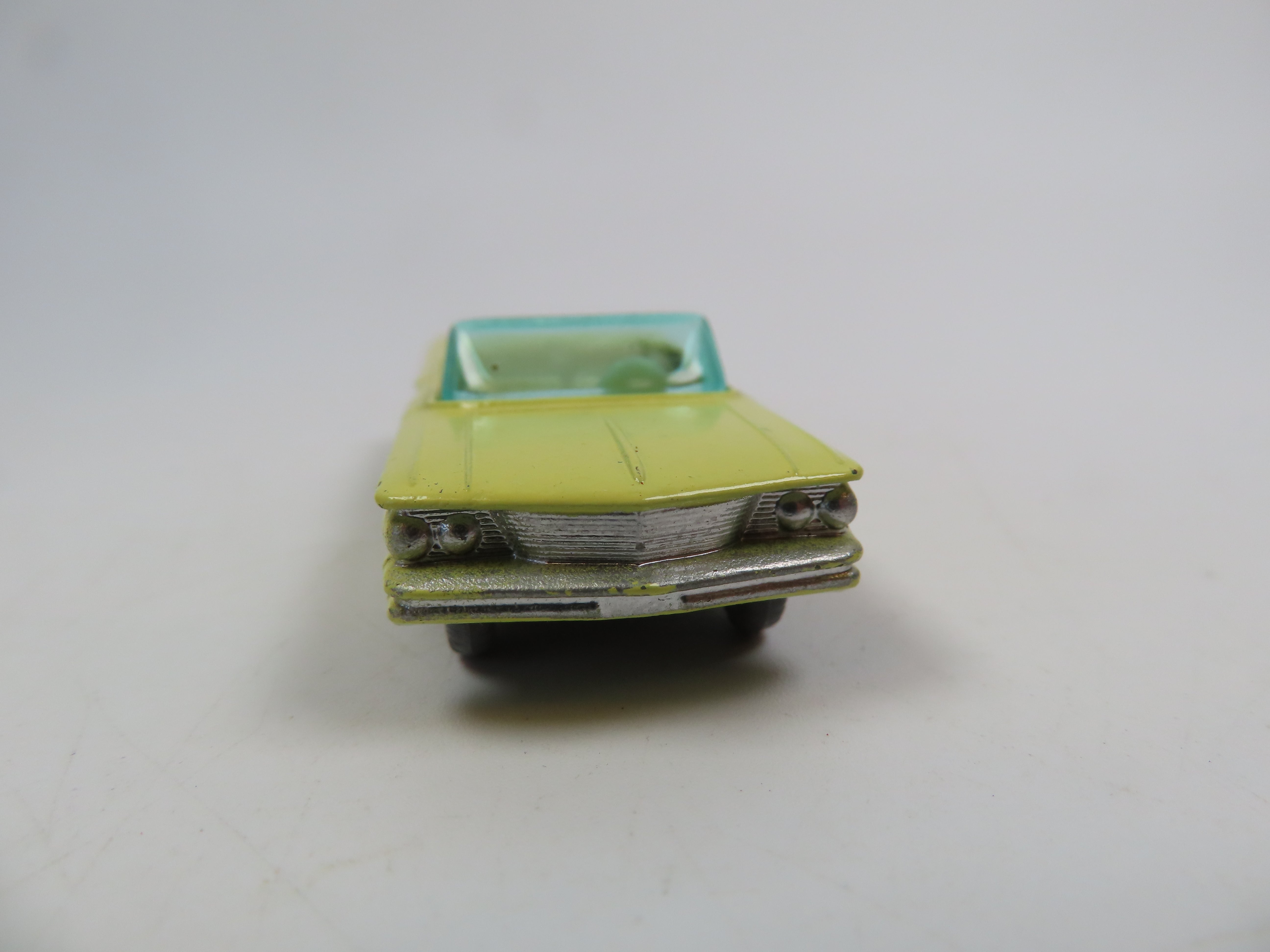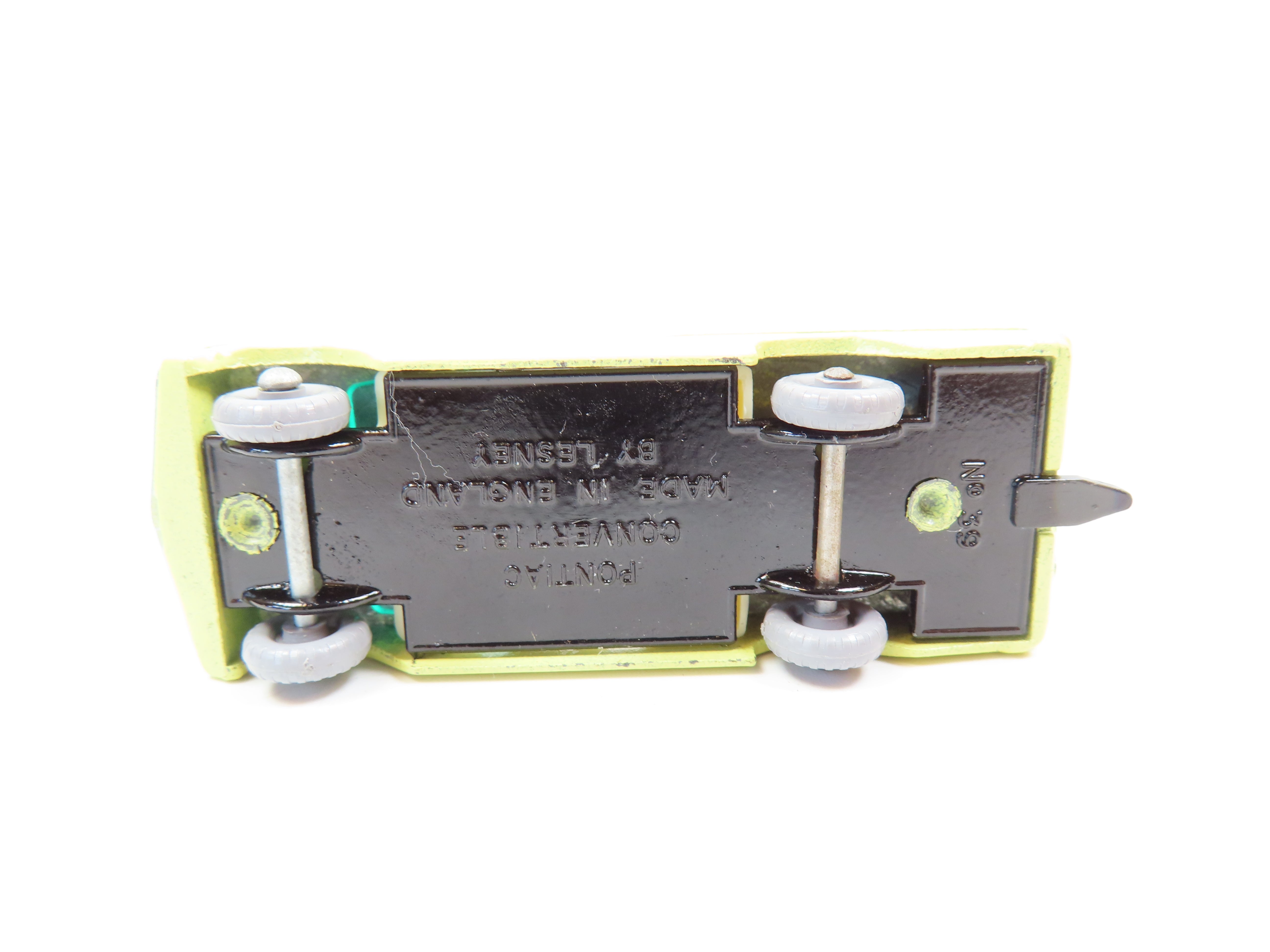 Matchbox No.39 Pontiac Convertible in light yellow, with green windscreen and black painted baseplate and tow hook.