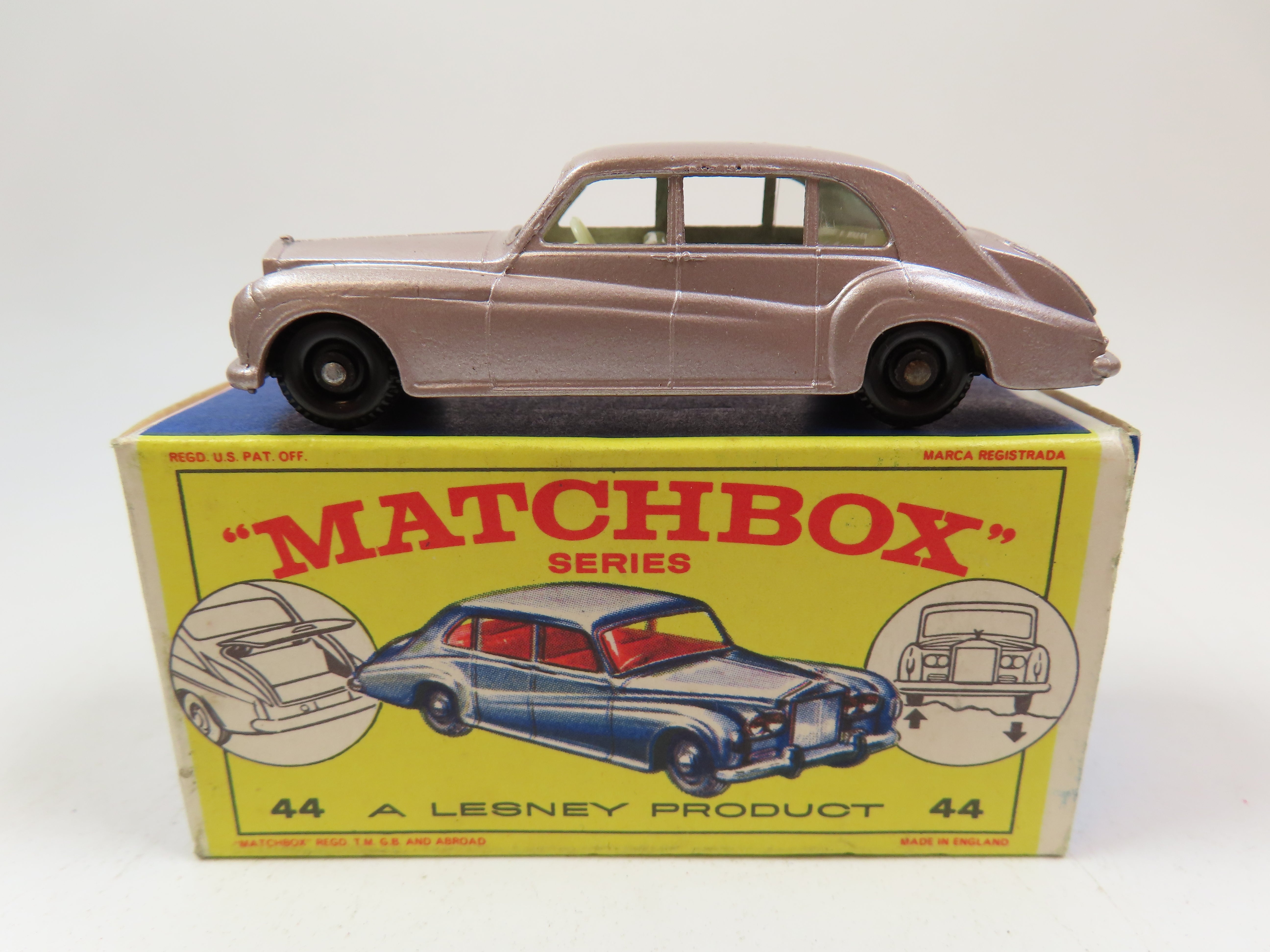 Matchbox No.44 Rolls-Royce Phantom V in a lovely metallic pinkish grey colour, with black plastic wheels.