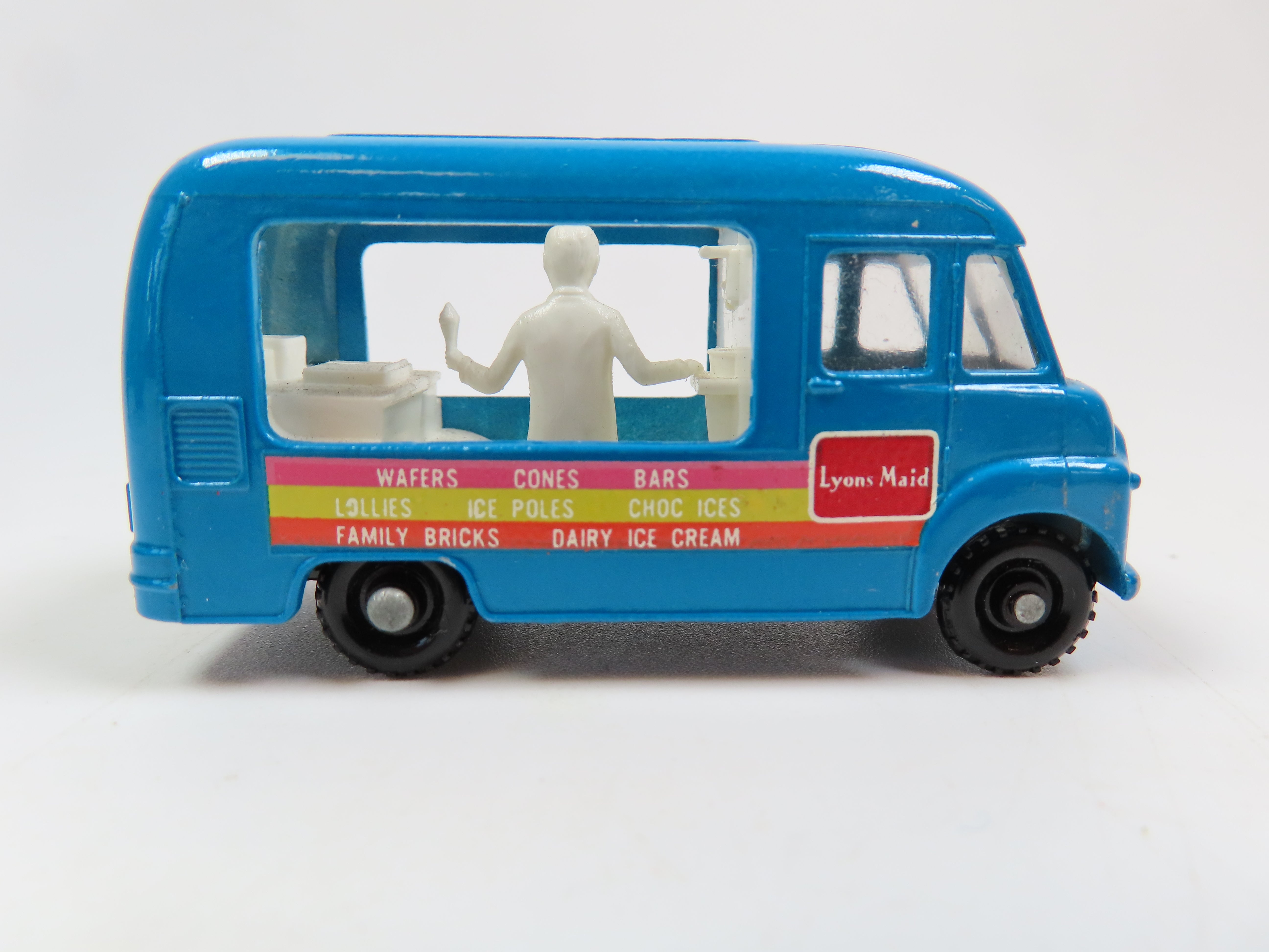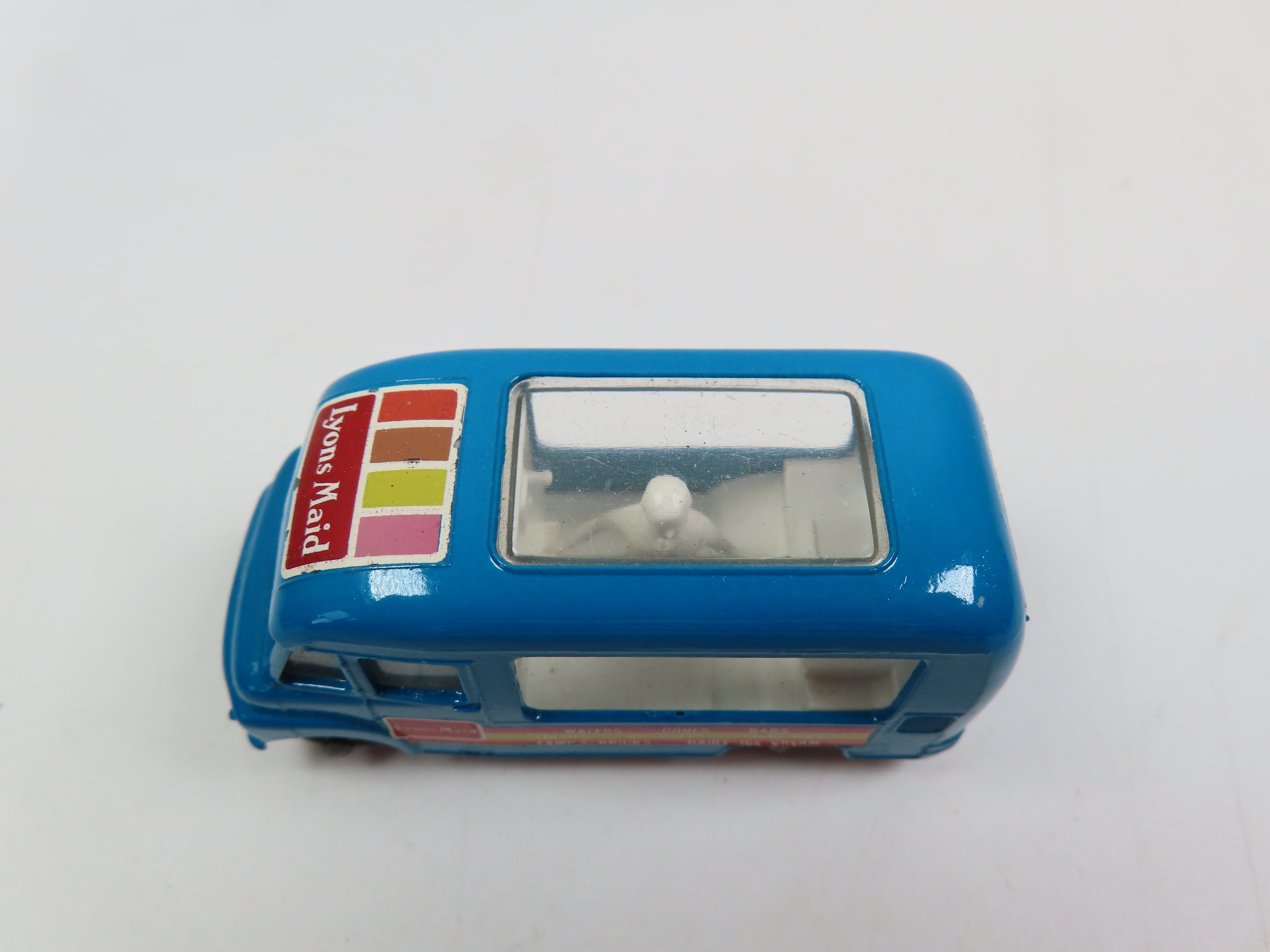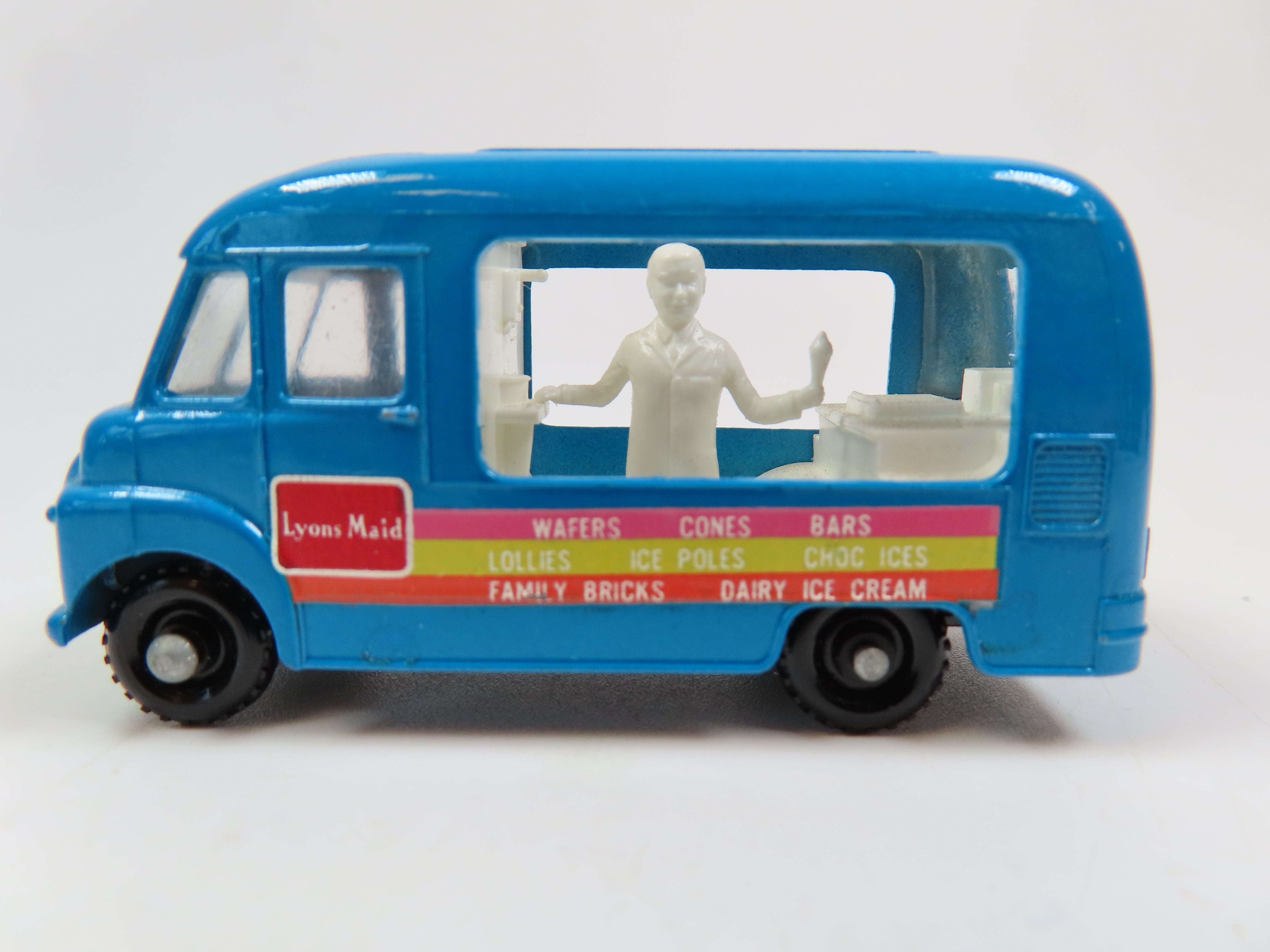 Matchbox No.47 Commer Ice Cream Van in a lovely blue colour, with various 'Lyons Maid' decals and plastic figure to the interior.