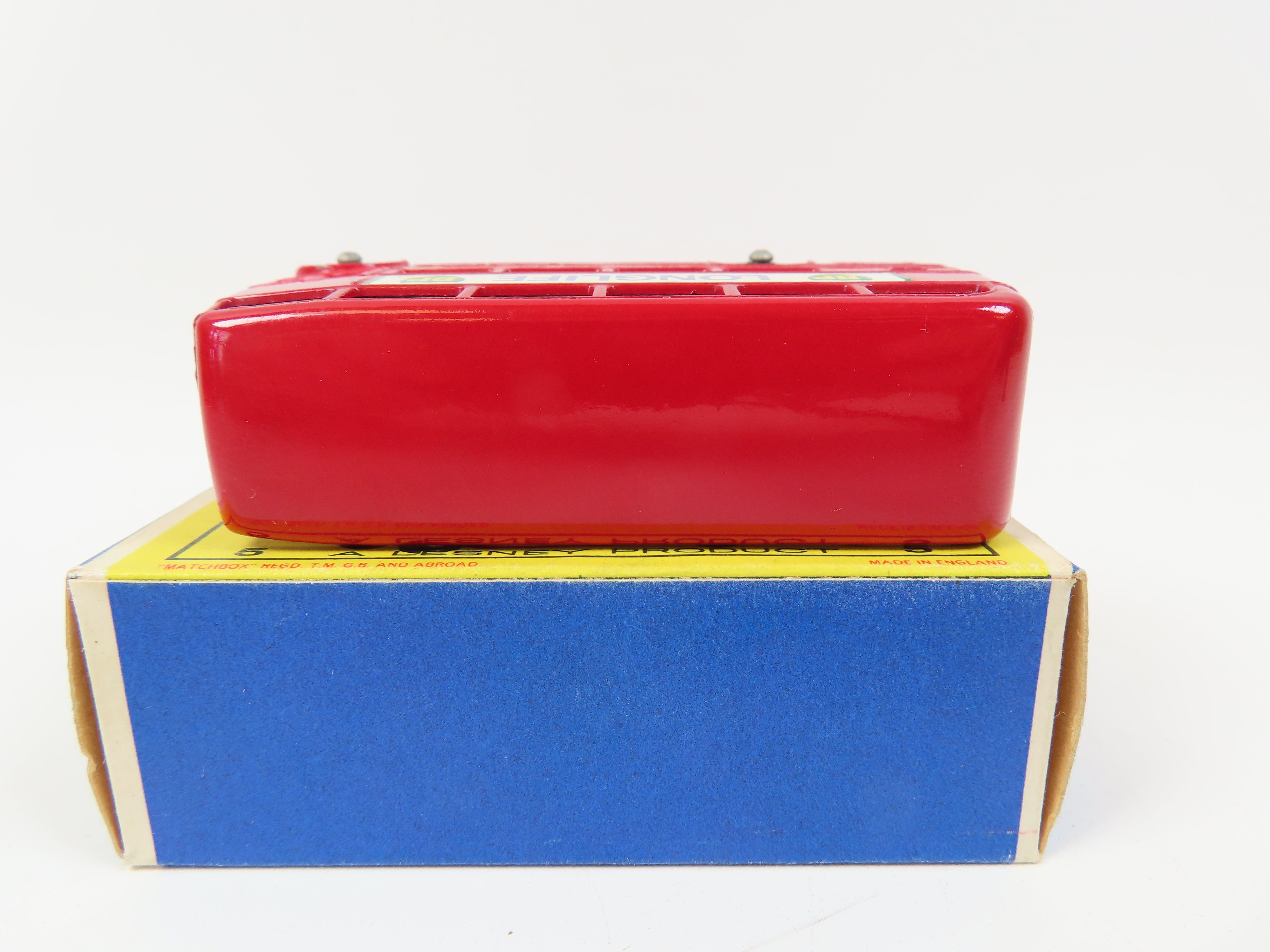 Matchbox No.5 London Bus in bright red, with 'BP Longlife' decals to each side.