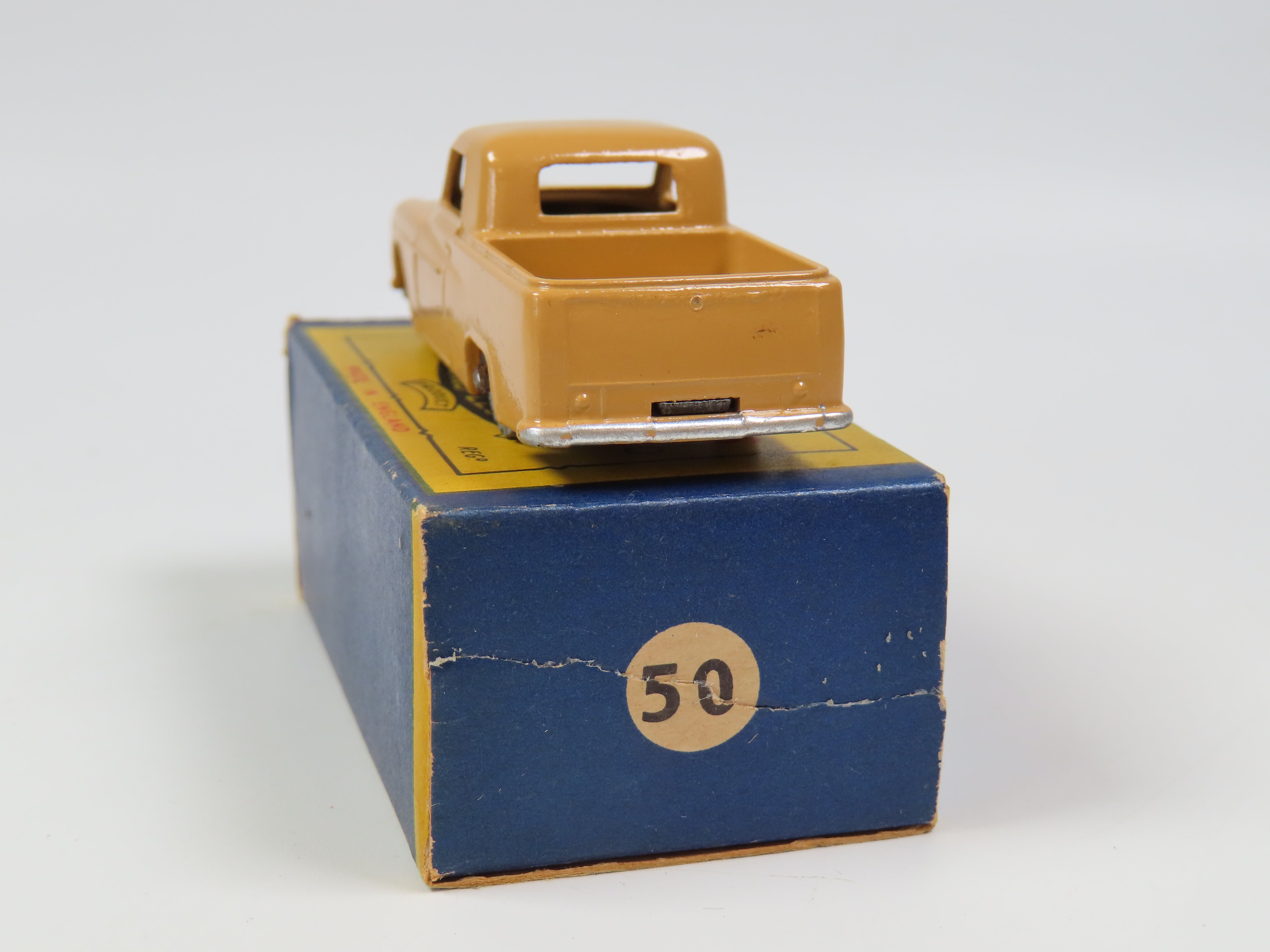 Matchbox No.50 Commer Pick-Up MK VIII in tan with silver painted grille and bumpers and grey metal wheels.