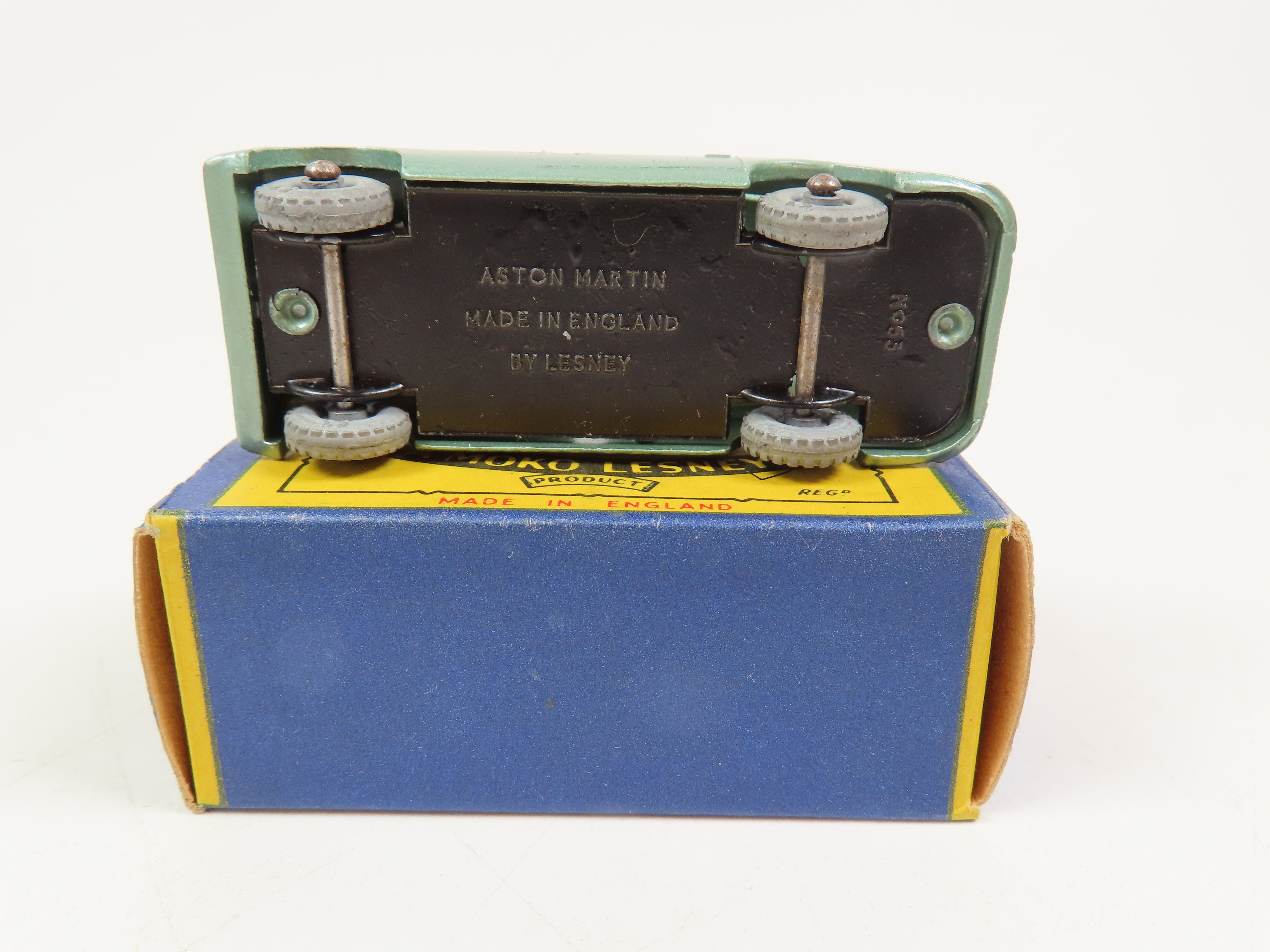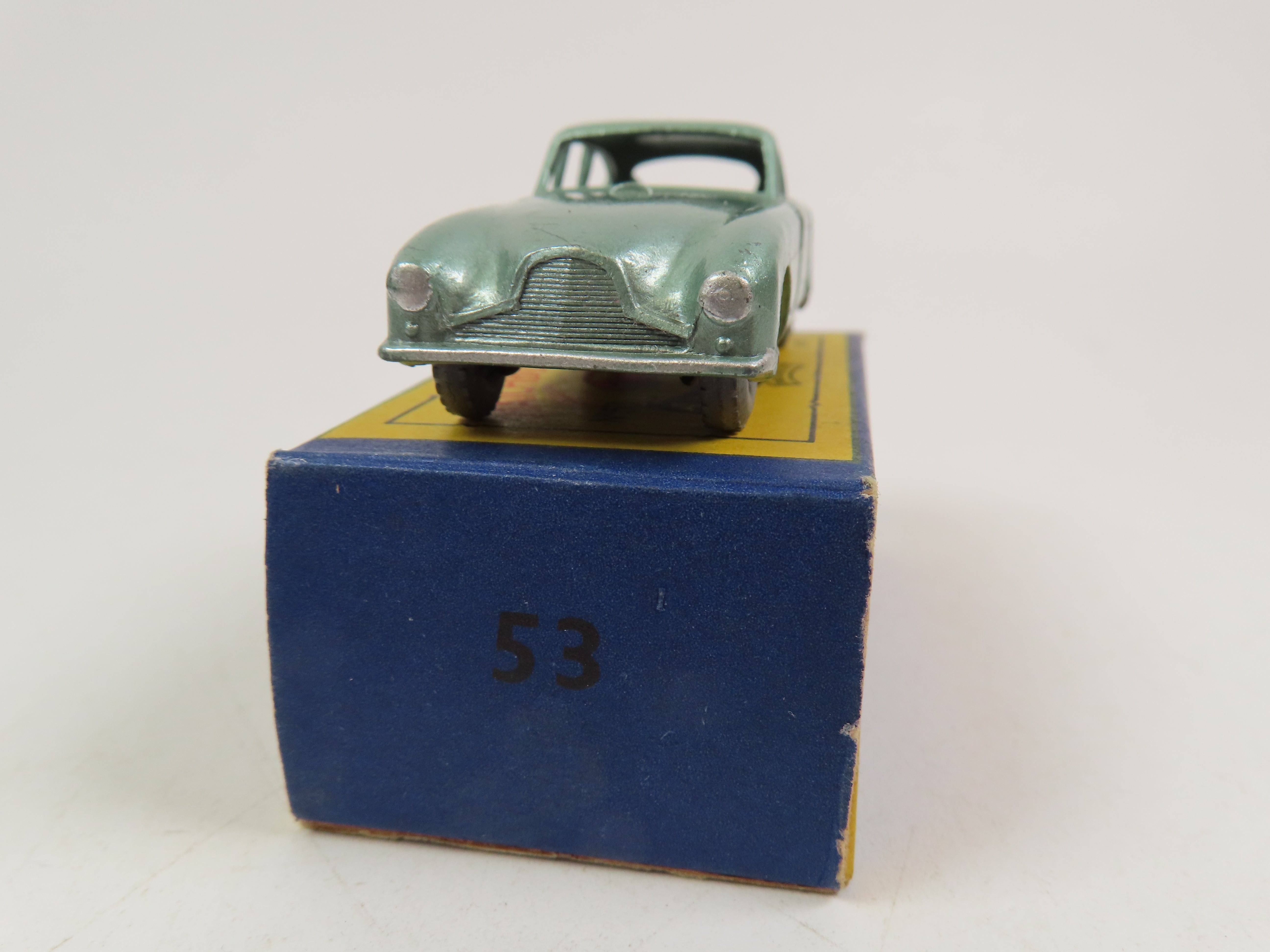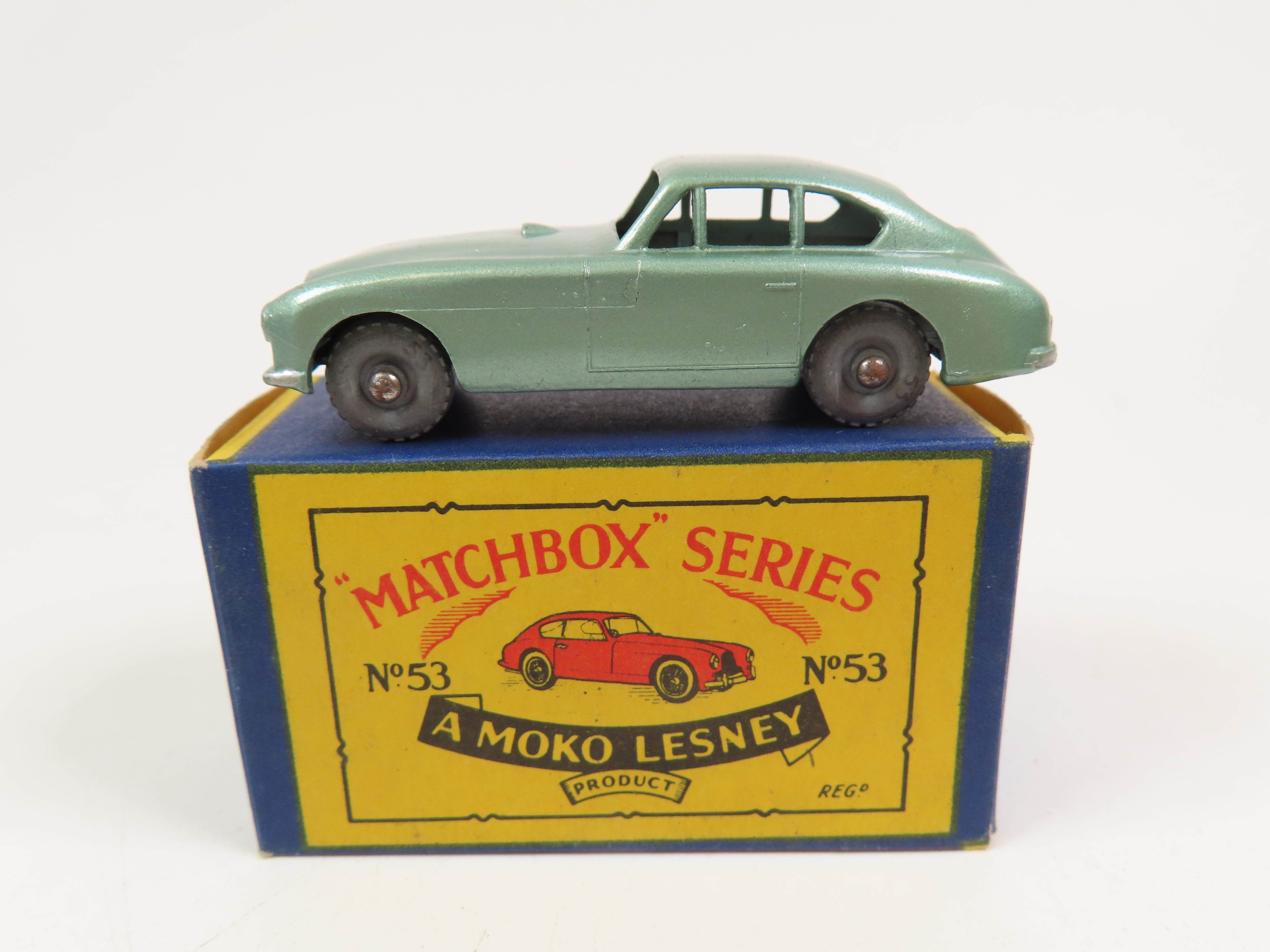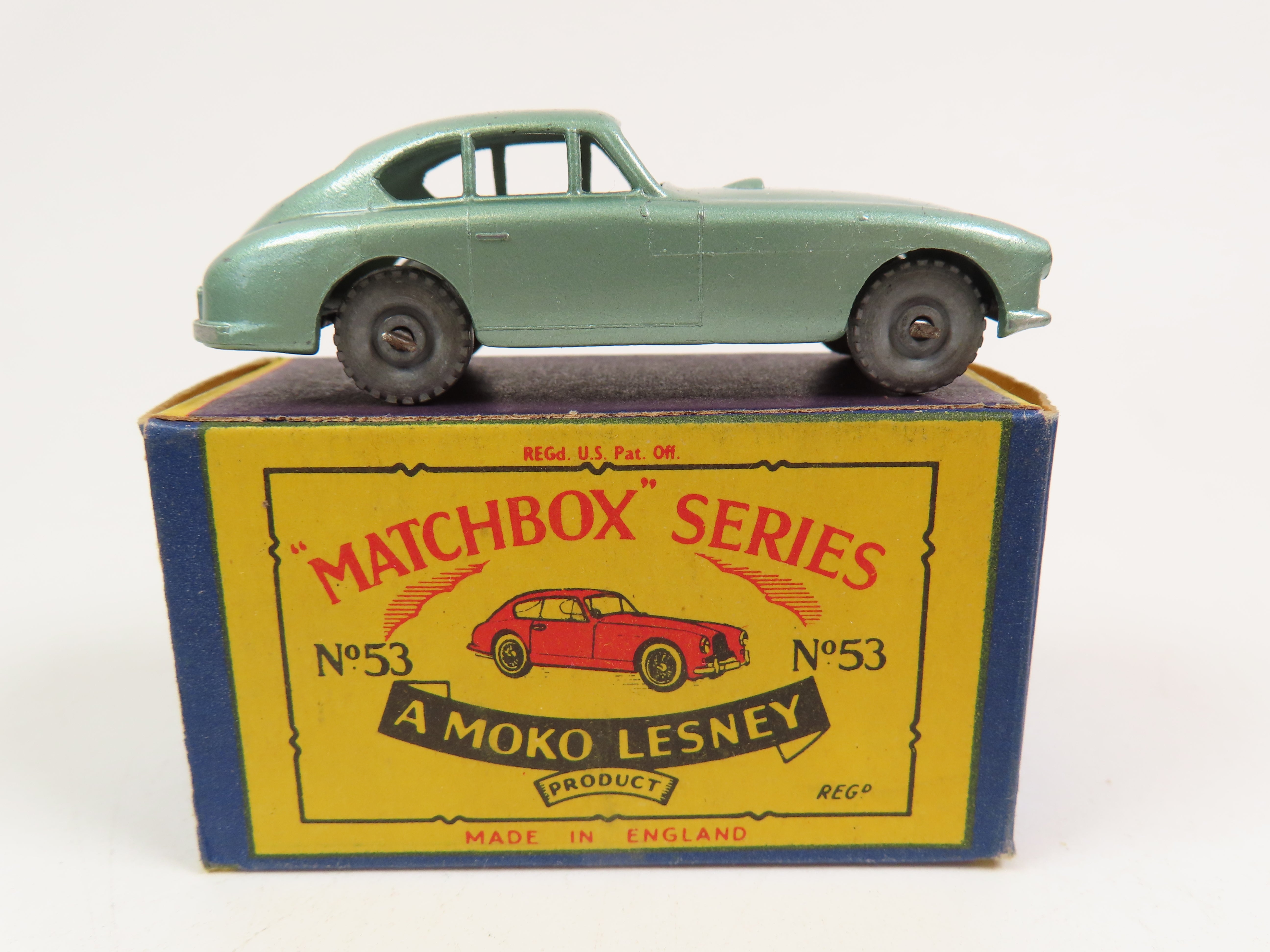 Matchbox No.53 Aston Martin DB2 Saloon in a lovely light metallic green colour with metal wheels.