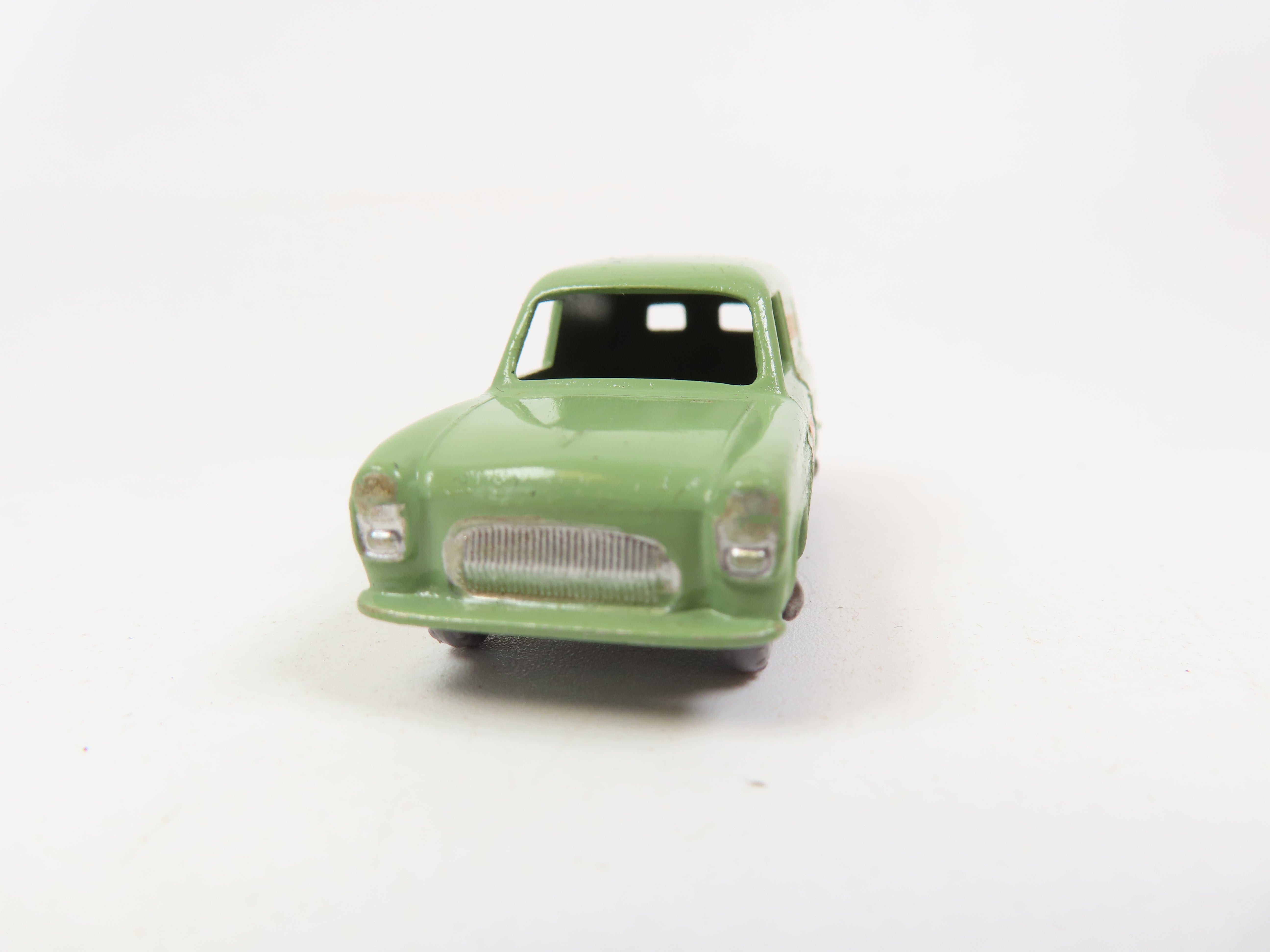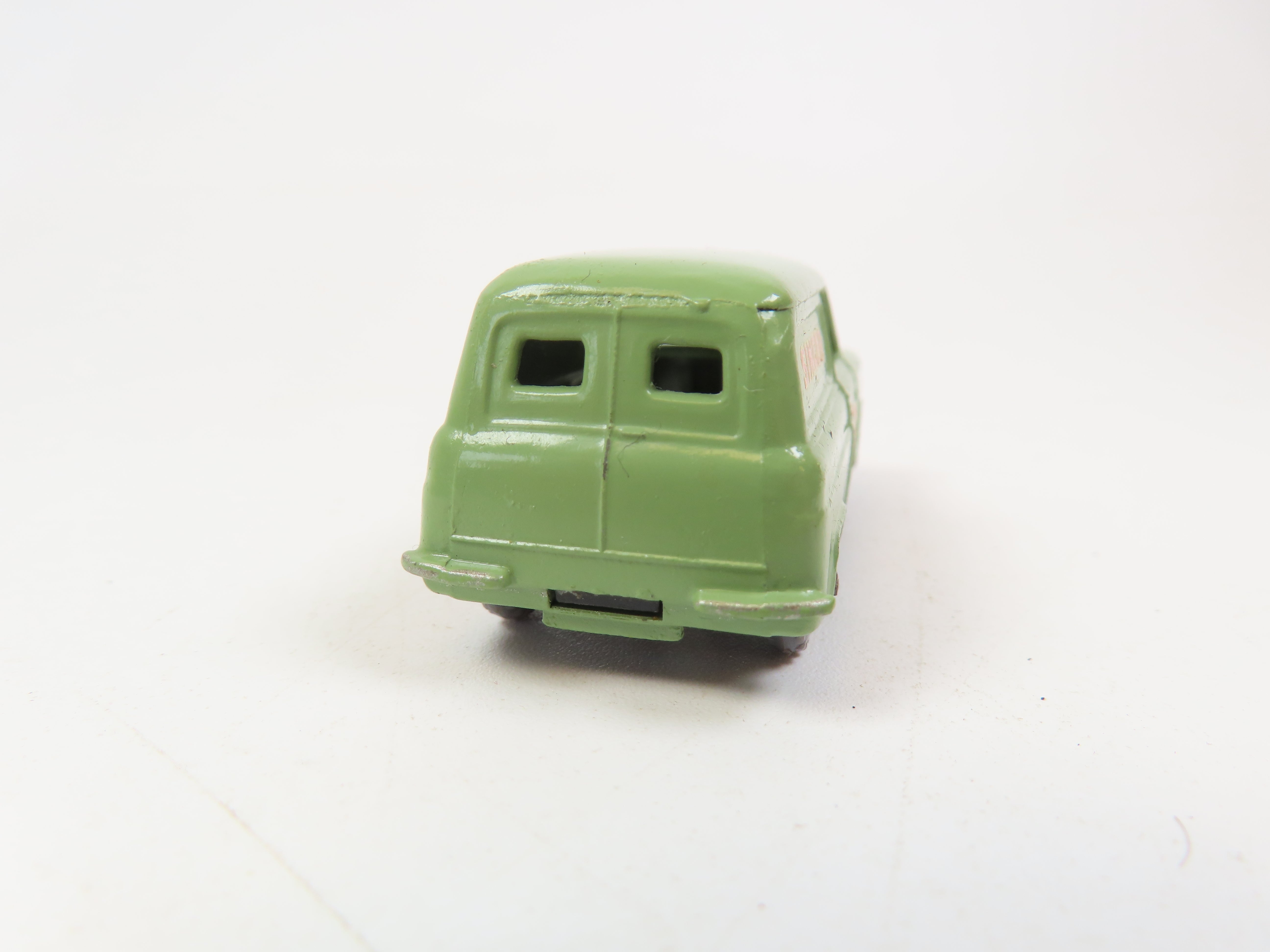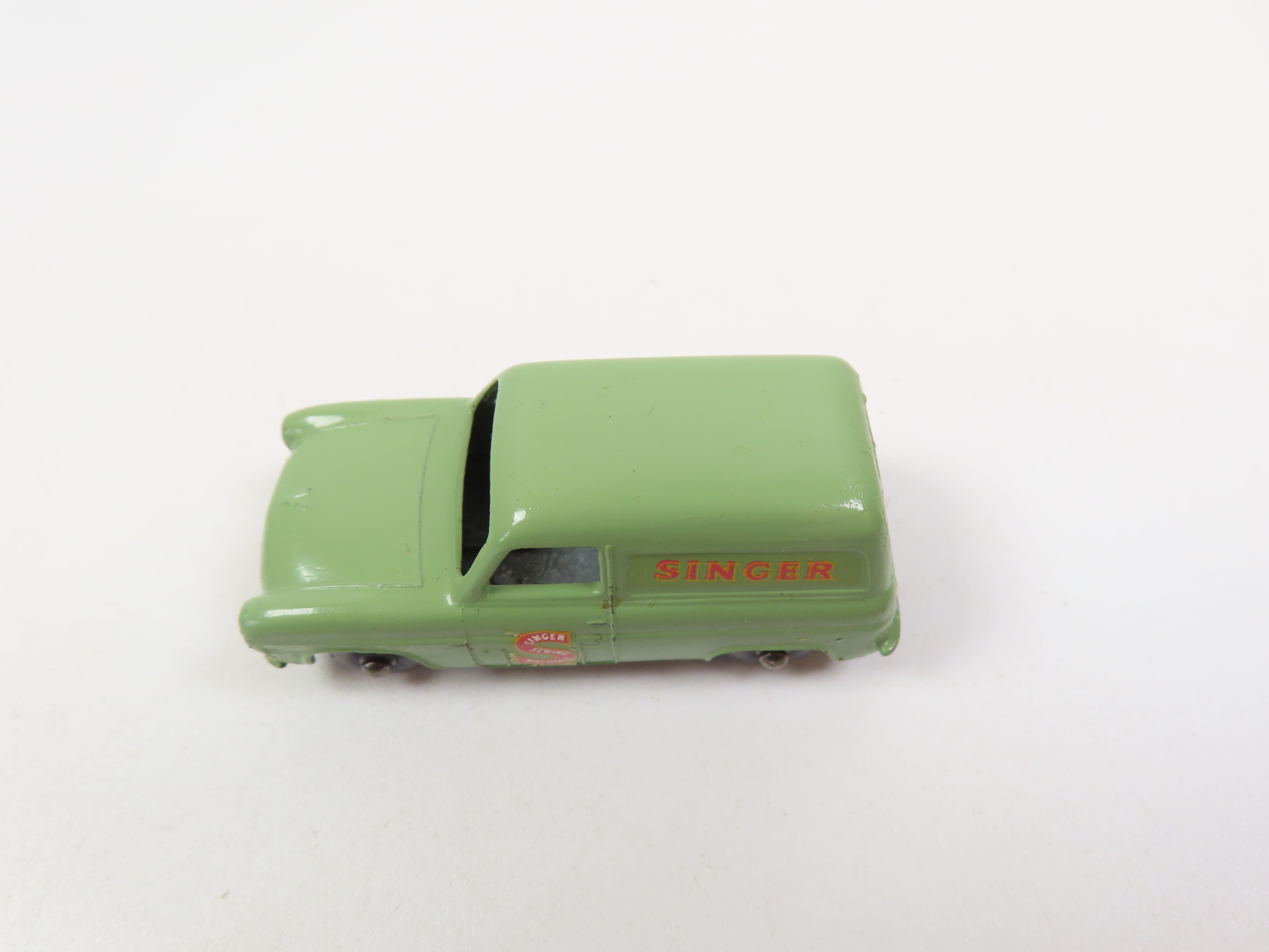 Matchbox No. 59 Ford Thames Van in light green, with grey plastic wheels and with 'Singer' decals to each side.