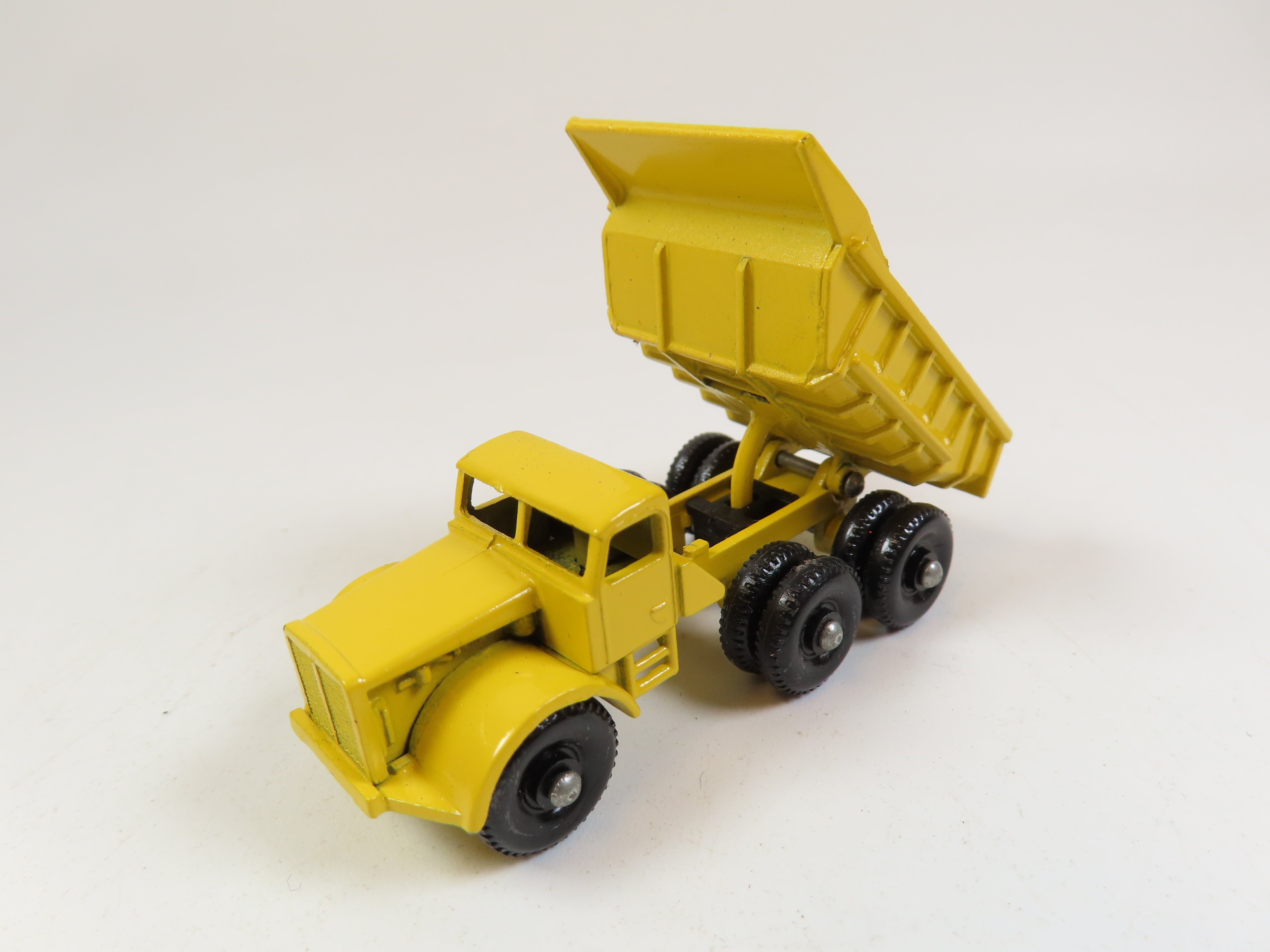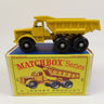 Matchbox No.6 Euclid Quarry Truck in yellow, with black plastic wheels.