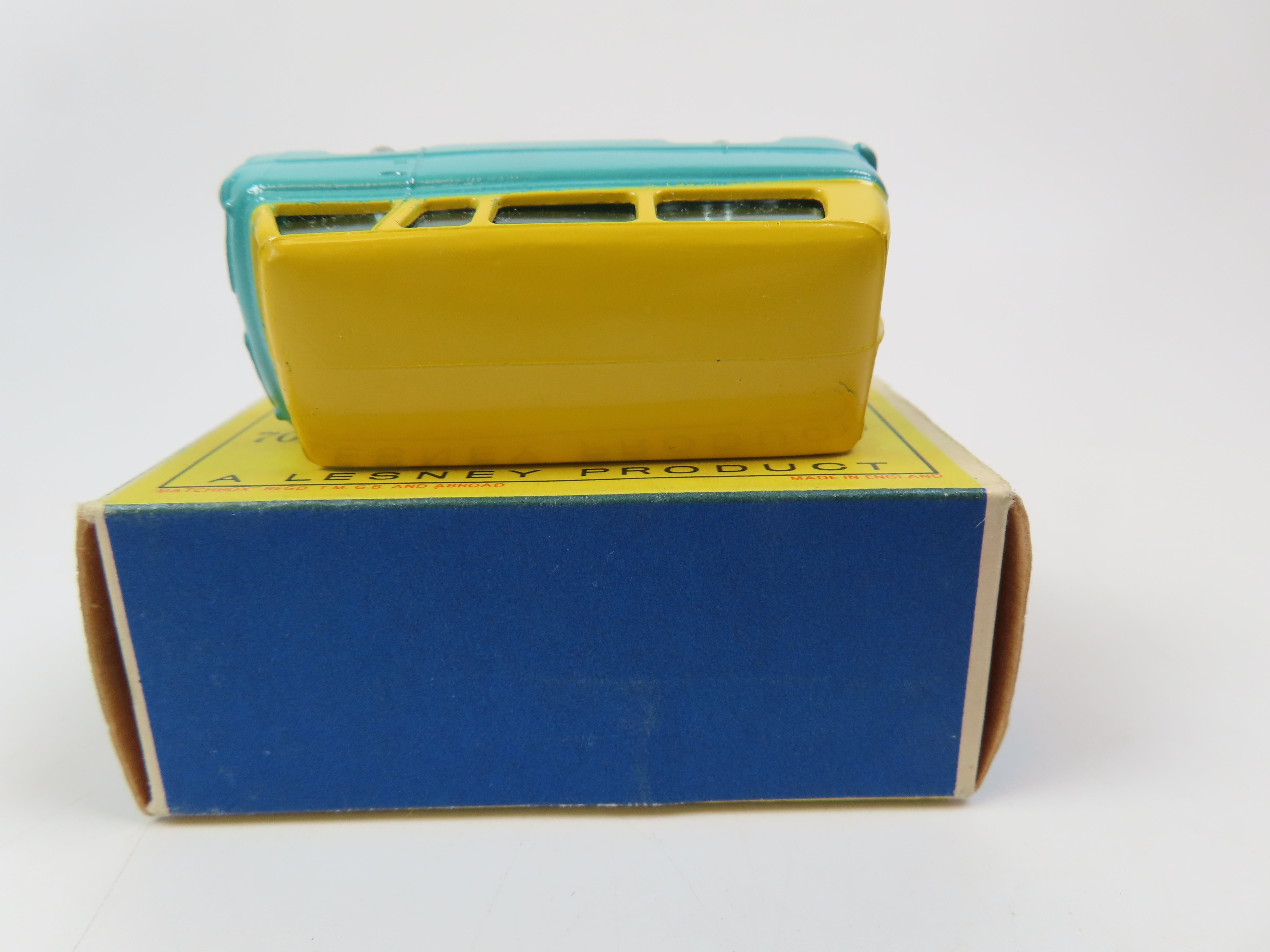 Matchbox No.70 Thames Estate Car with yellow upper body, green lower body and green tinted windows. Black plastic wheels.