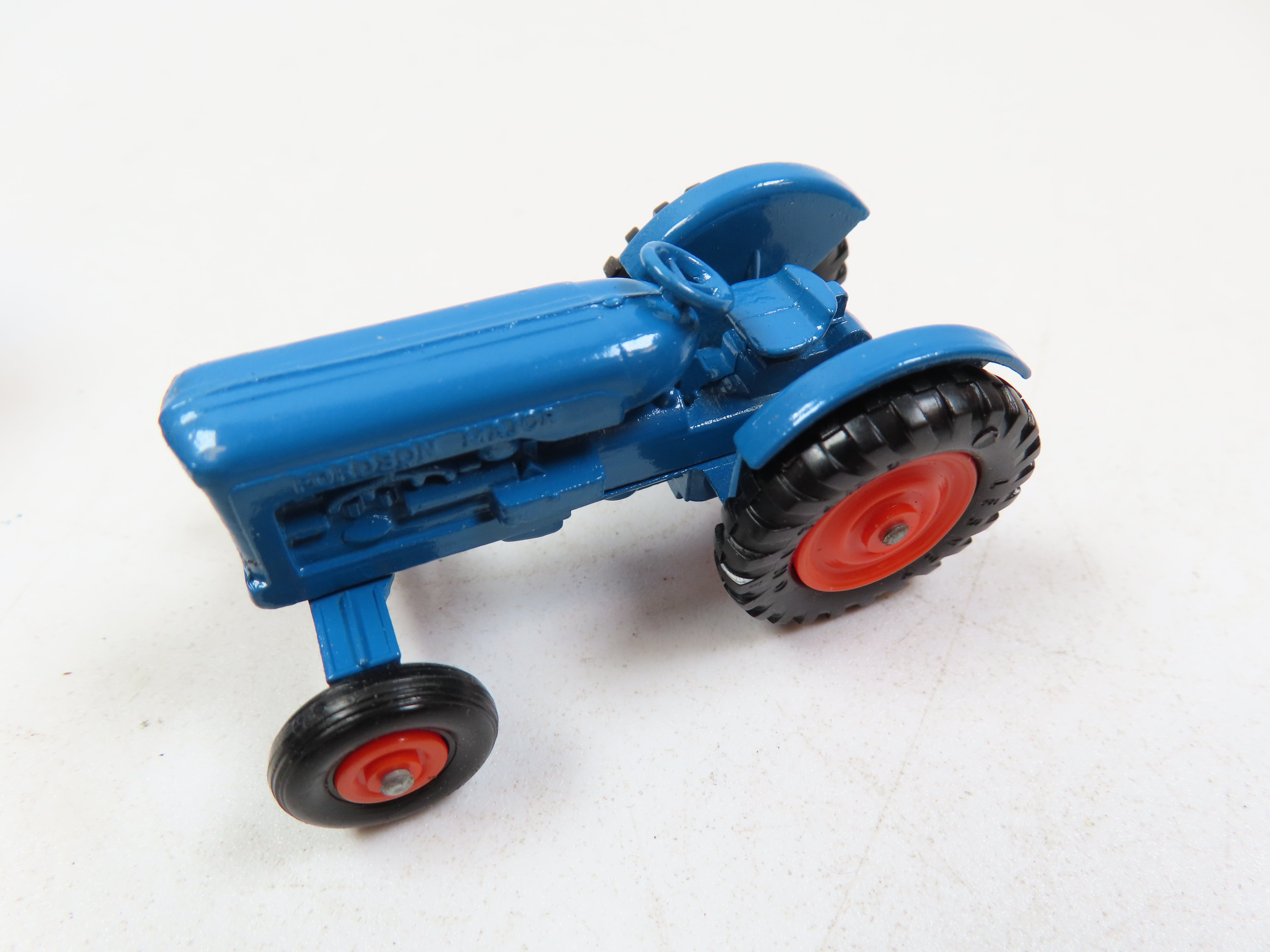 Matchbox No.72 Fordson Tractor in blue with red hubs and black plastic tyres.