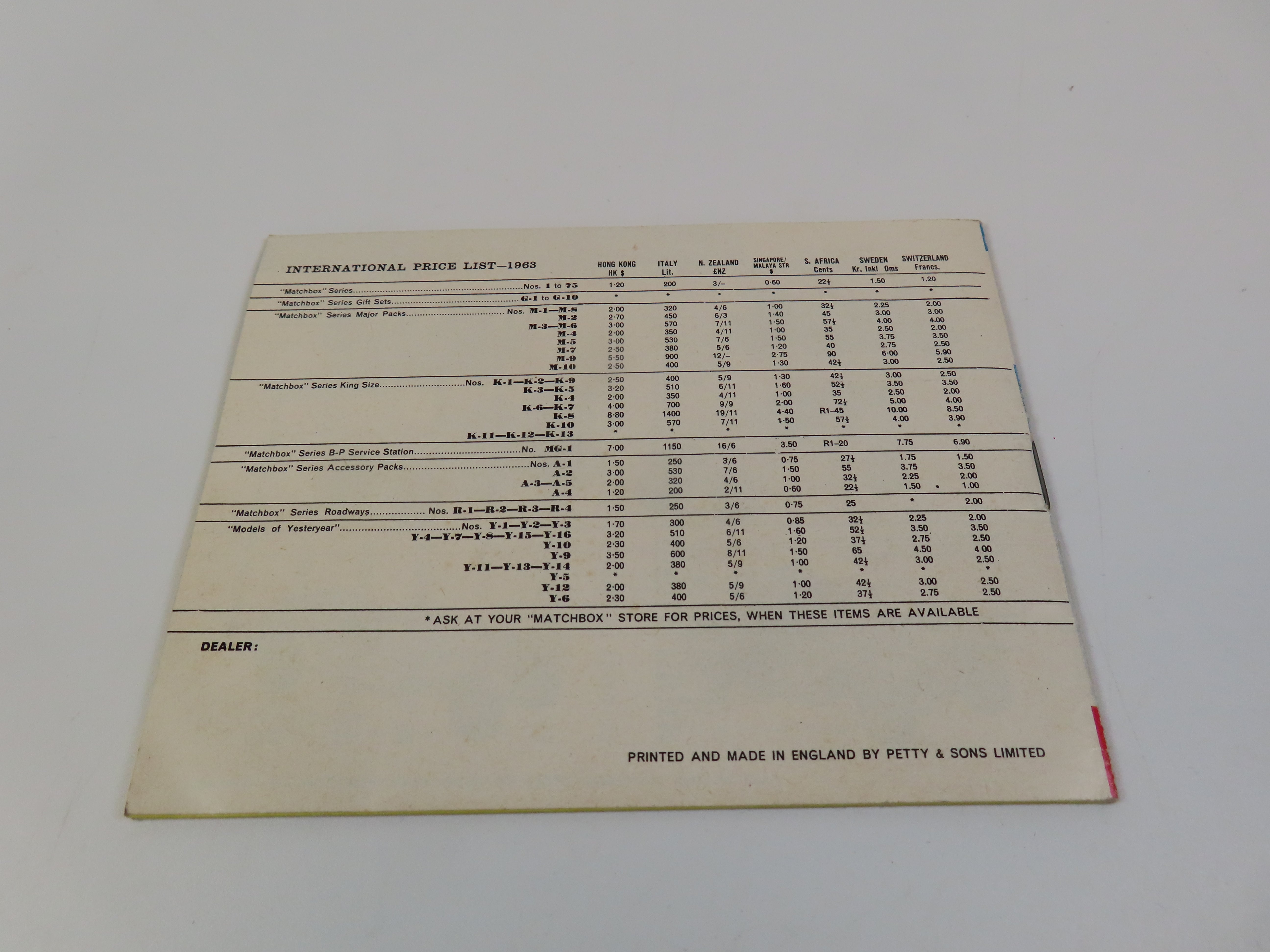 Matchbox Series International Pocket Catalogue 1963 Edition. Has an original shop stamp to the front cover.