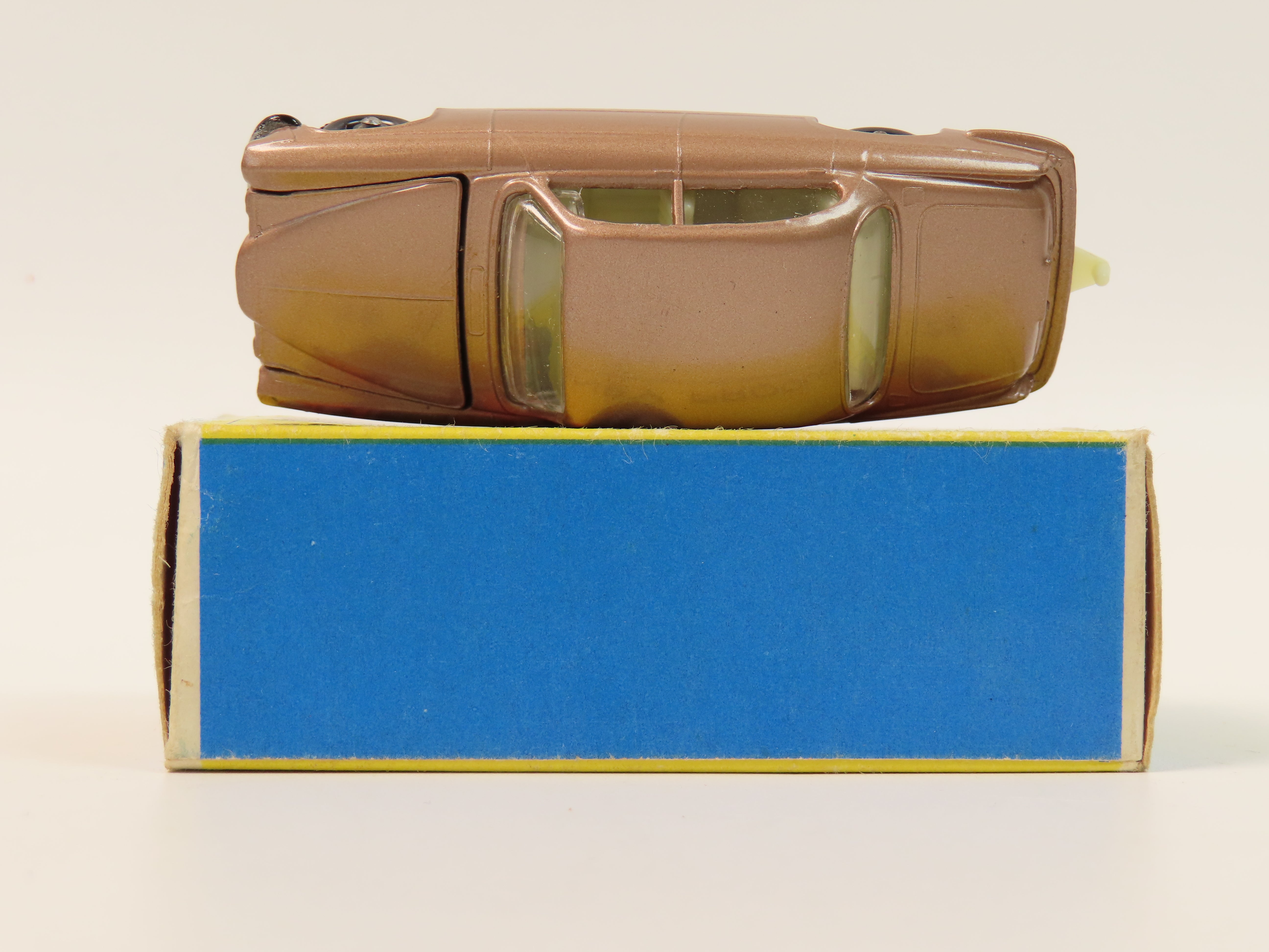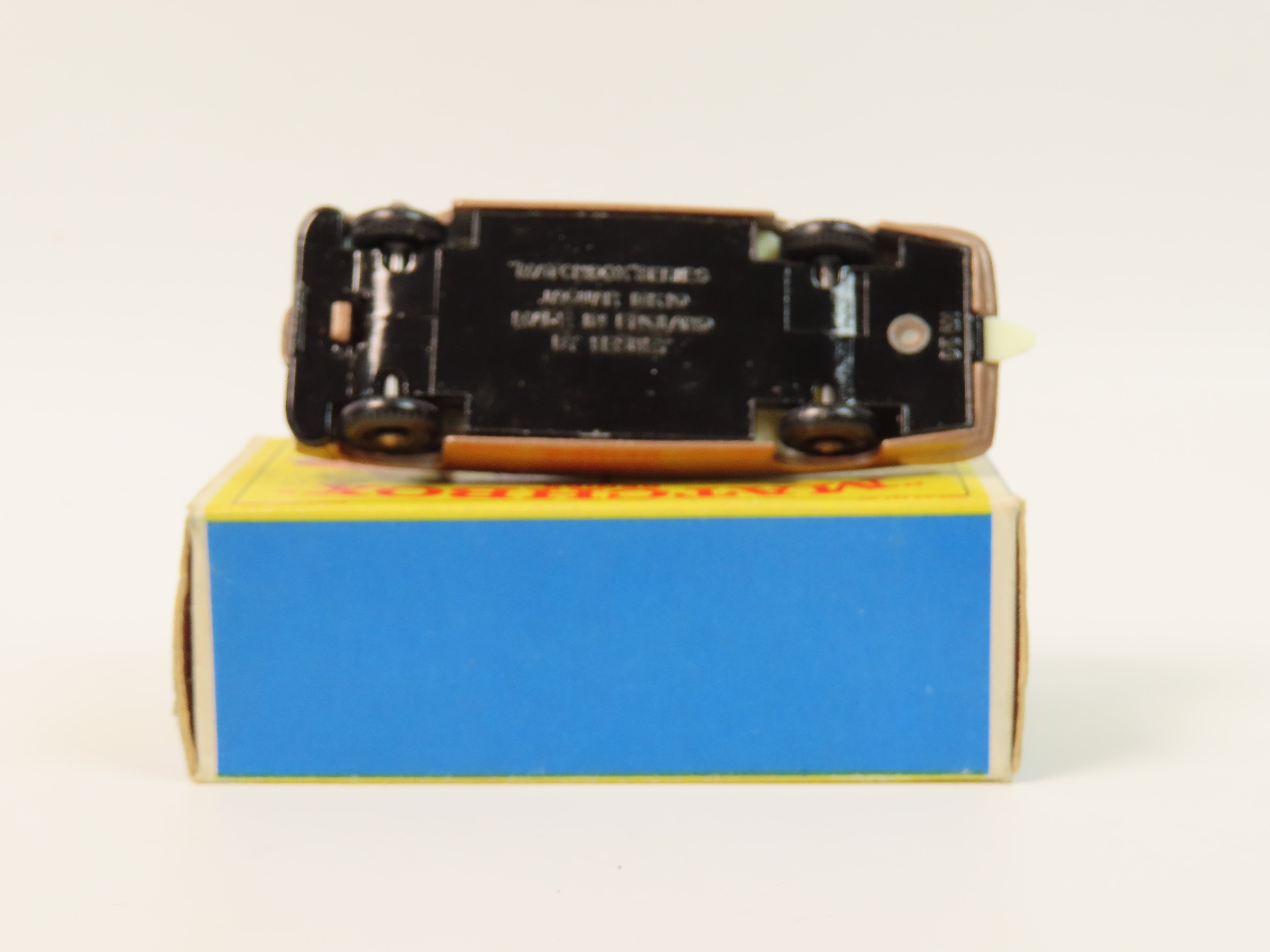 Matchbox Series No.28 Mark Ten Jaguar in a lovely metallic light brown with ivory interior and two hook.
