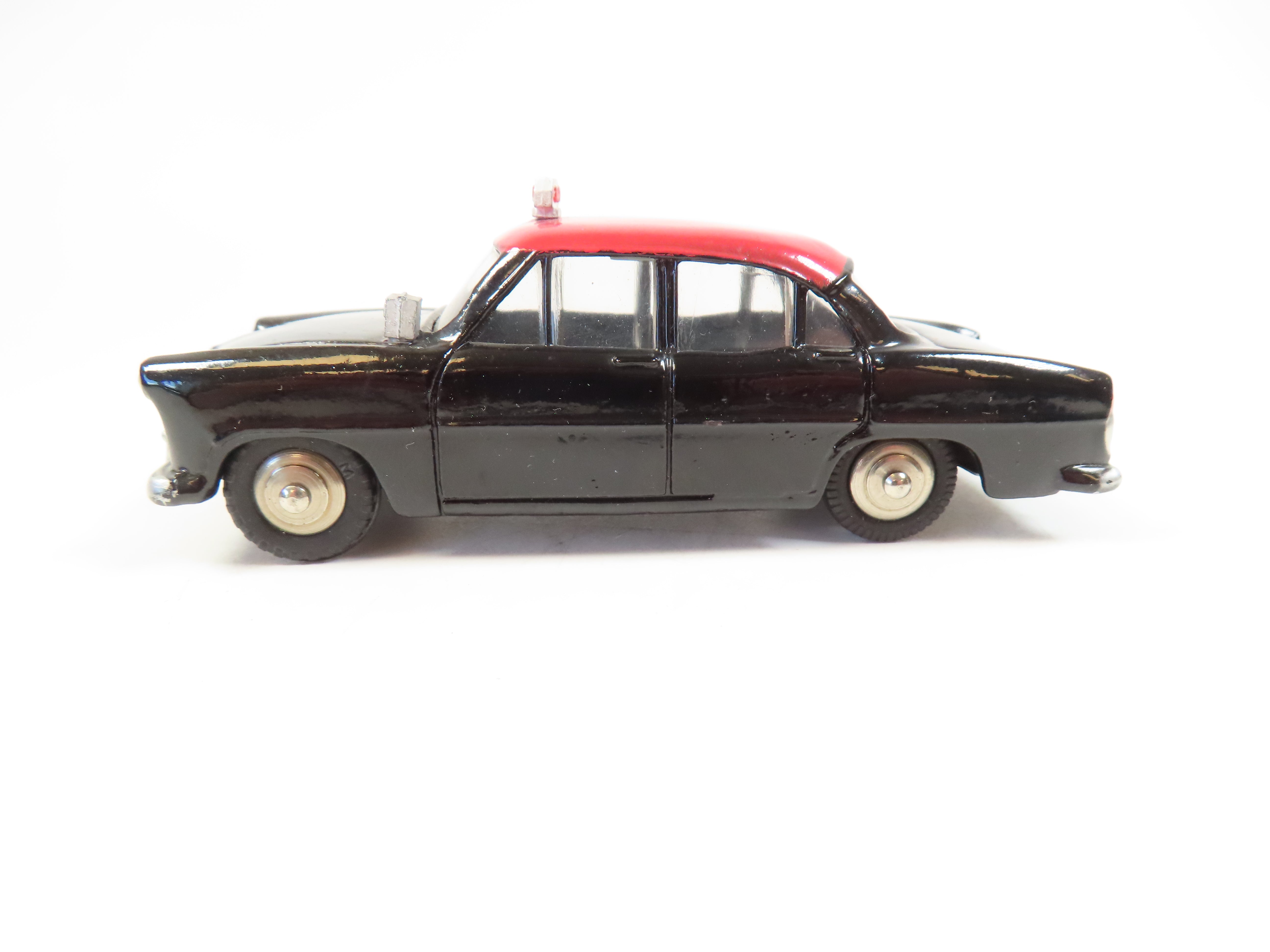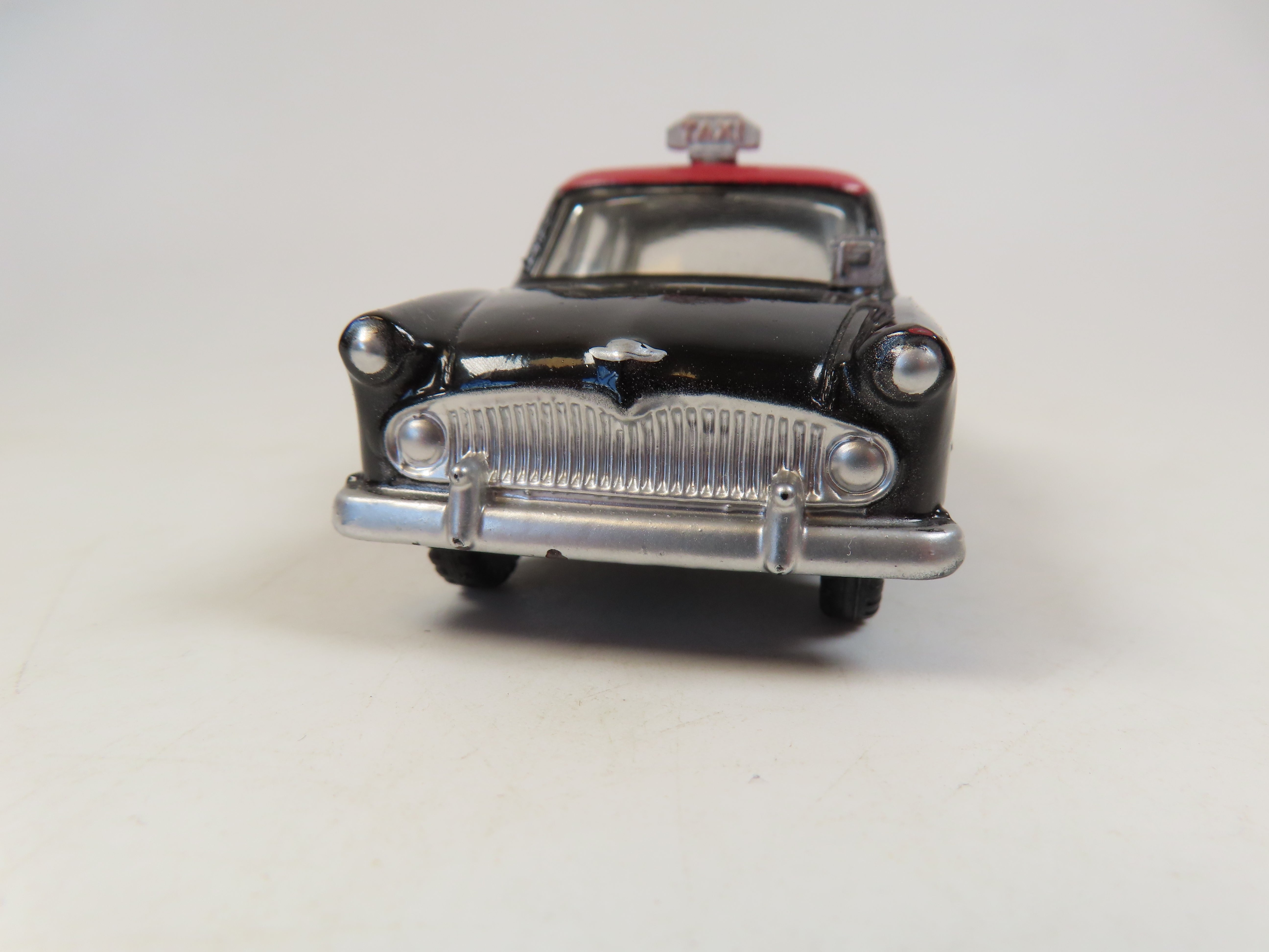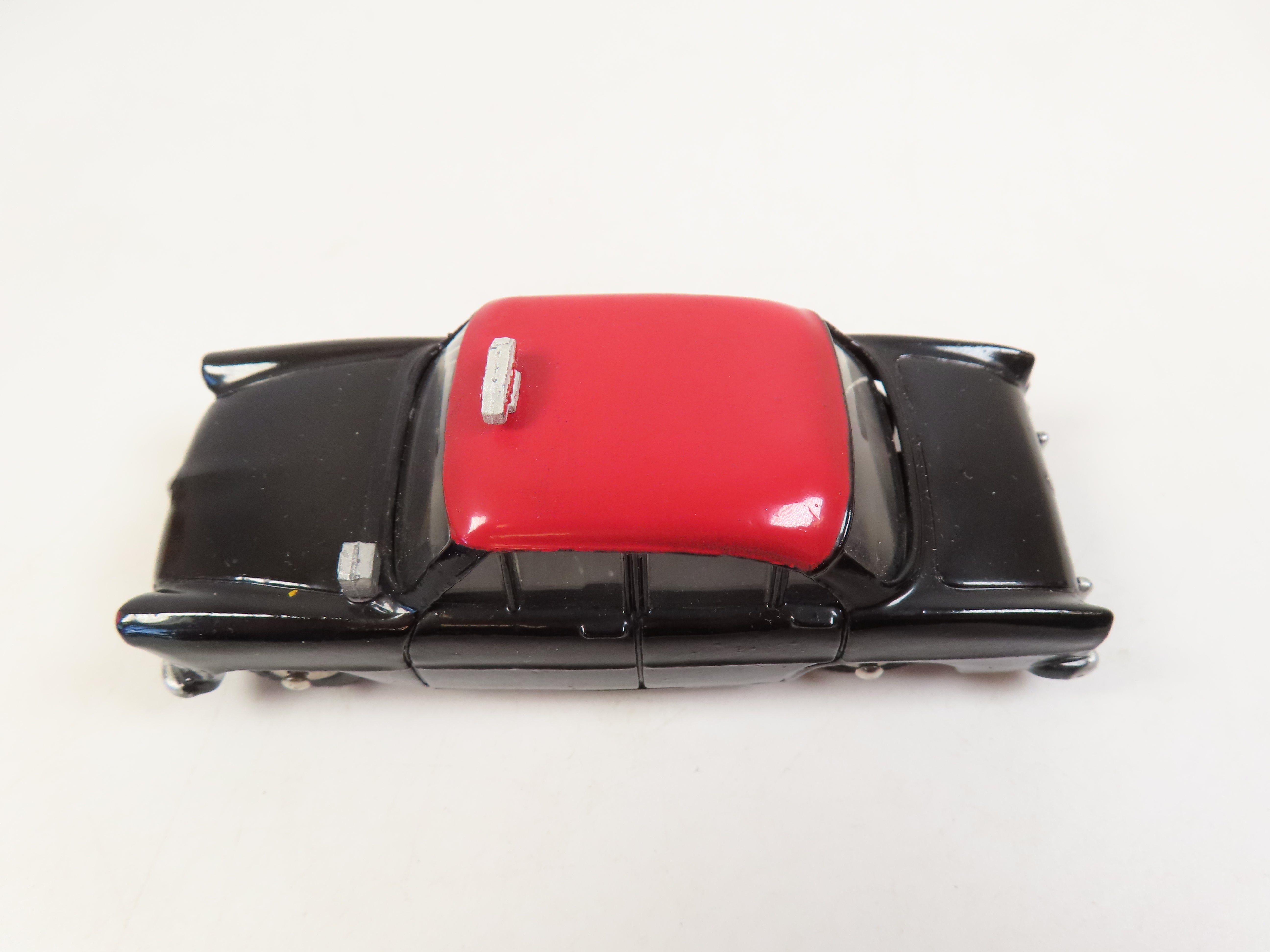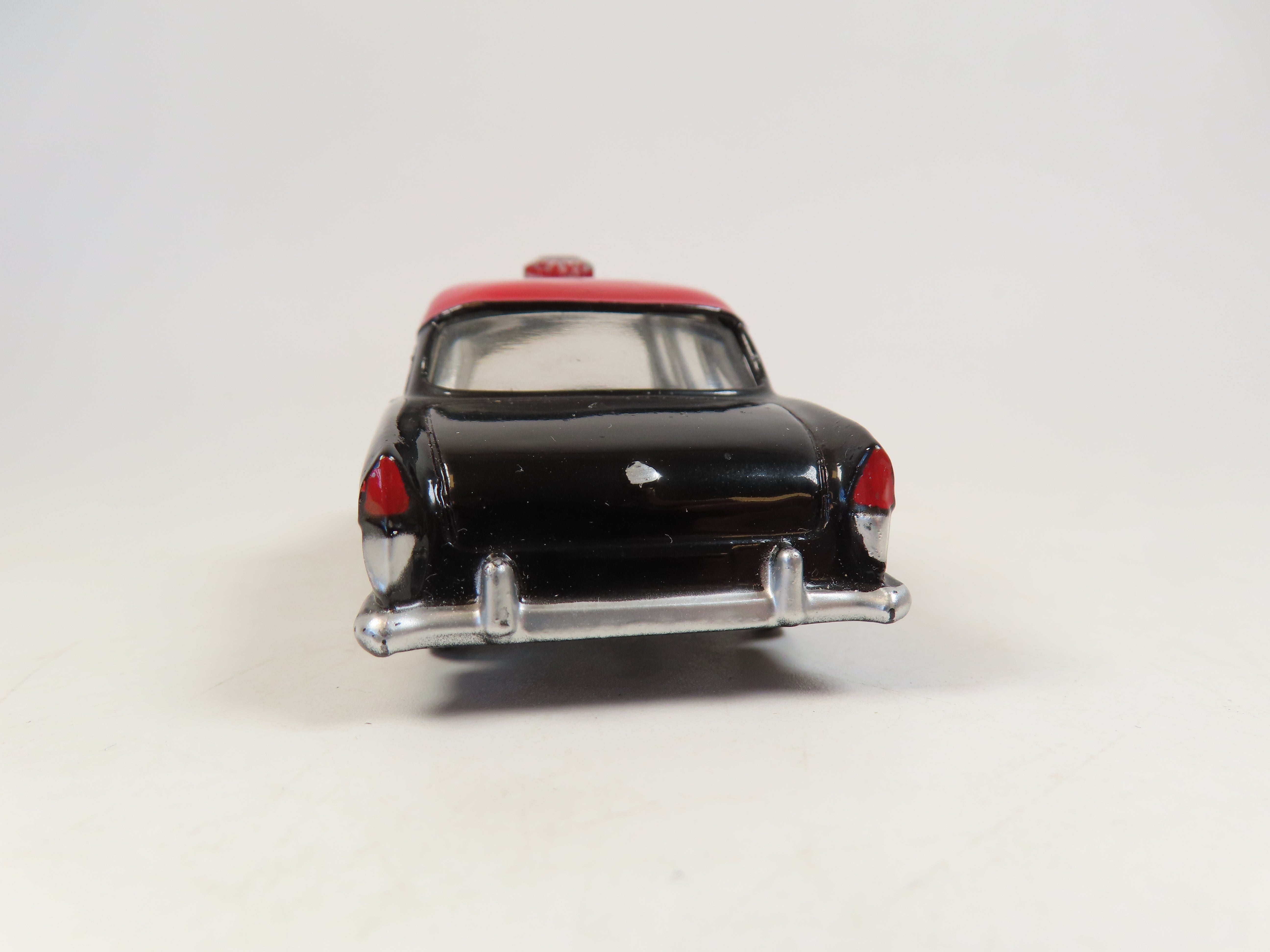 French Dinky 24ZT Simca Ariane Taxi in black, with a red roof with 'Taxi' header sign.