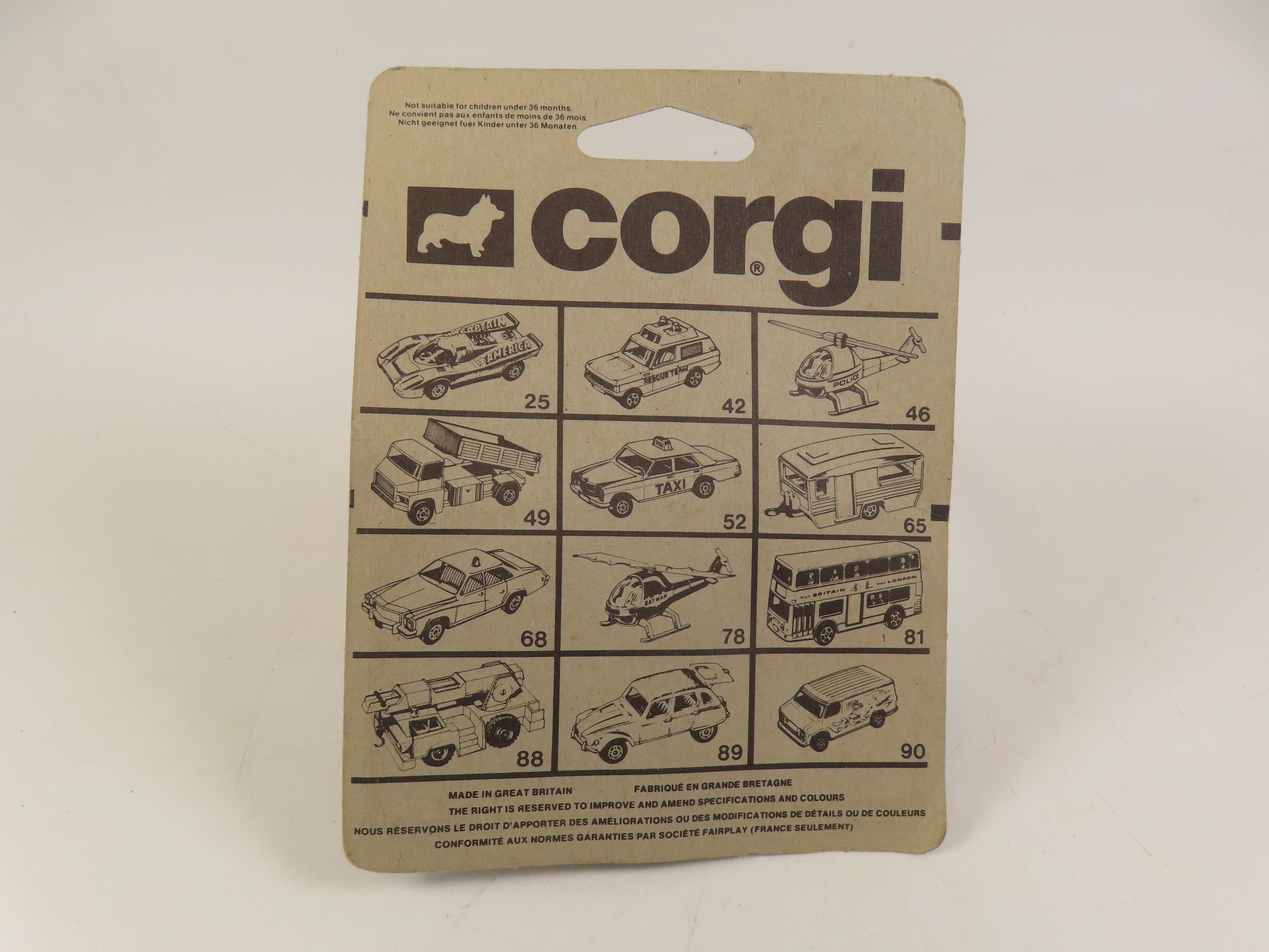 The card is original, complete and very near to 99% mint, There are a few light creases to the backing card and a little wear around the edges as well as an original price label to the front. The plastic display bubble is in excellent near perfect condition.
