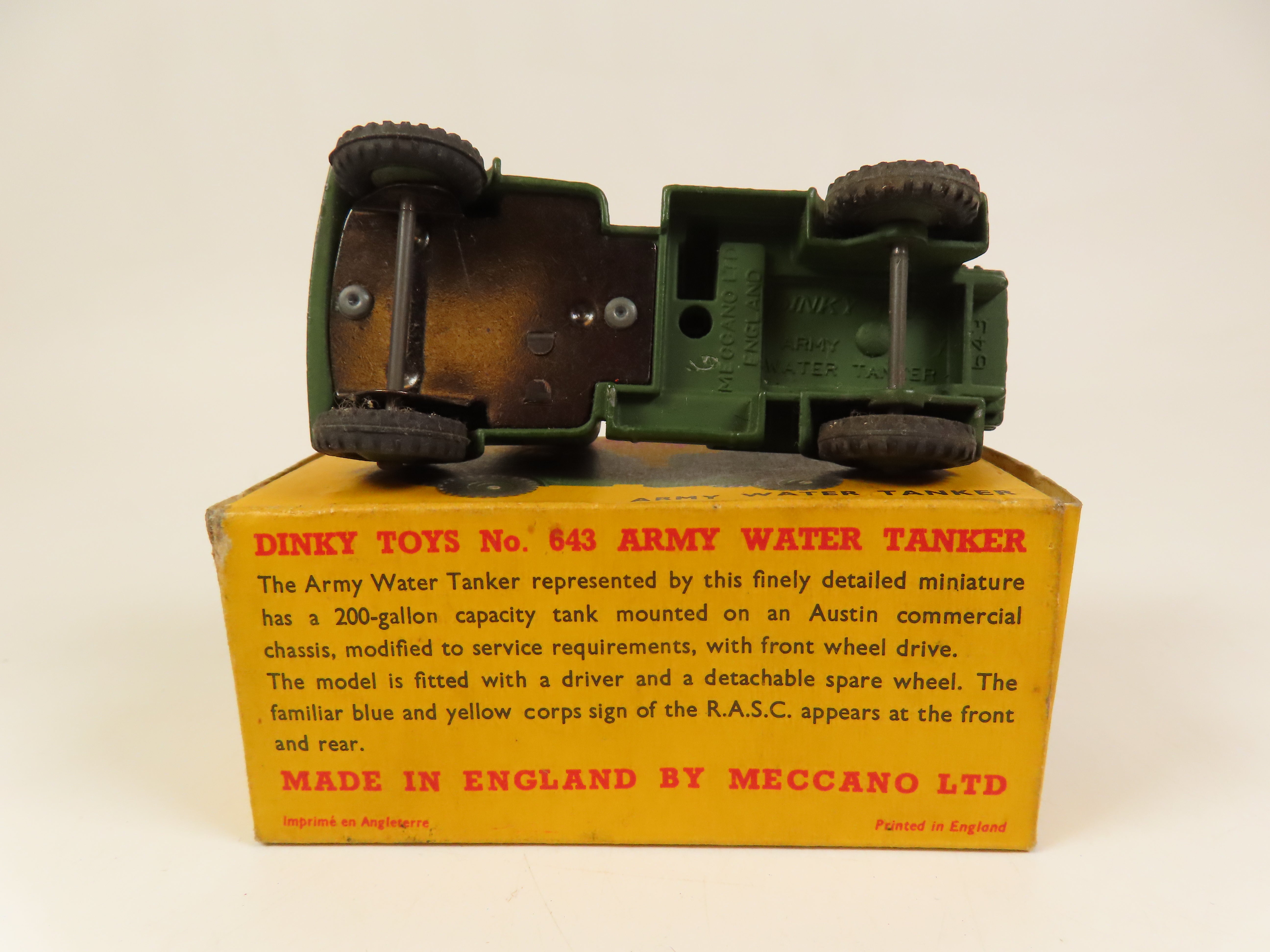 Dinky 643 Army Water Tanker in olive green, with emblem decals to the front and rear and driver figure.