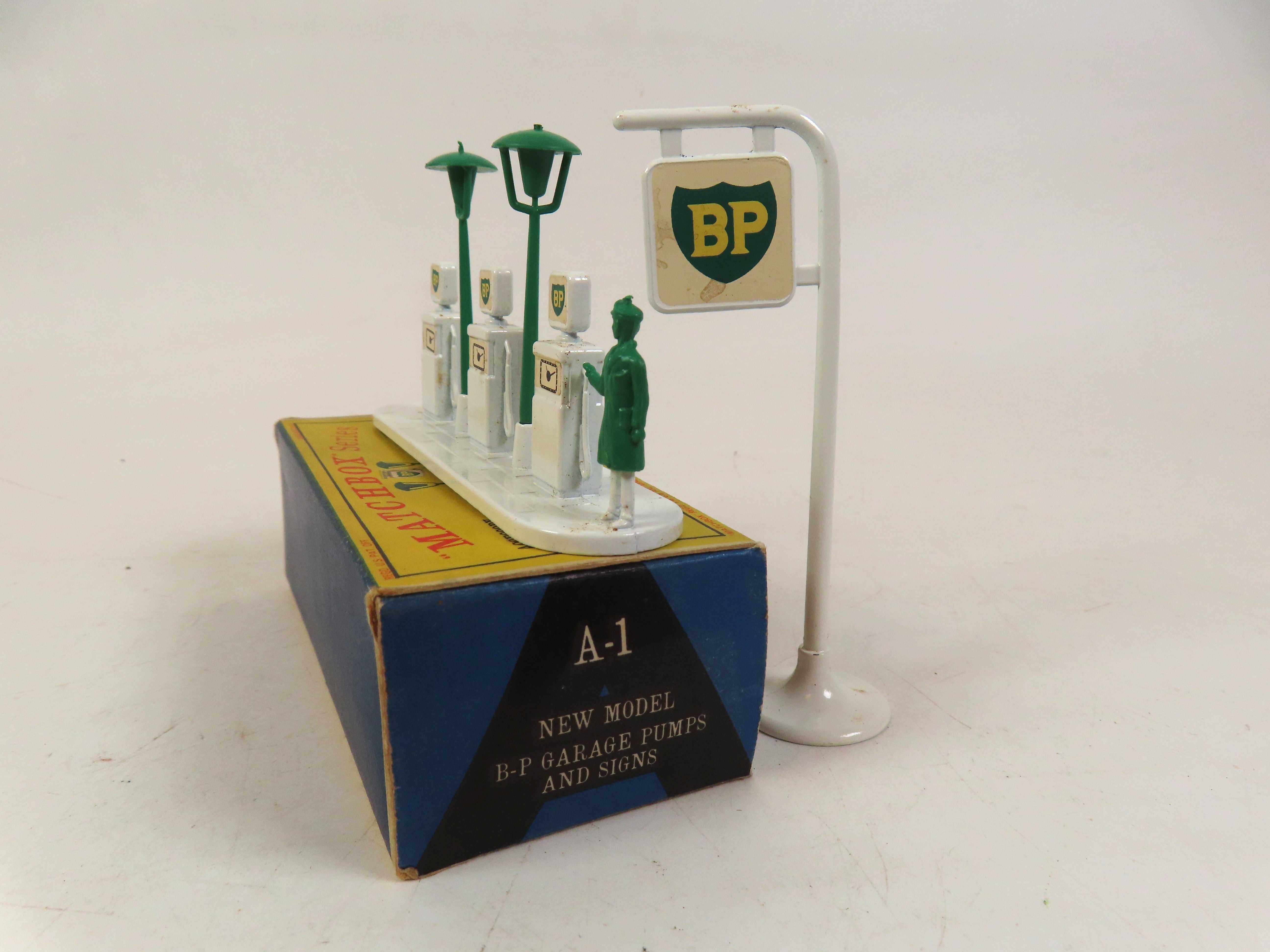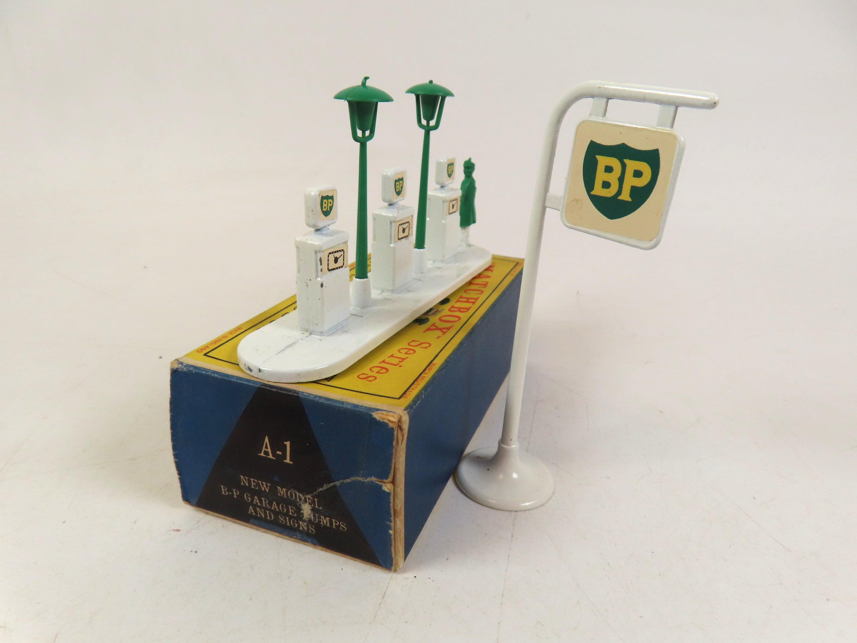 Matchbox MG-1 "Matchbox" BP Service Station & A-1 Accessory Pack with B-P Garage Pumps and Signs. A very rare and superb garage! Seldom seen very sale. A superb, period item, from the early 1960's.