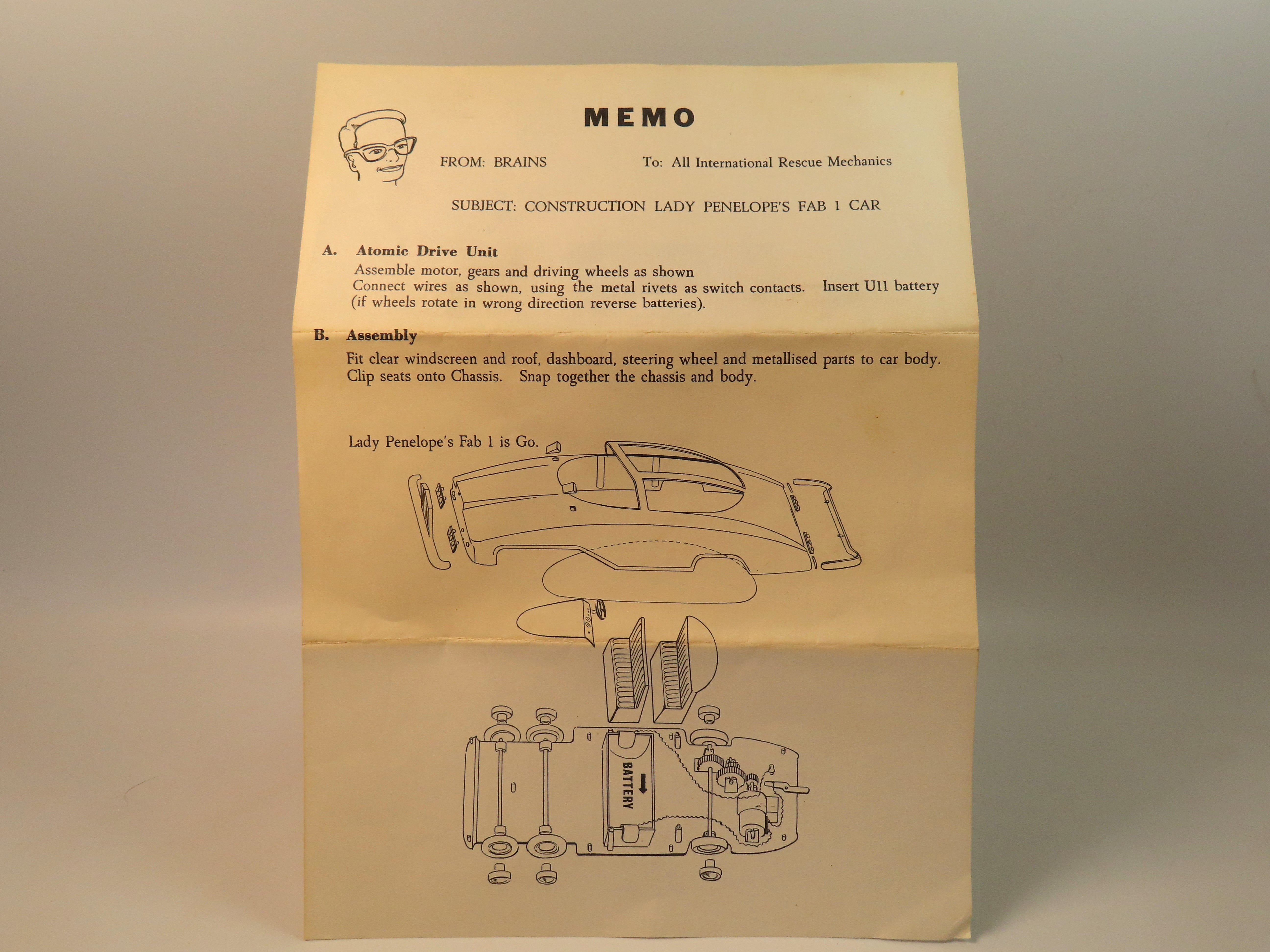 This fabulous made plastic Fab 1 is in great condition - very slight scuff to some tiny areas of the plastic, with the chrome being almost perfect the car comes complete with the construction information leaflet presented as 'Memo from Brains'!