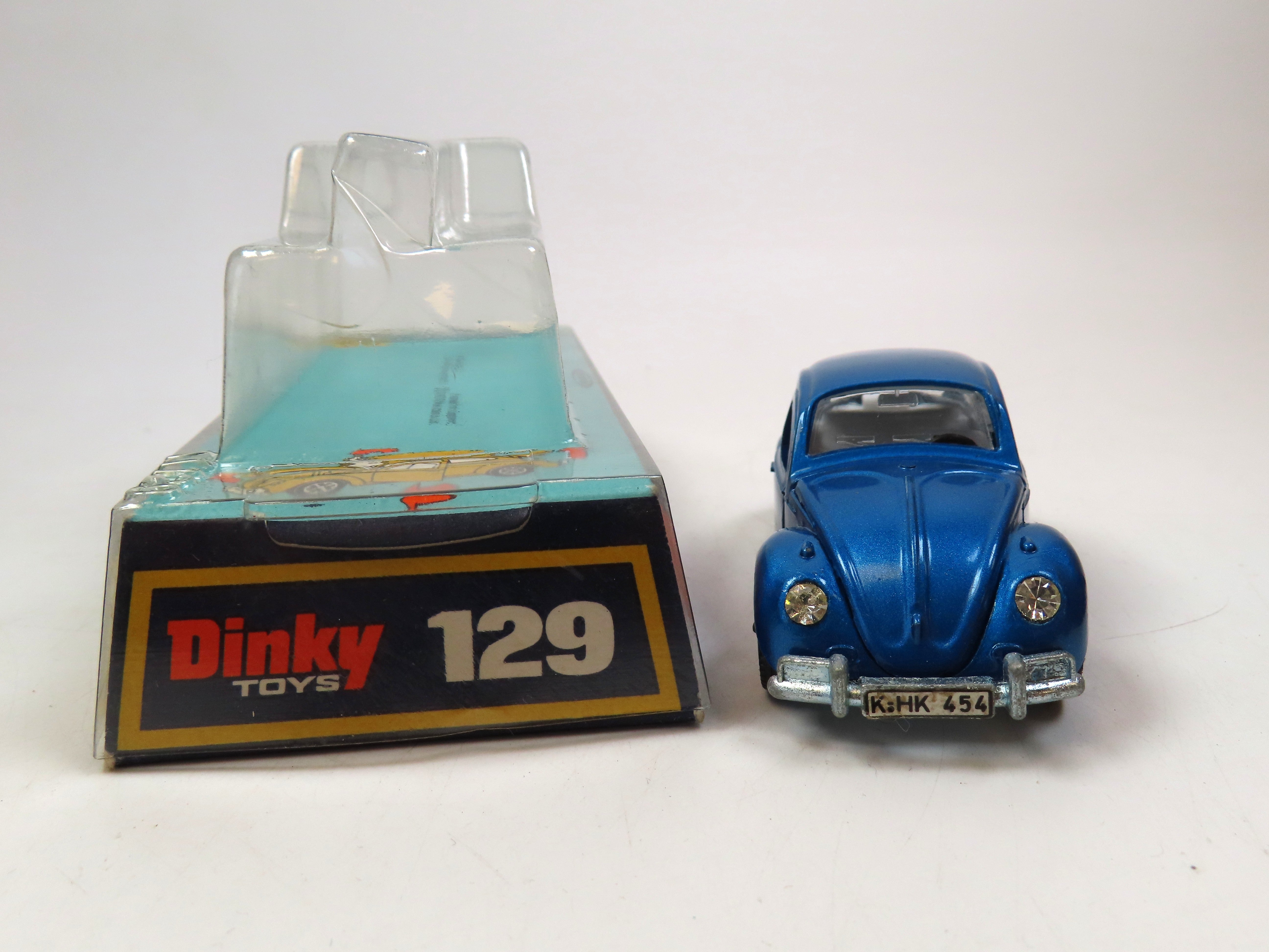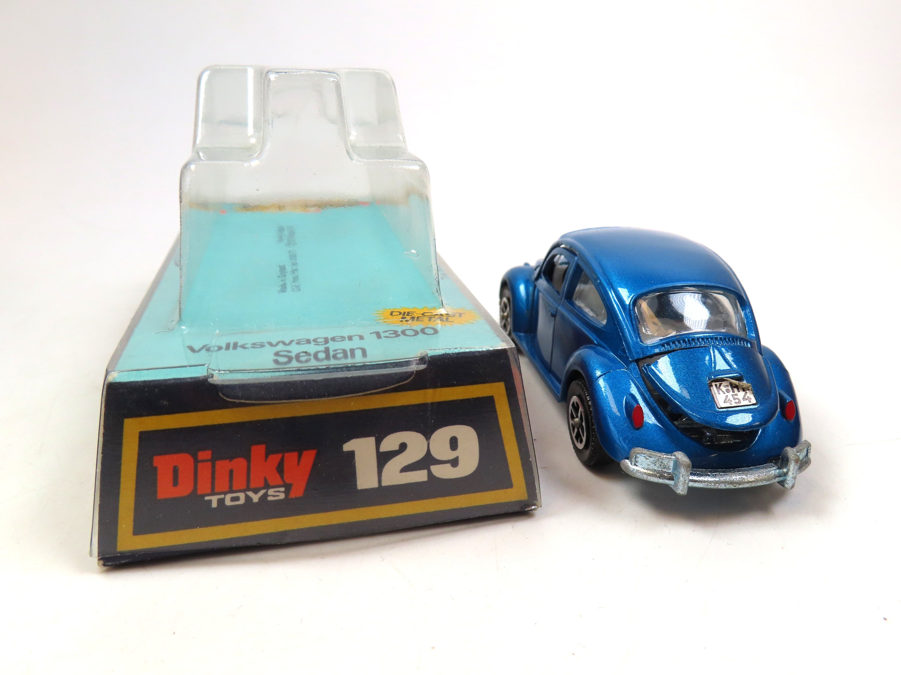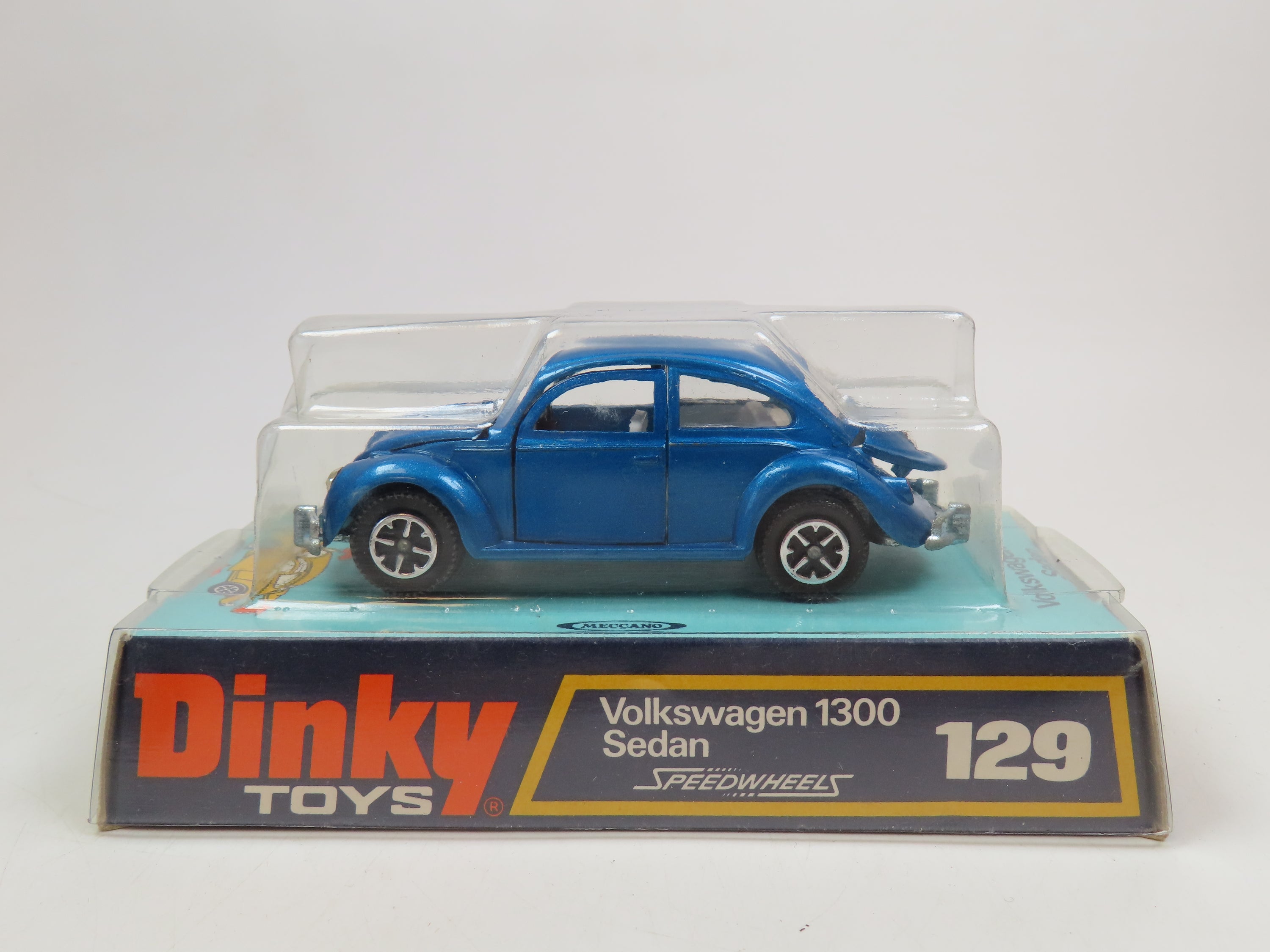 Dinky 129 Volkswagen 1300 Sedan in metallic blue with white interior.