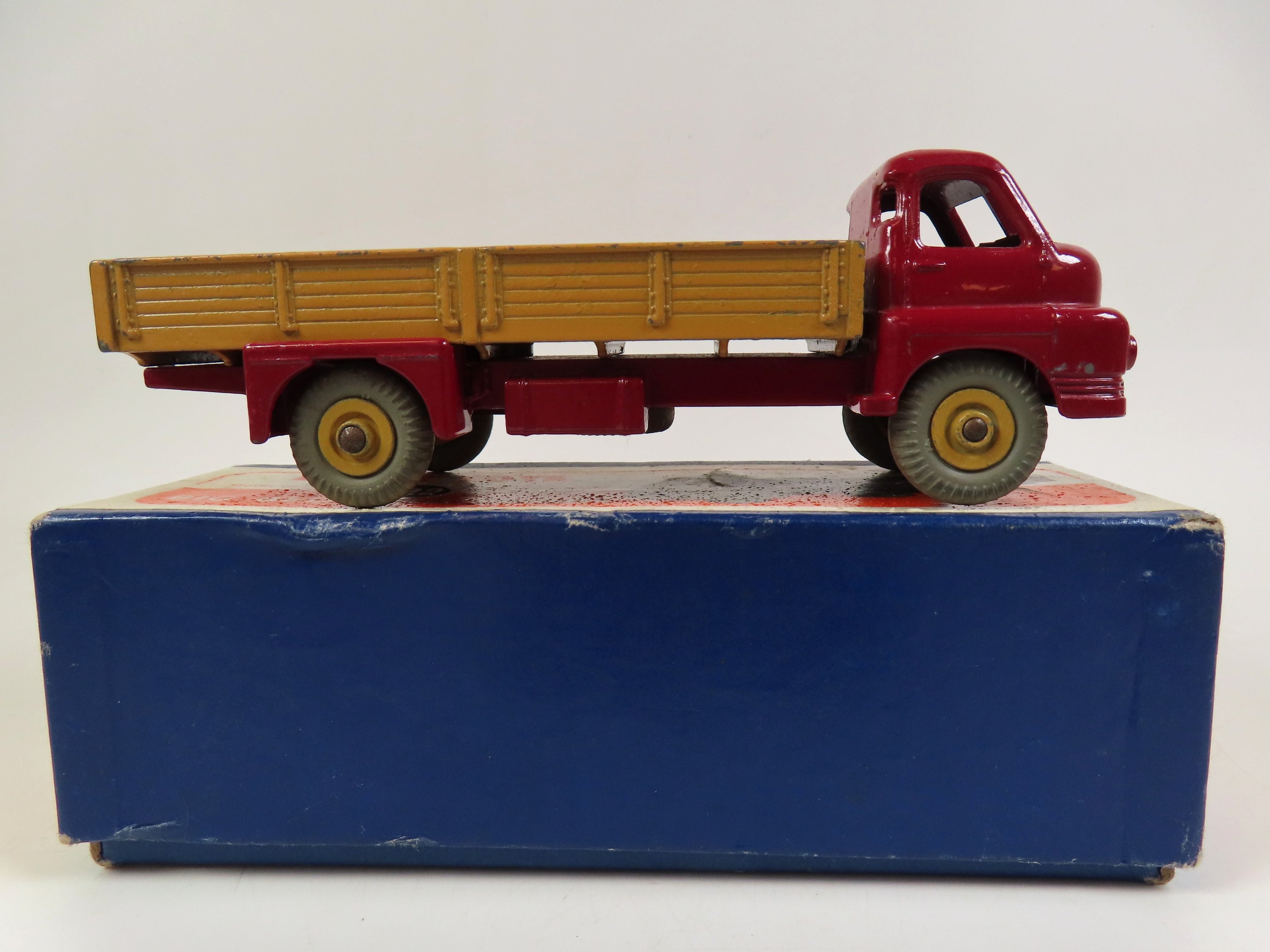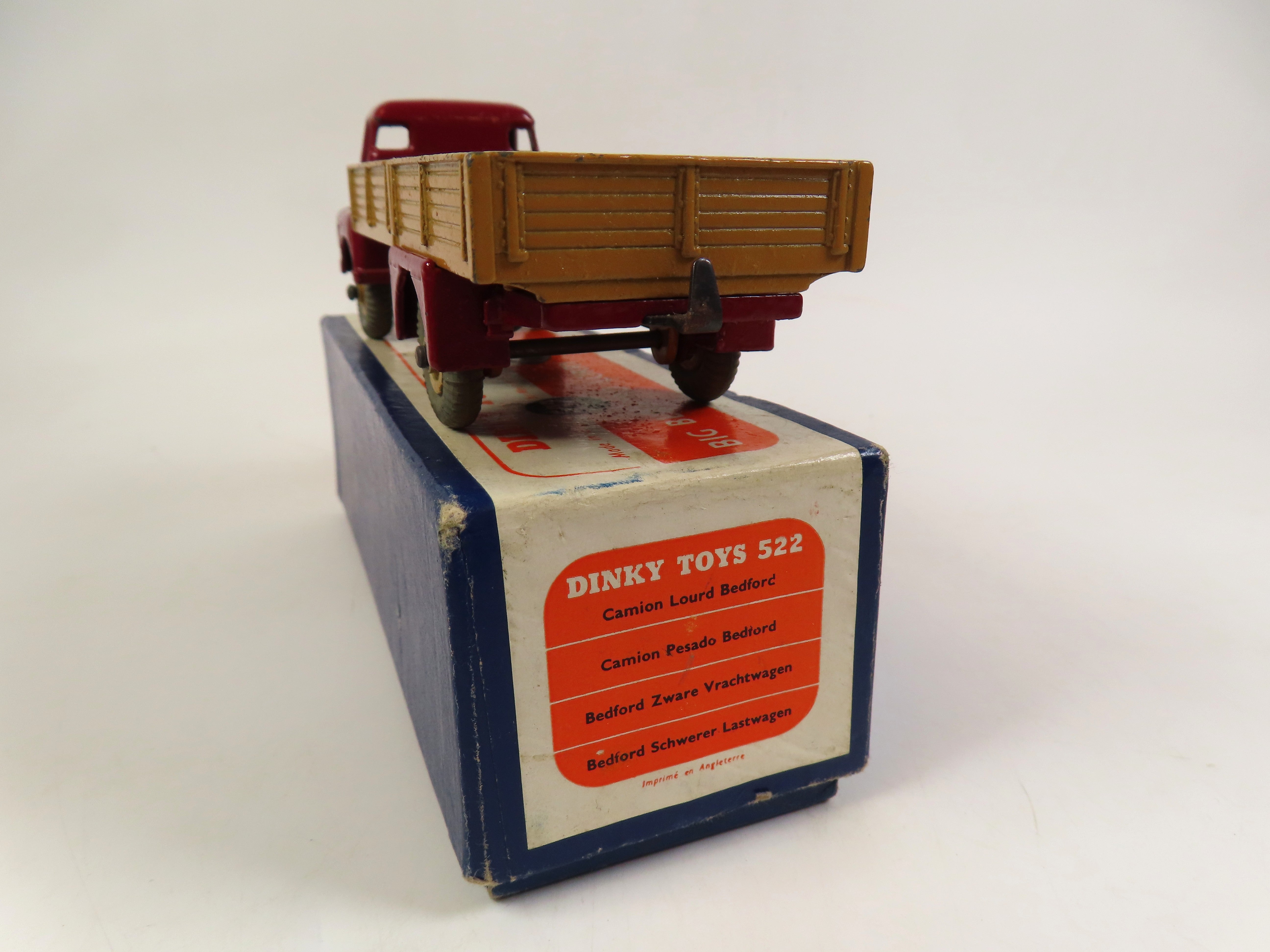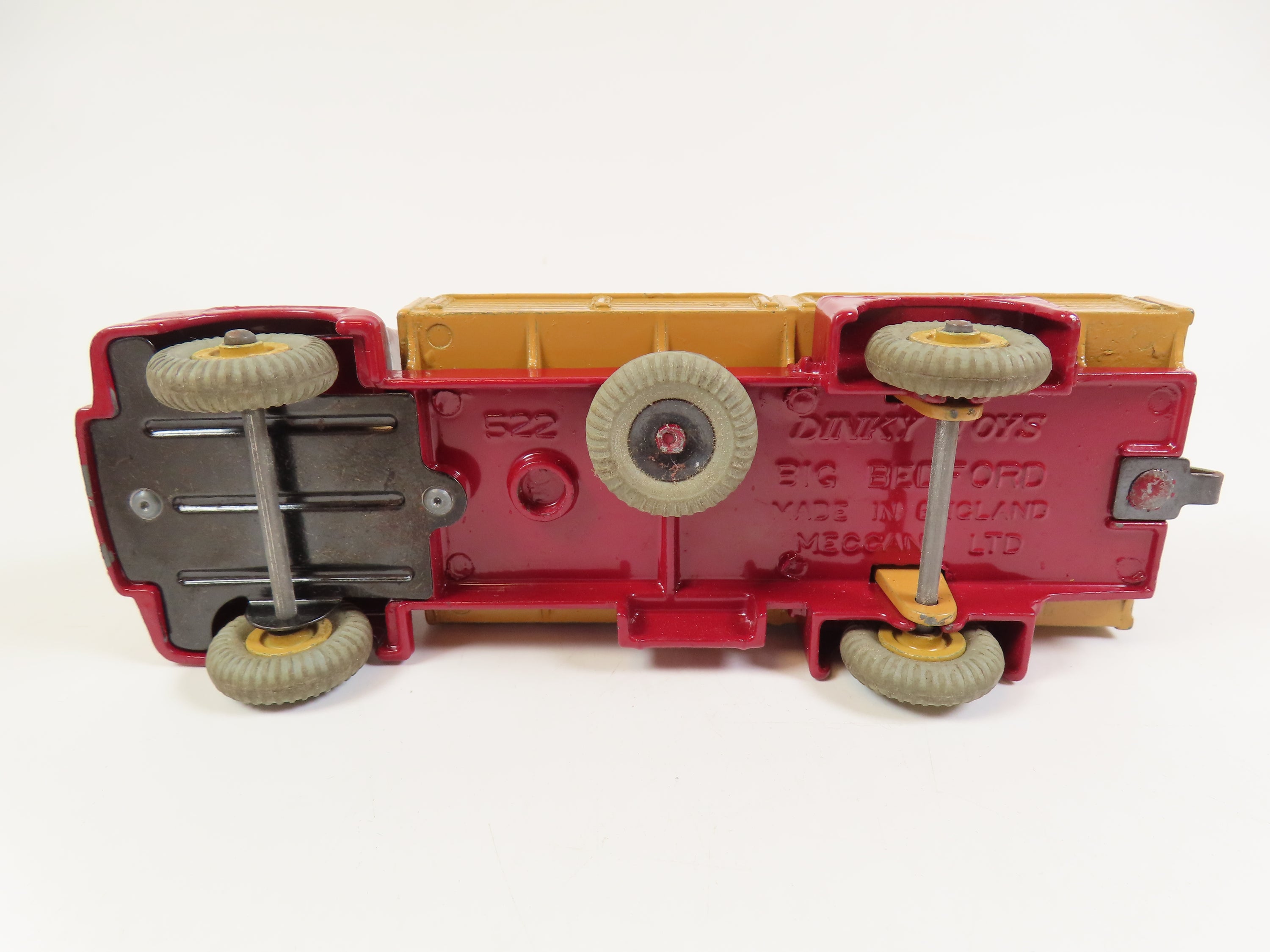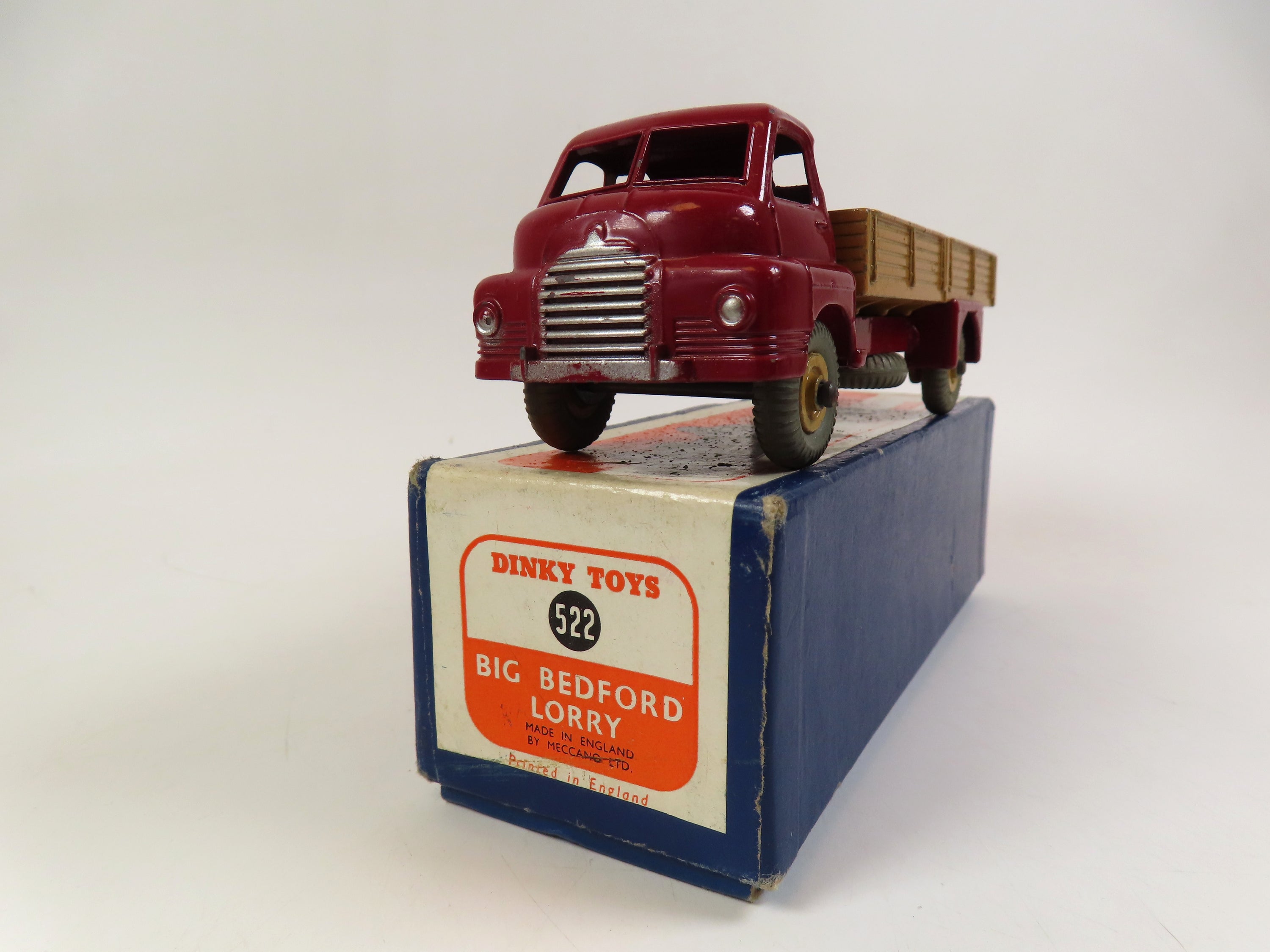 Dinky 522 Big Bedford Lorry with a lovely maroon cab and chassis with tan rear body and hubs and grey tyres.