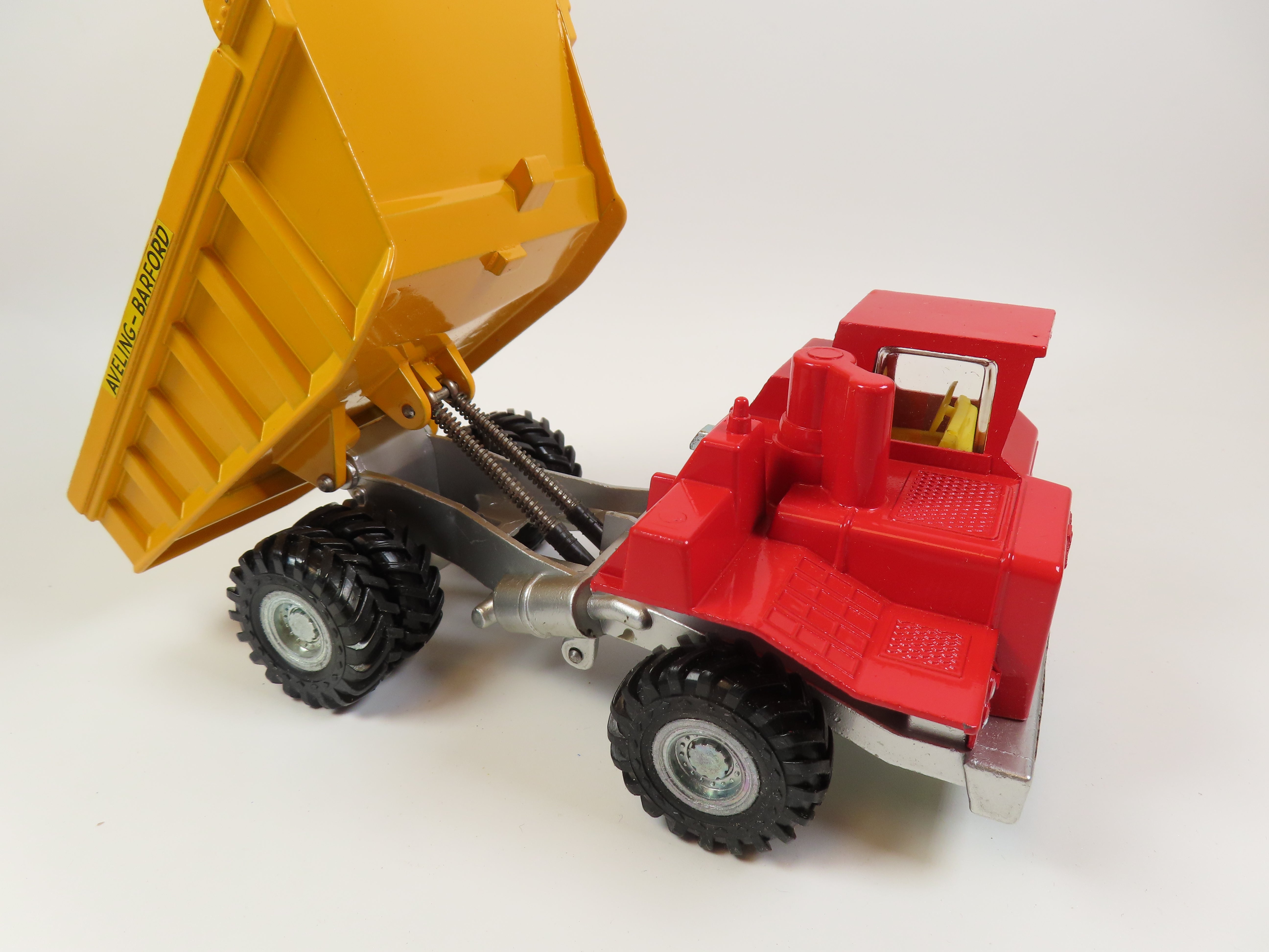 Dinky 924 Aveling-Barford 'Centaur' Dump Truck, in bright red, with yellow tipper and 'Aveling-Barford' decals to each side. Harder to find colour variation!