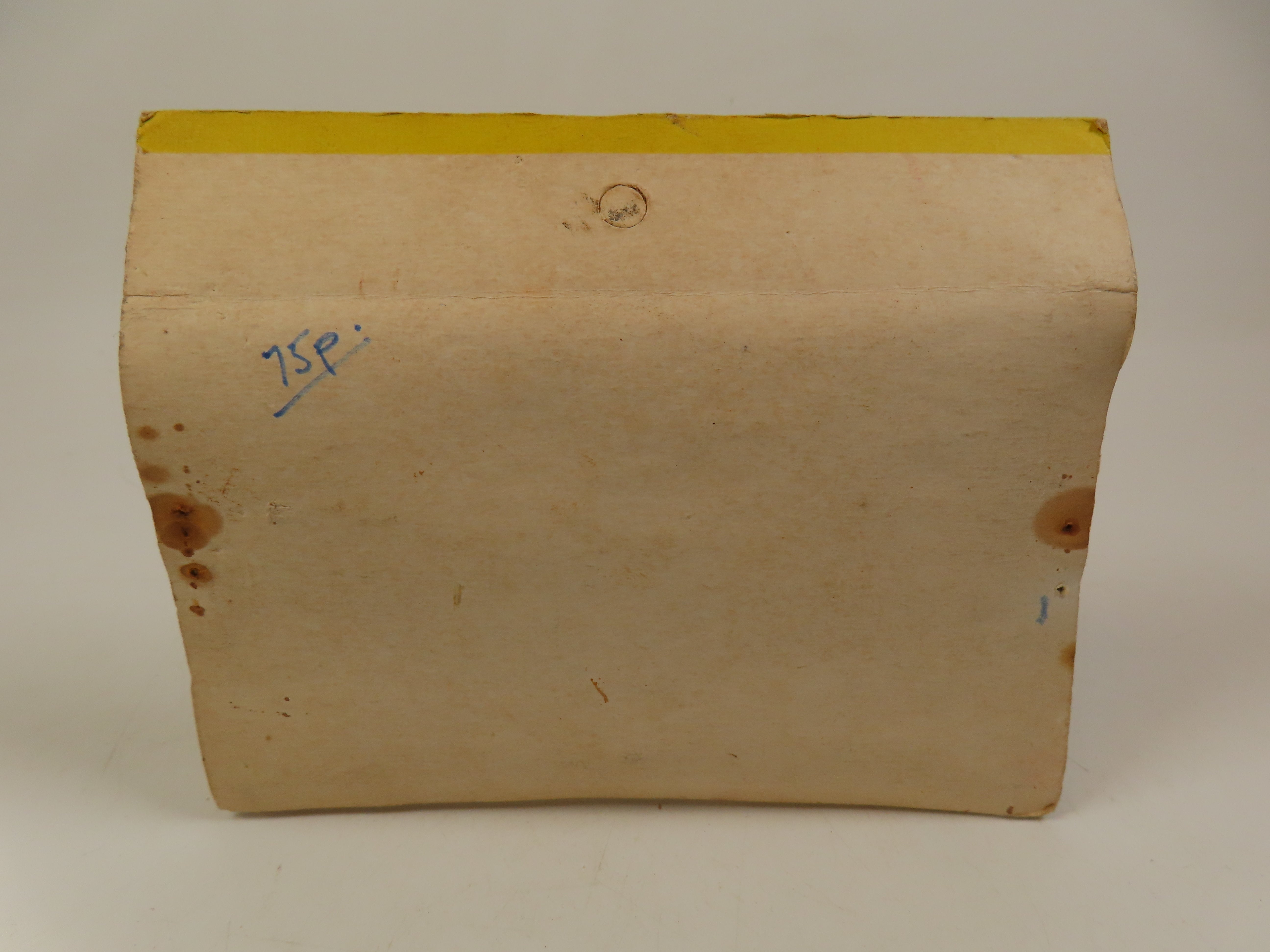 The card is original, complete and near mint, 8/10. There is a little light wear along the edges of the card, and stains from rusty staples to both the front and back of the card. The plastic bubble is creased at the corners, and has a few marks and general signs of wear. For the best idea see the pictures.