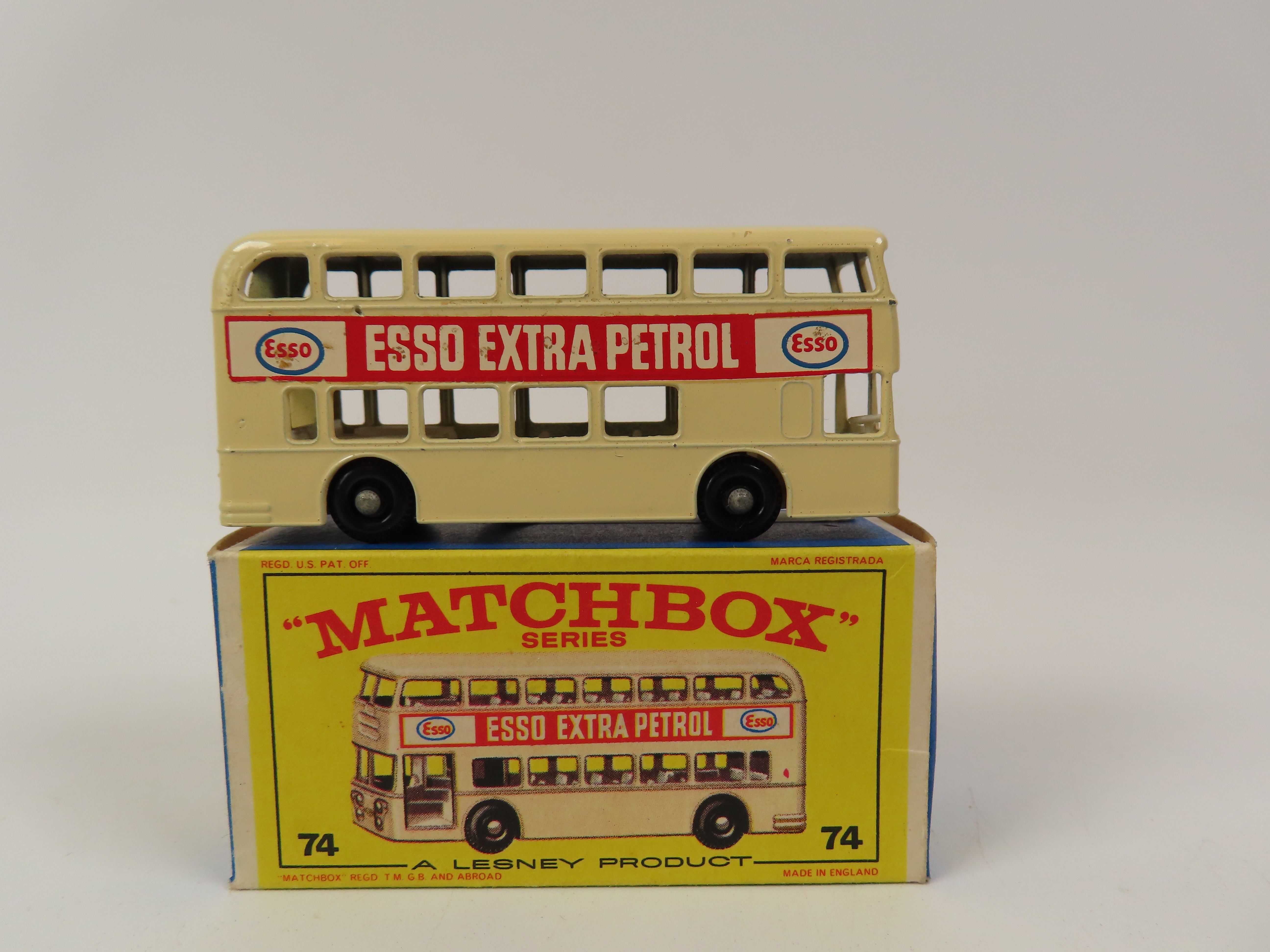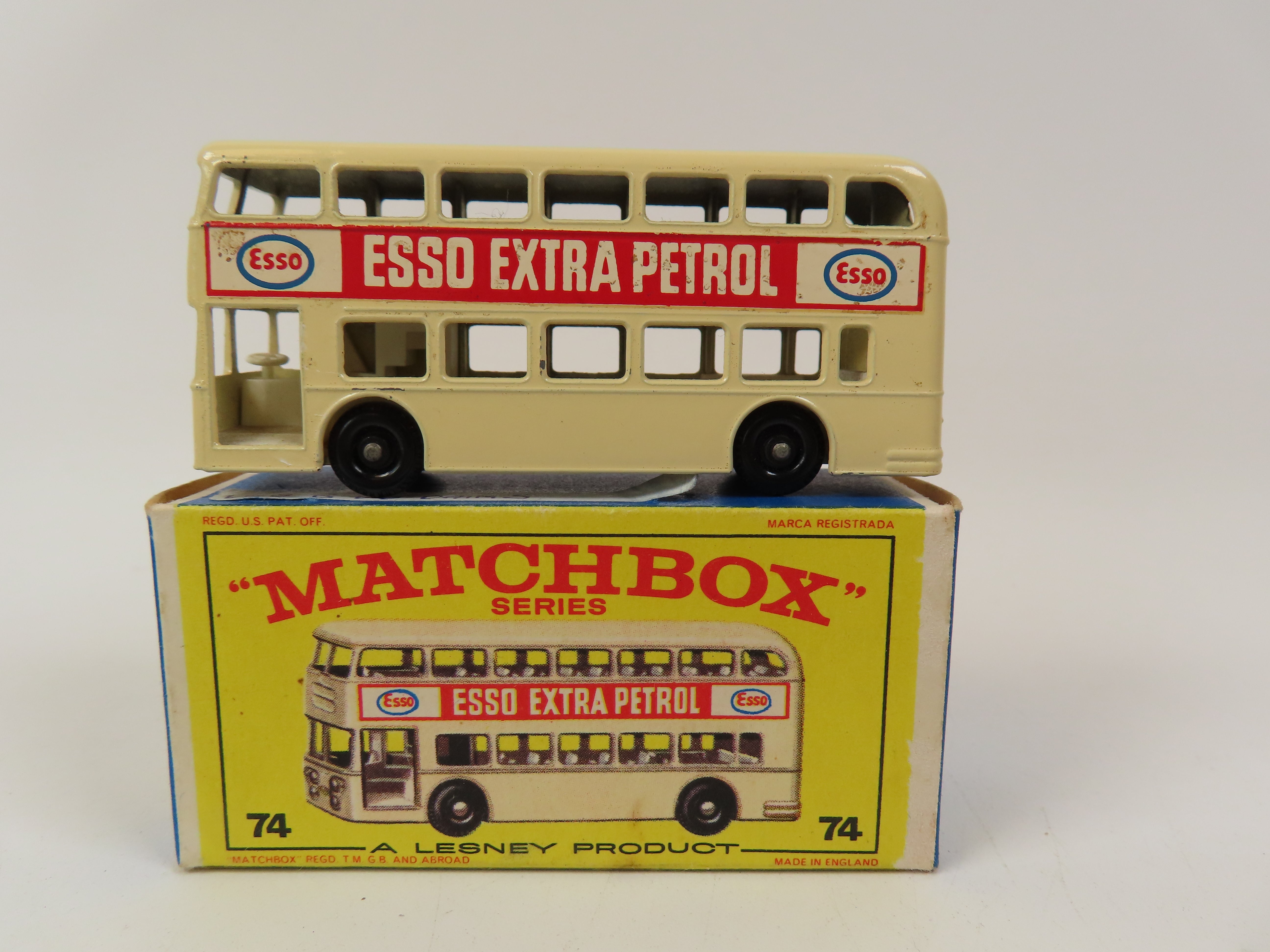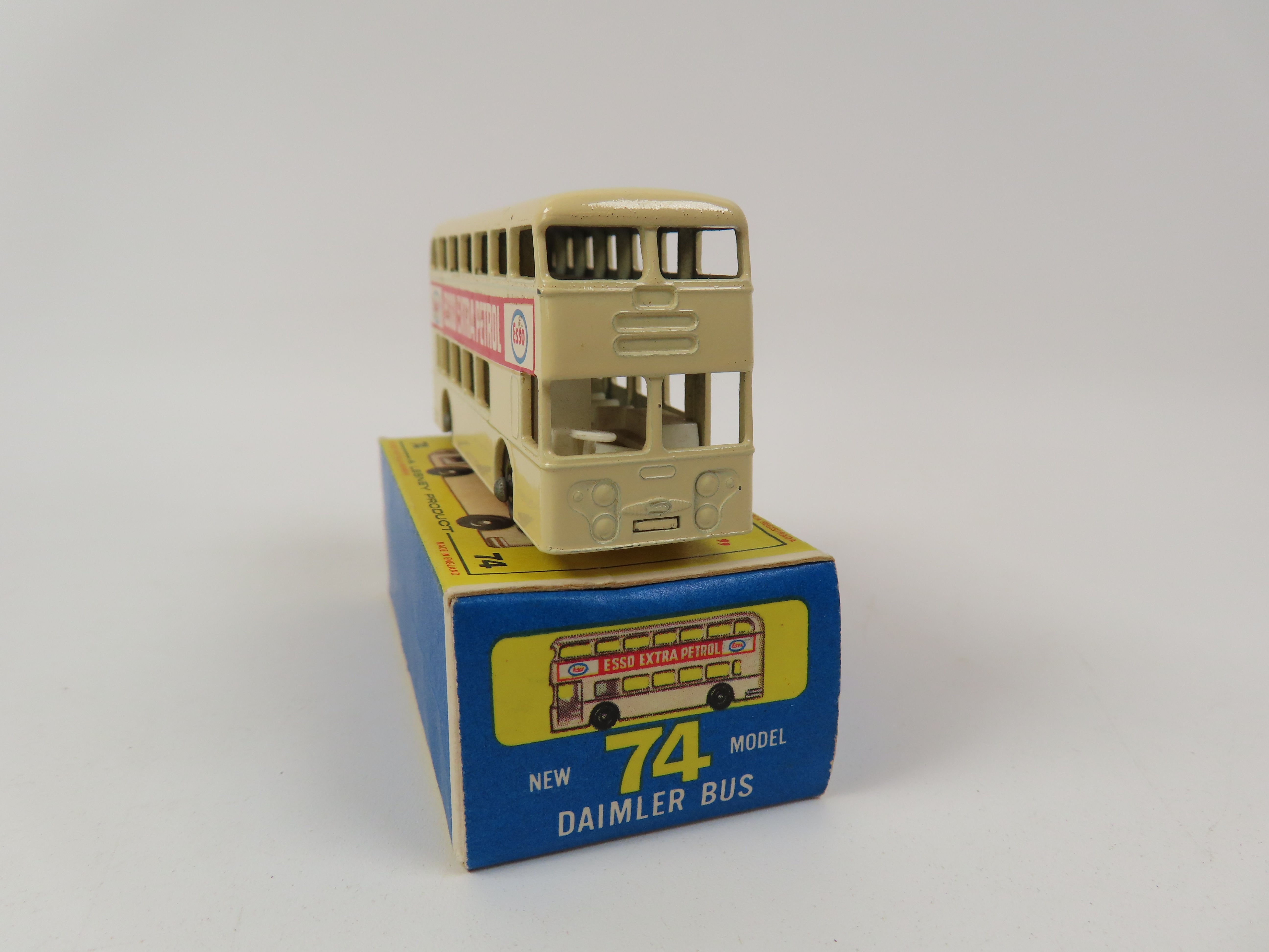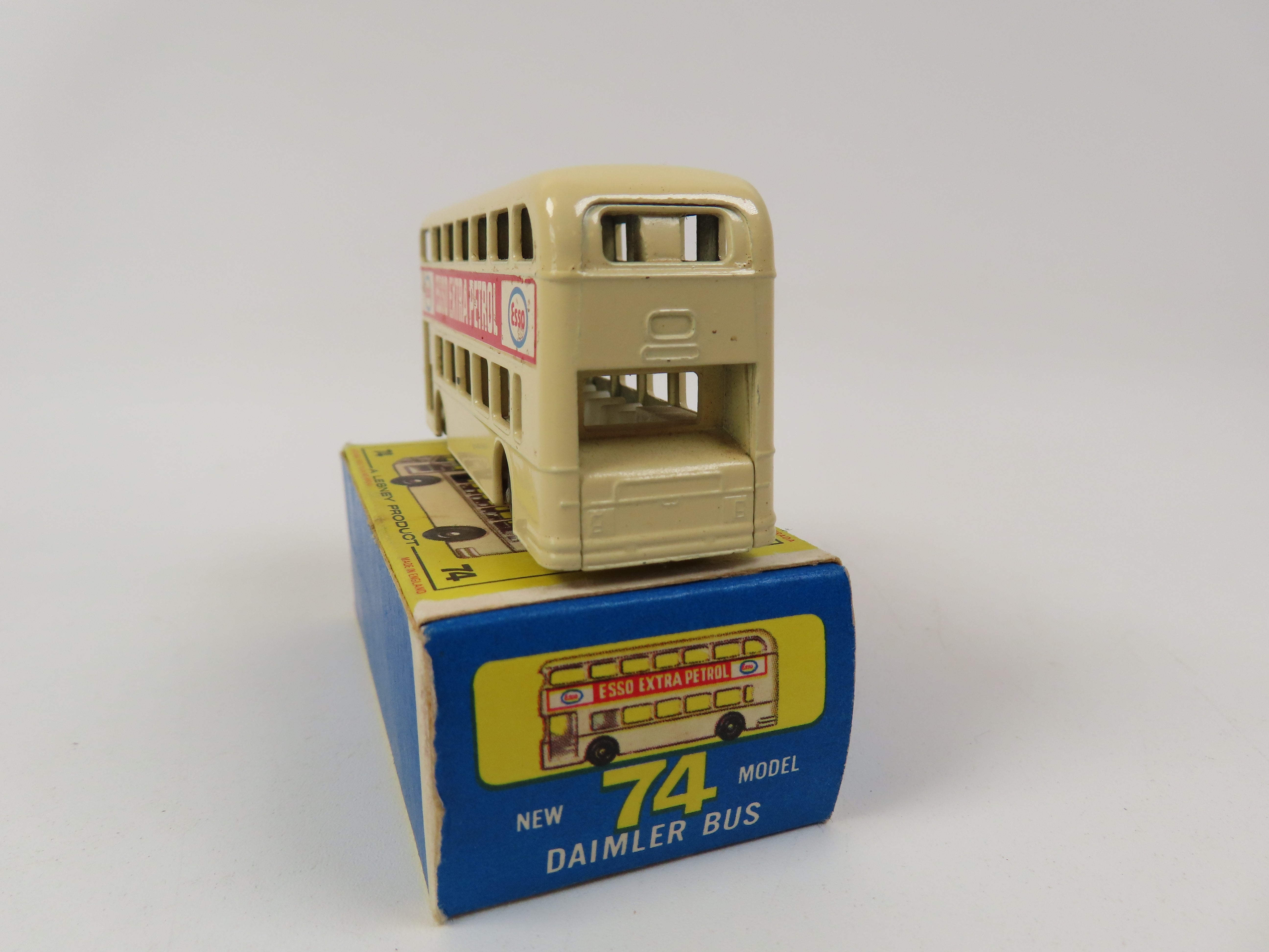 Matchbox 74 Daimler Bus in cream with 'ESSO Extra Petrol' labels.