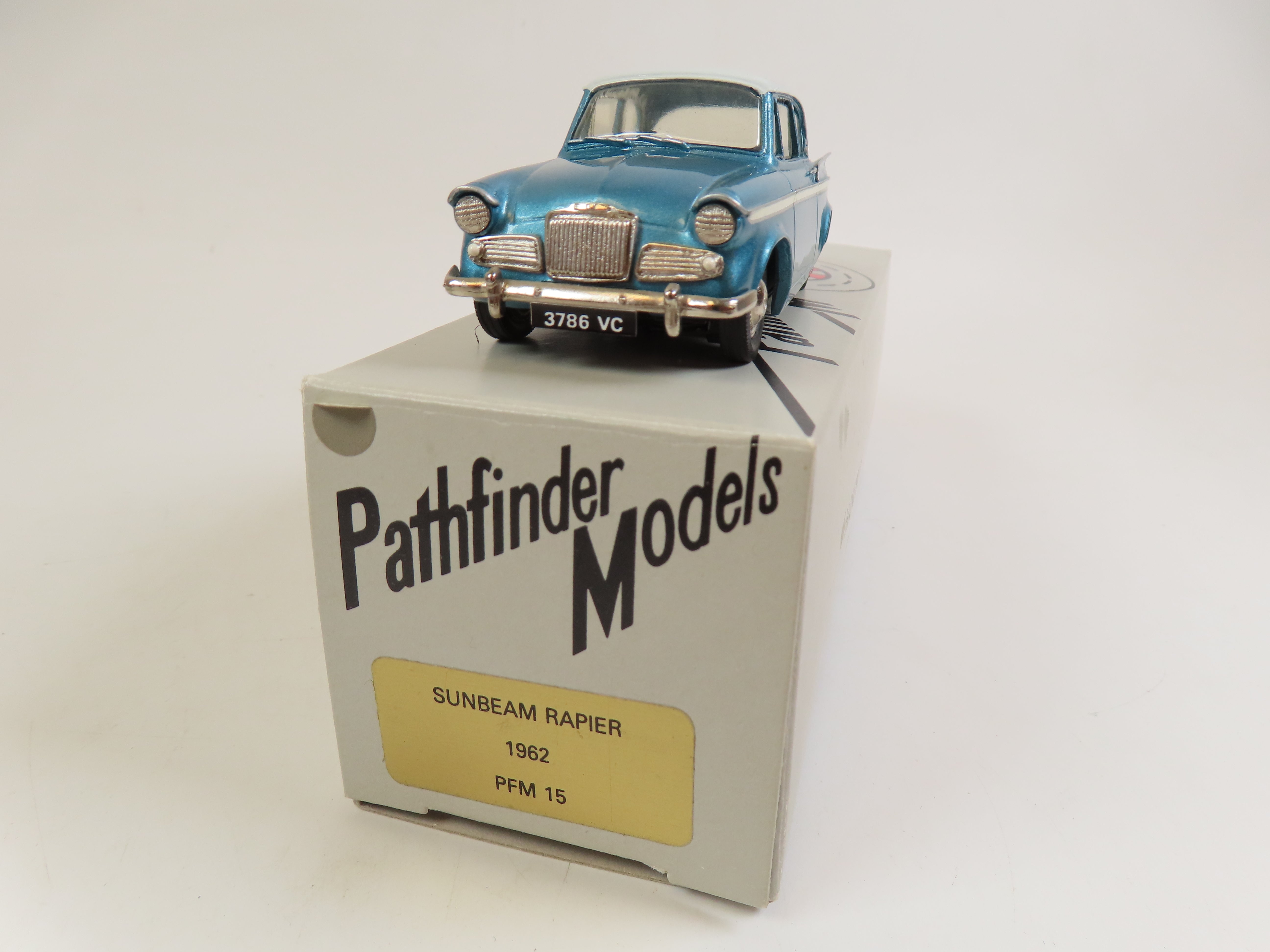 Pathfinder Models PFM 15 Sunbeam Rapier 1962, in a lovely metallic blue with white roof. A rare model, at a very fair price!