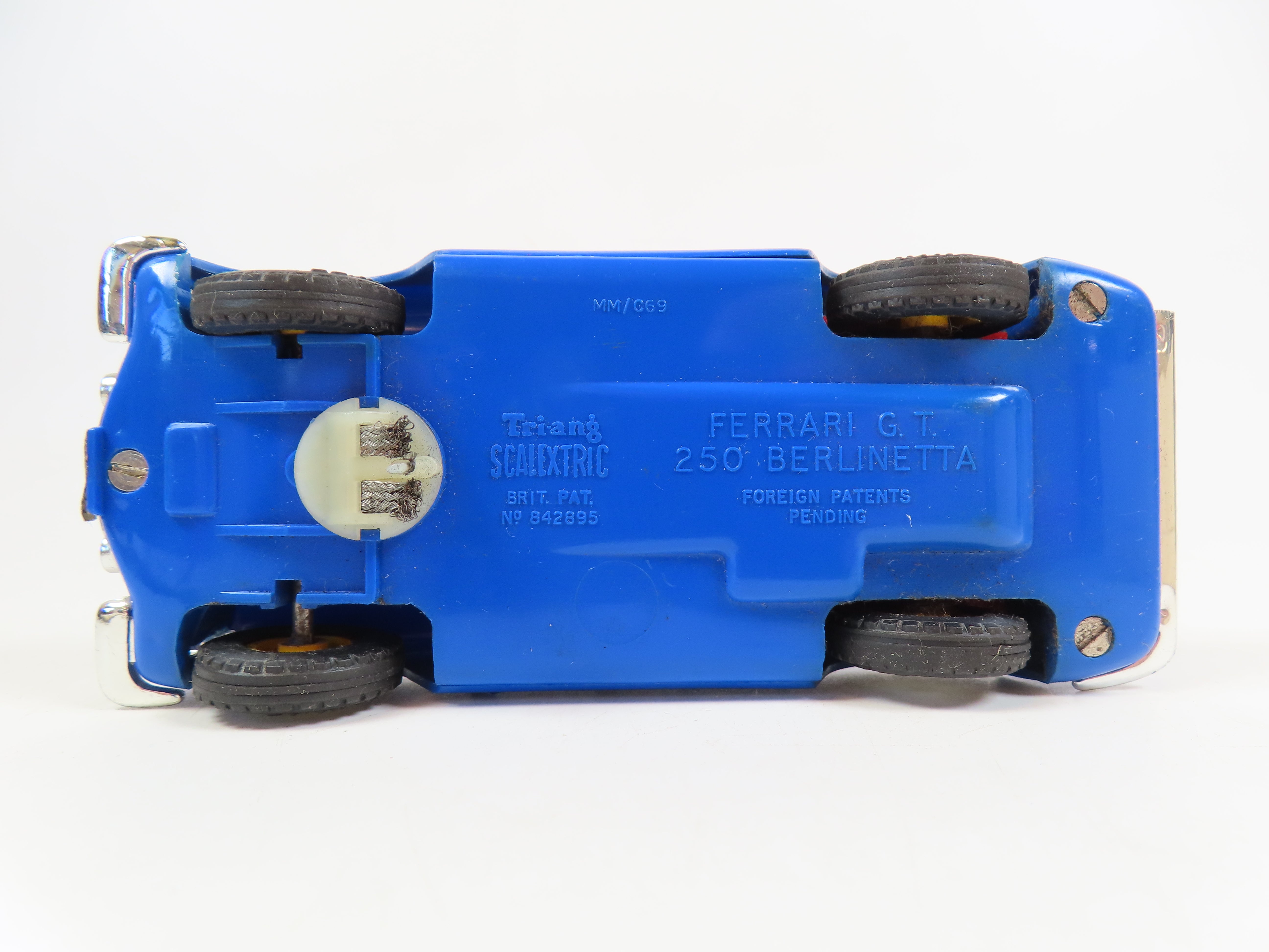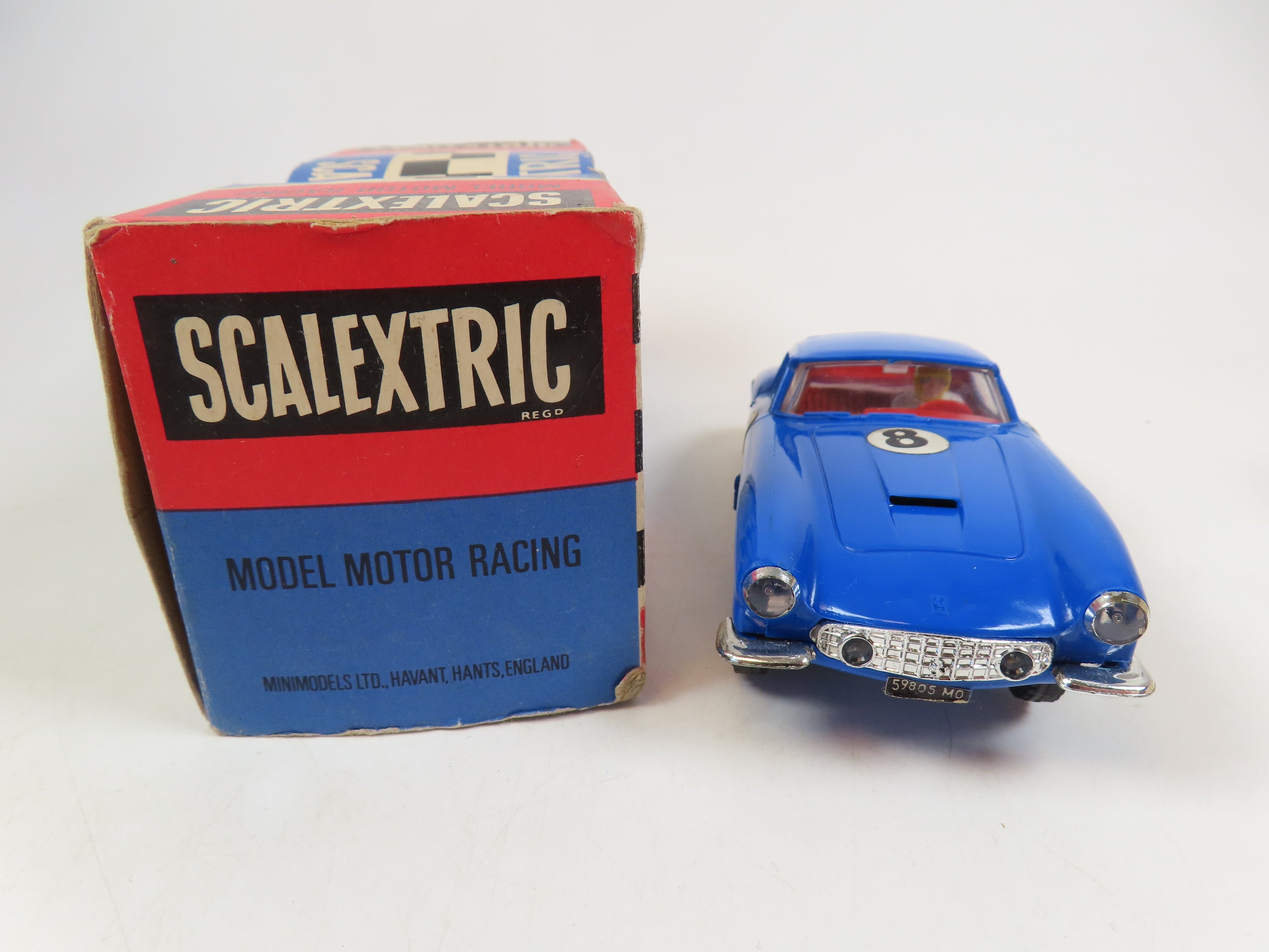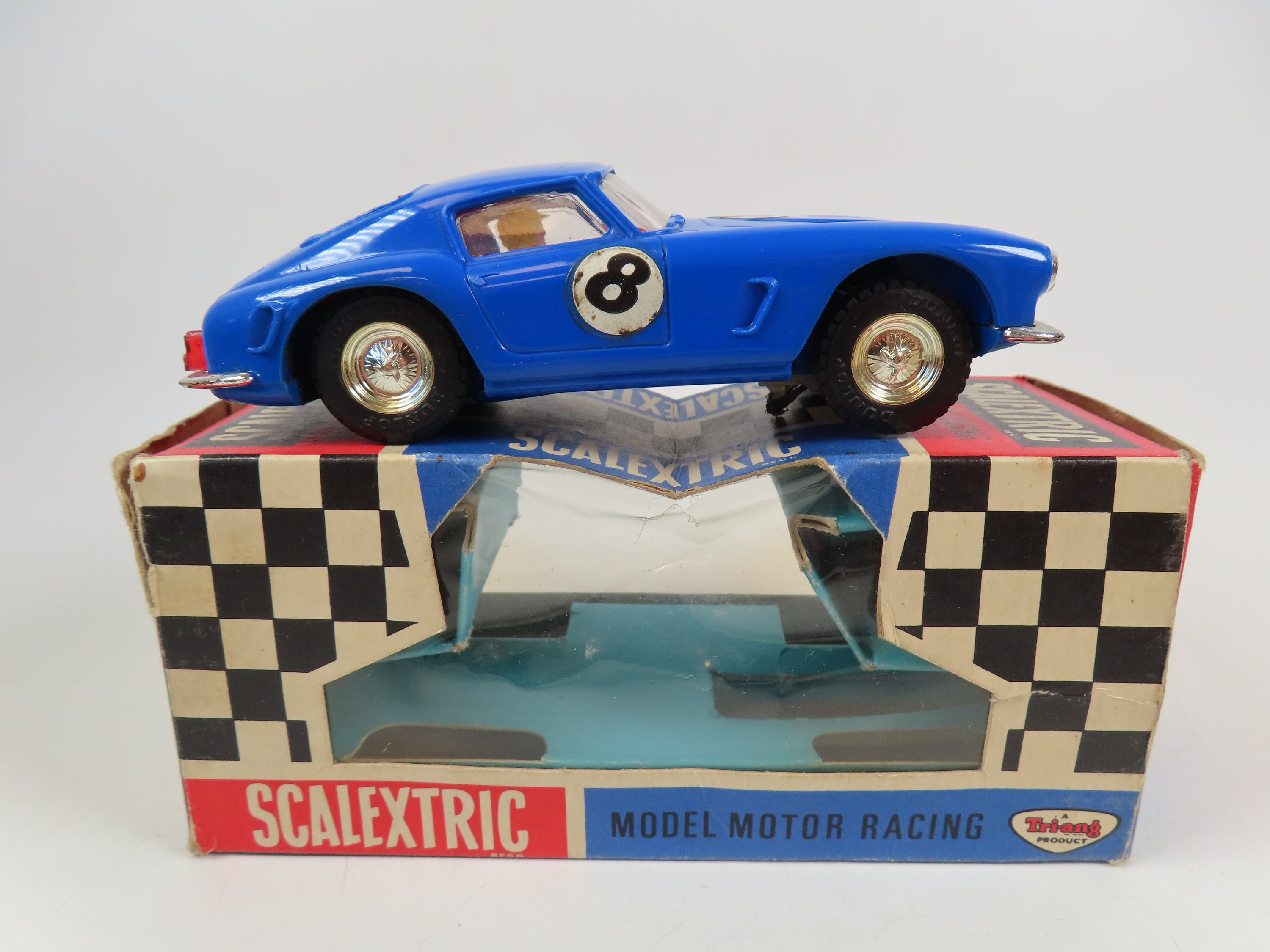 Scalextric Motor Racing C69 Ferrari (GT) Without Lights in bright blue with red interior and '8' decals to the front and sides.