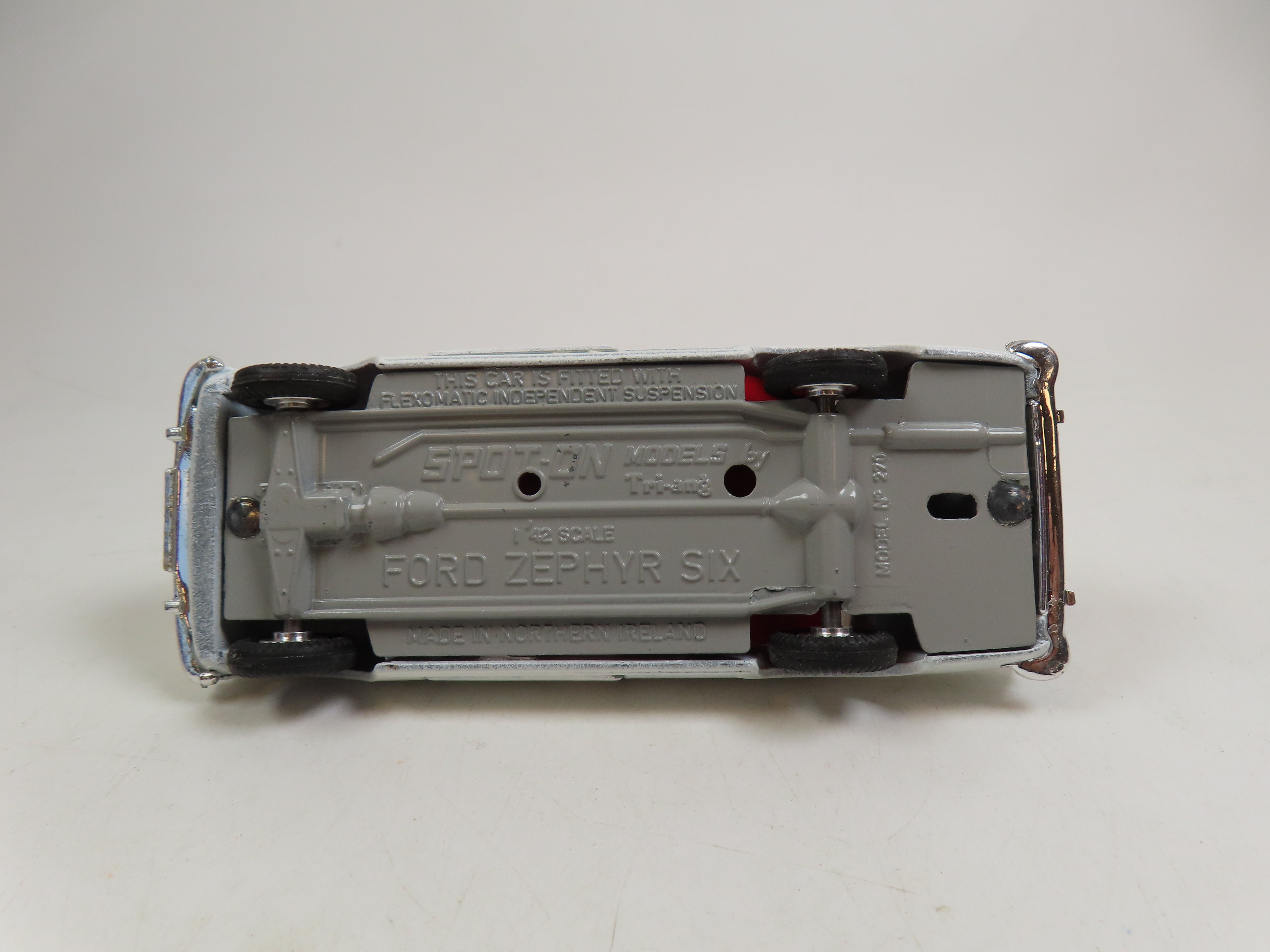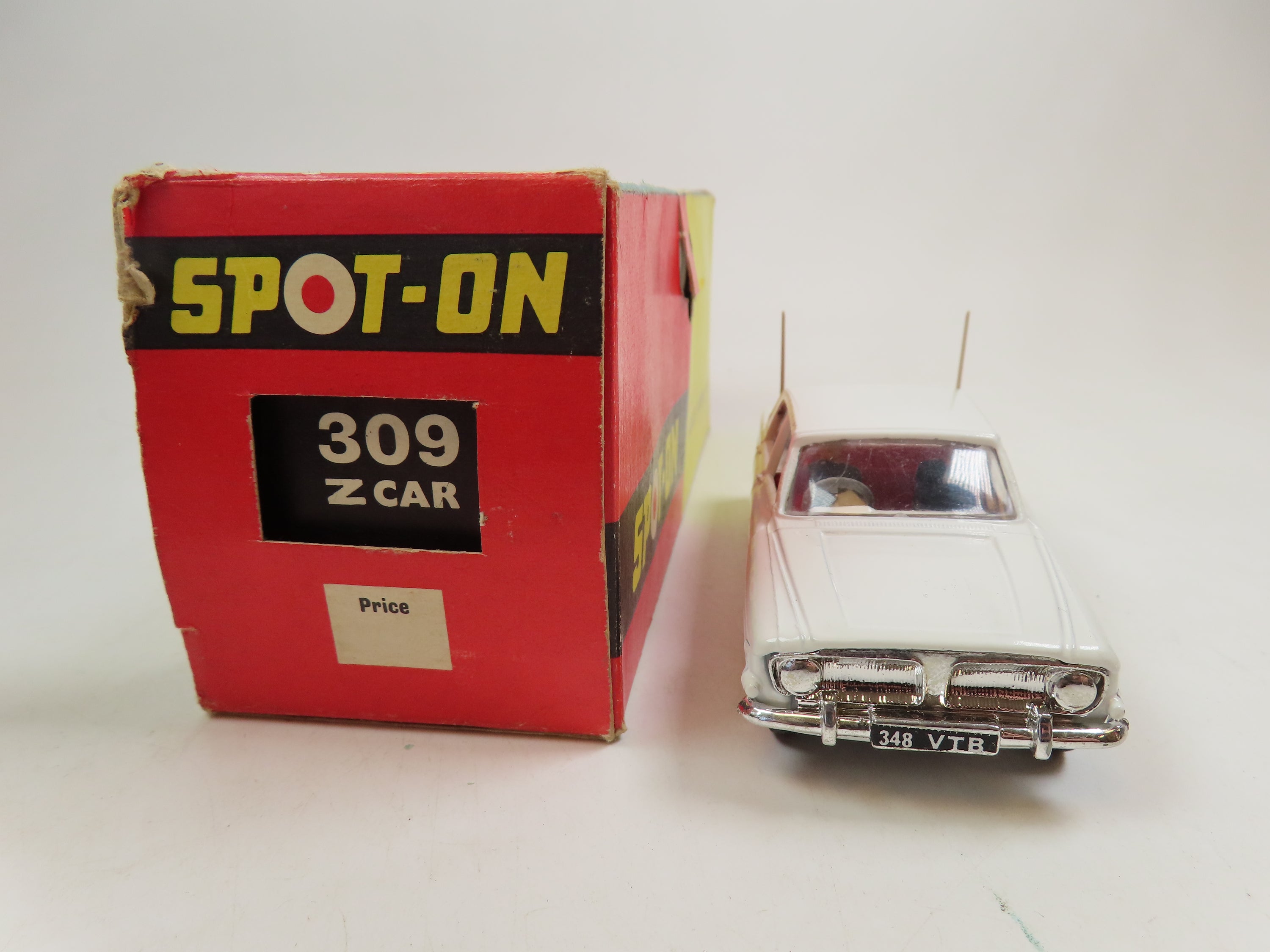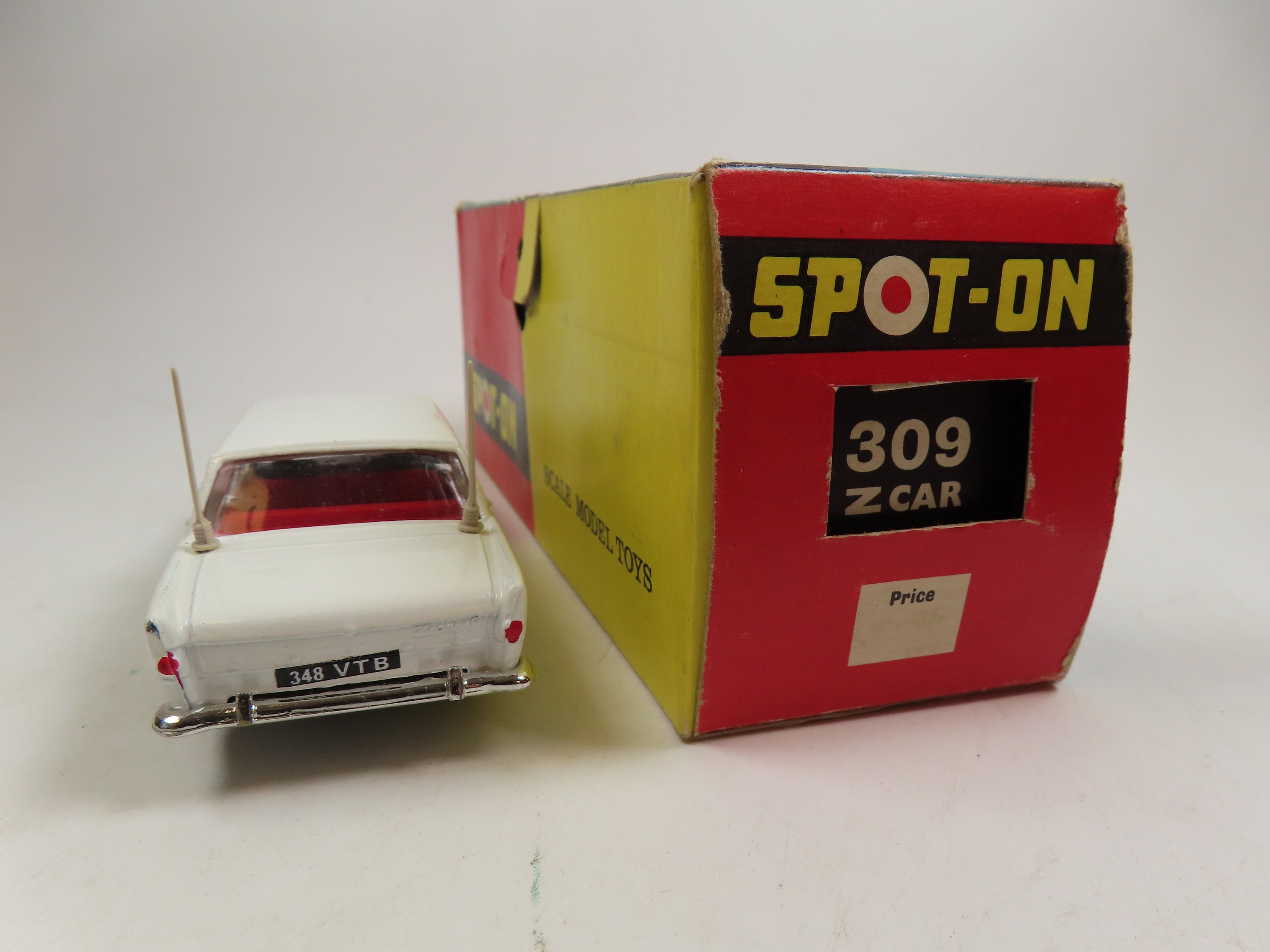 Spot-On No.309 'BBC TV Z Car' Ford Zephyr Six in white with red interior and 2 figures to the front.